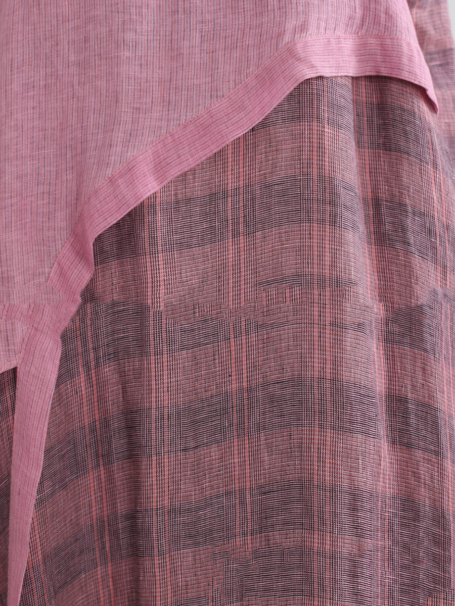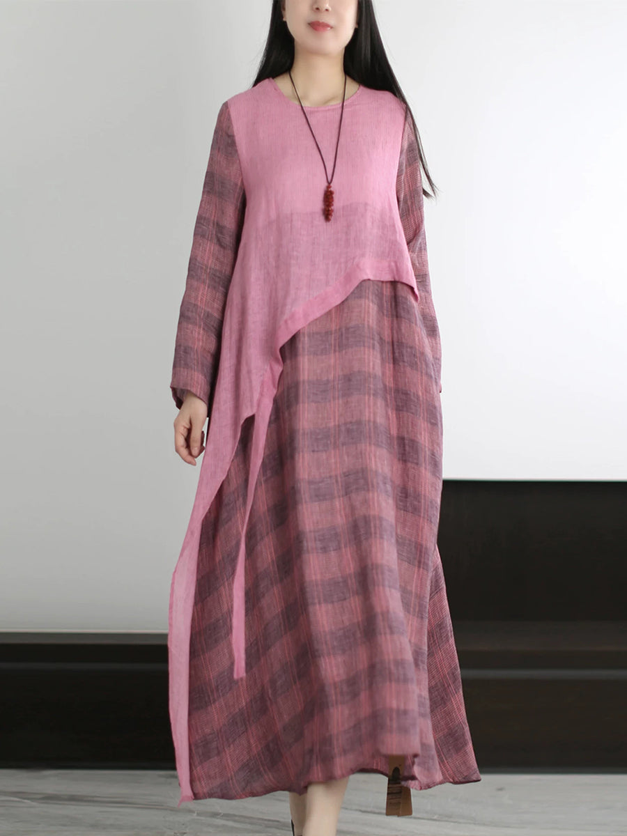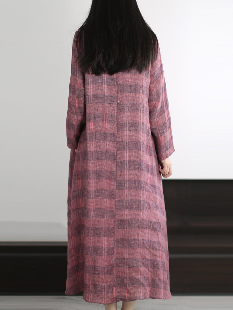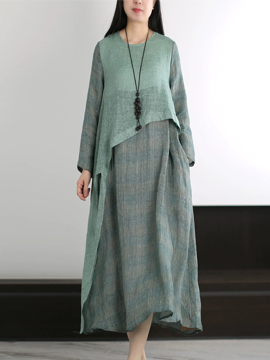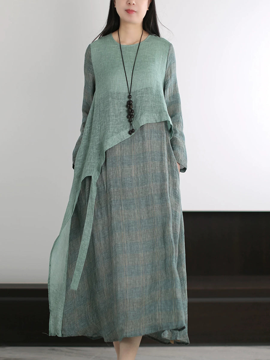 Women Summer Artsy Stripe Linen O-Neck Dress