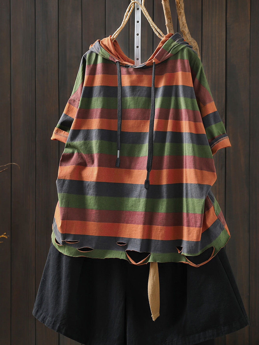 Women Summer Casual Stripe Hoodie