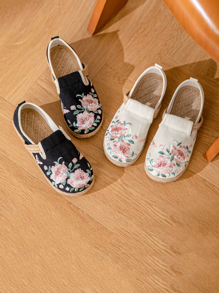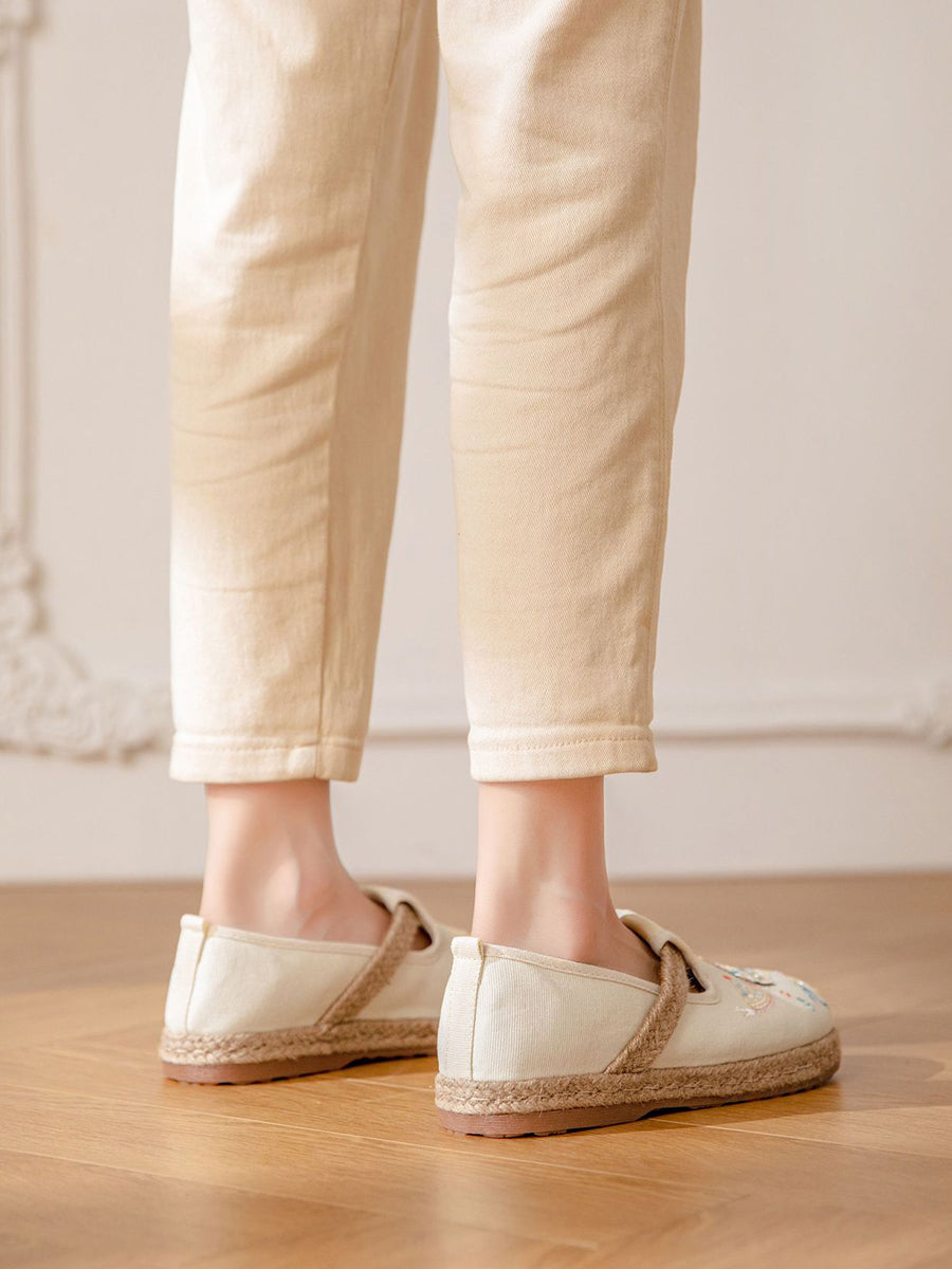 Women Ethnic Summer Flower Embroidery Canvas Shoes