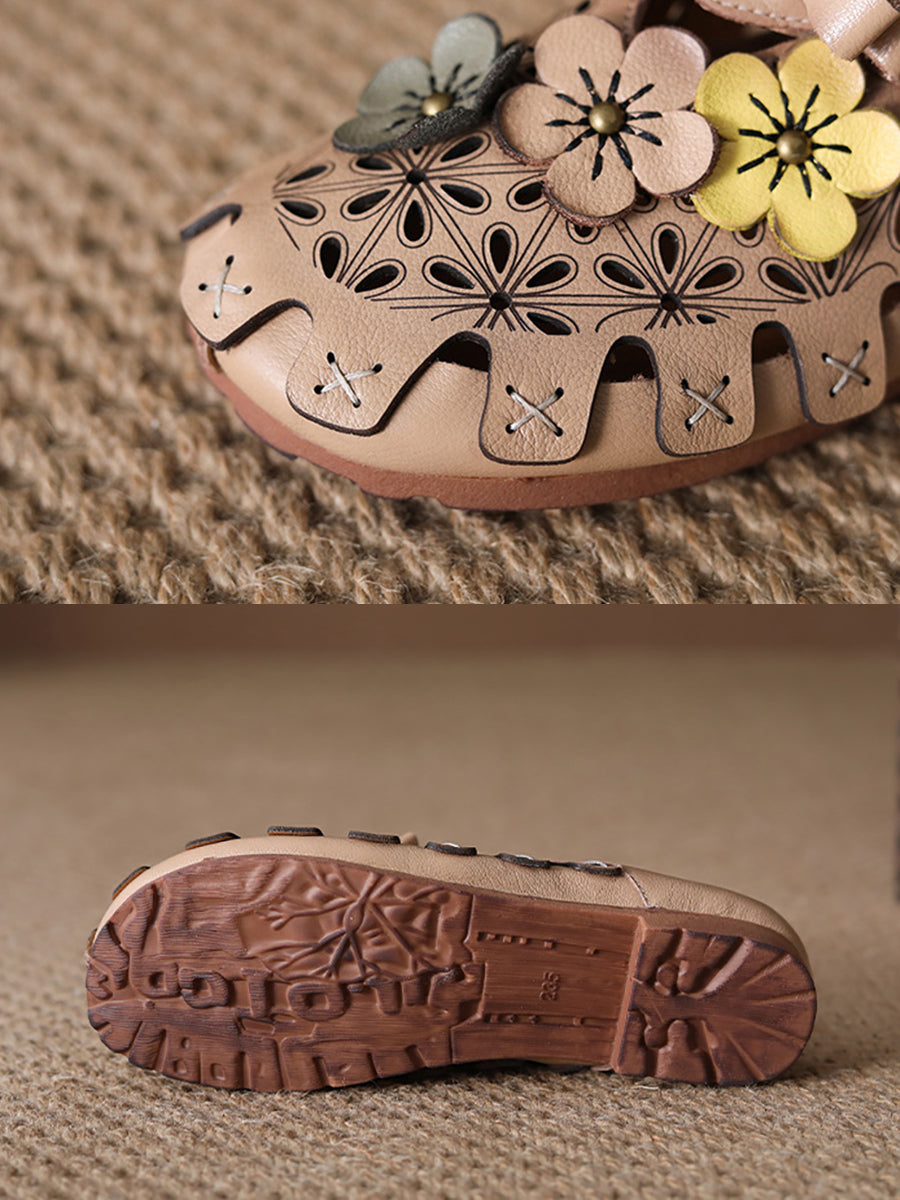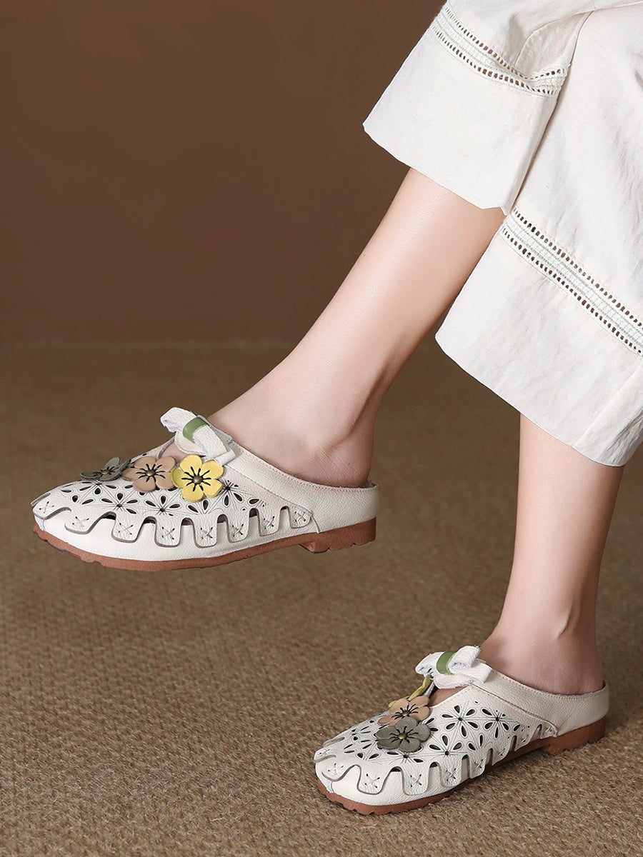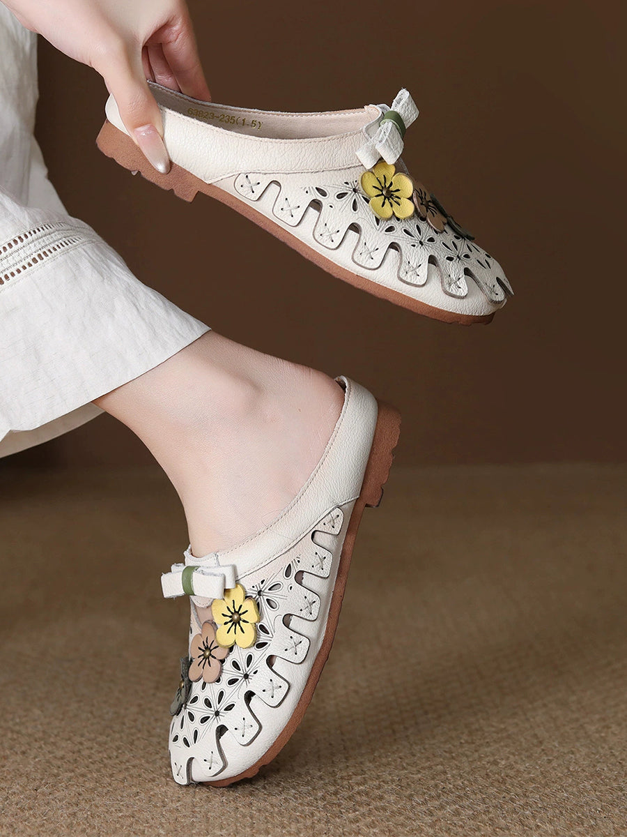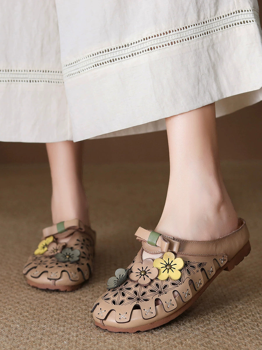 Women Summer Genuine Leather Spliced Slippers