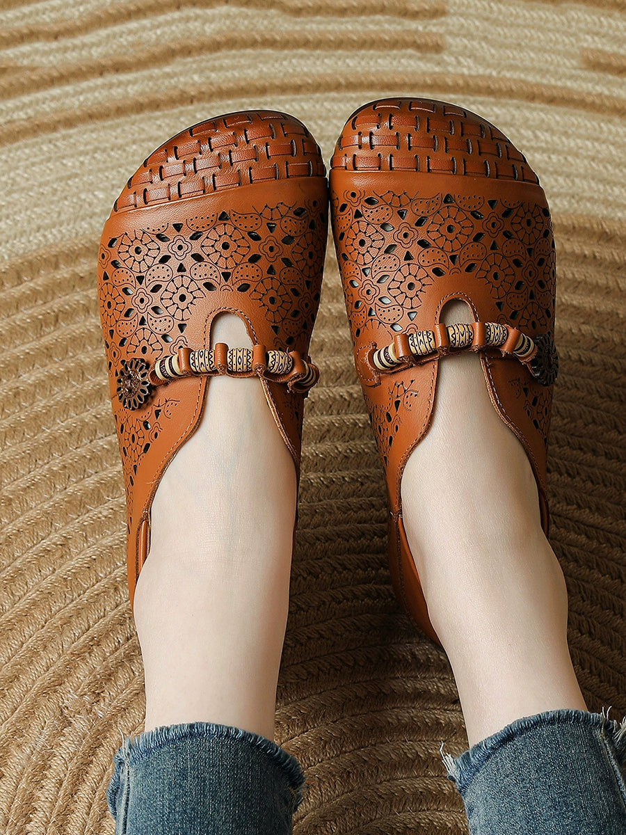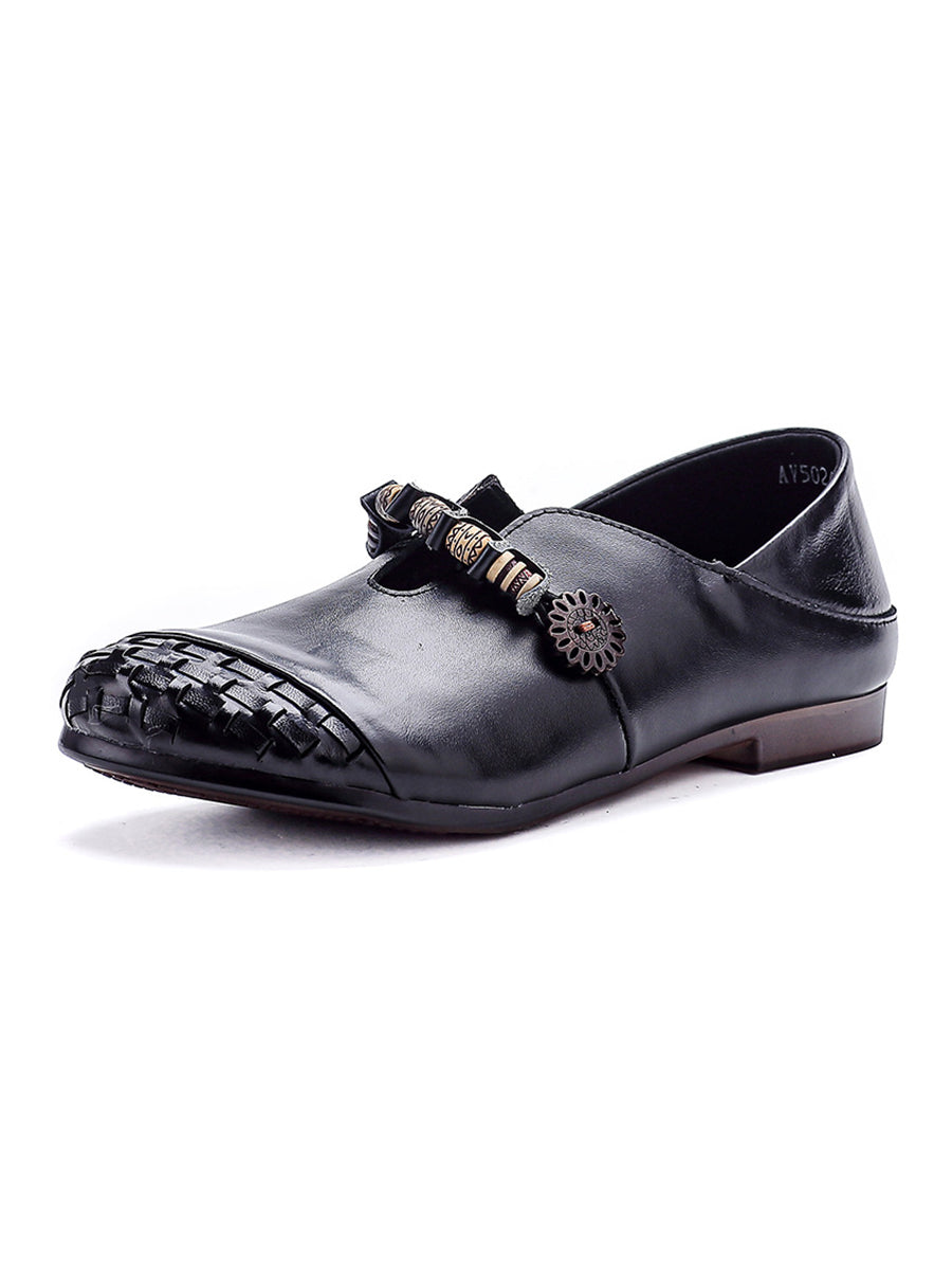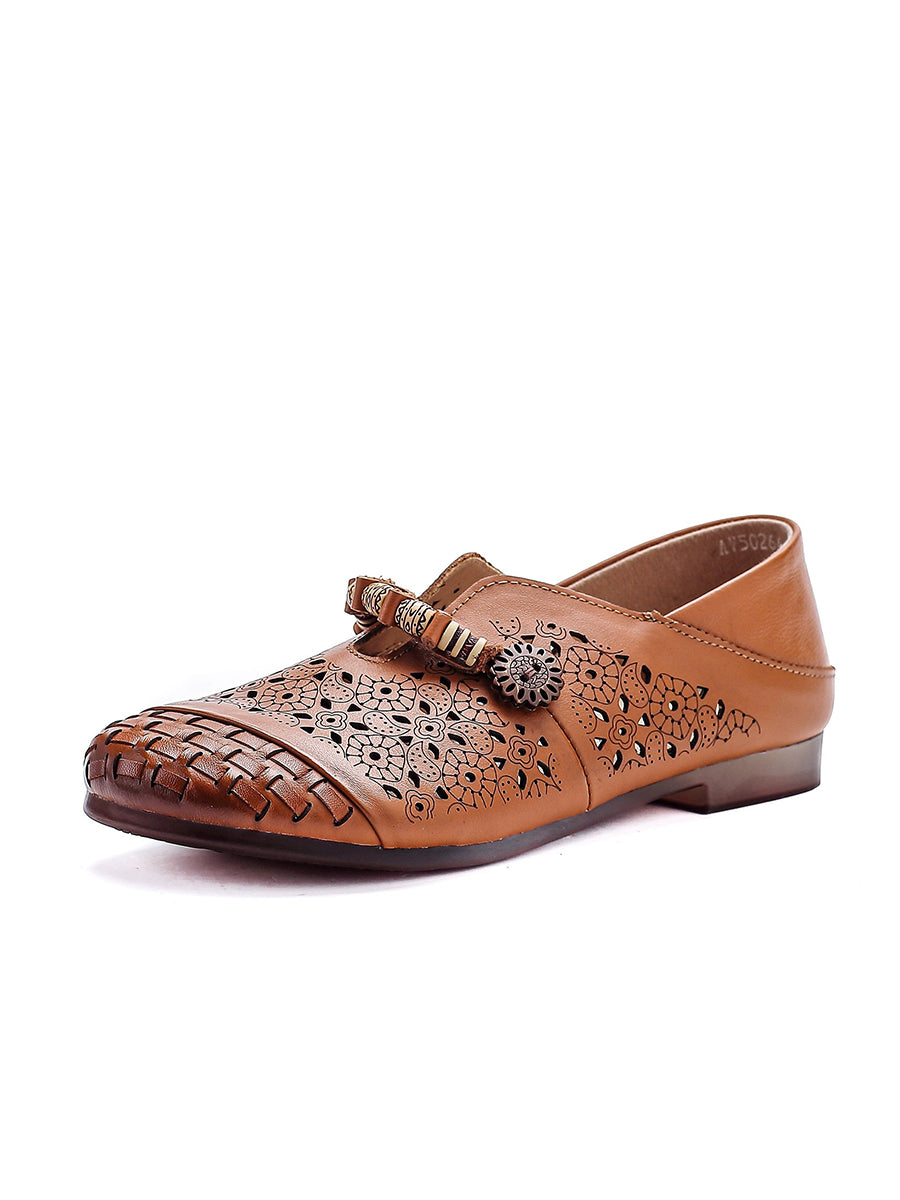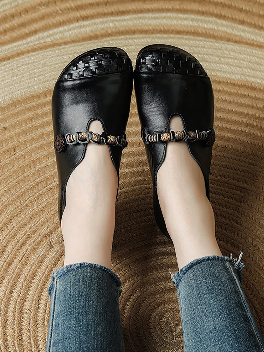 Women Summer Retro Genuine Leather Weave Spliced Shoes