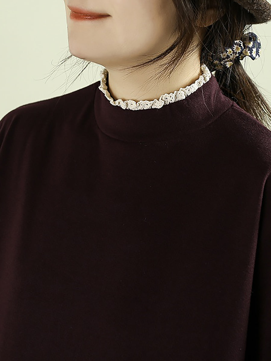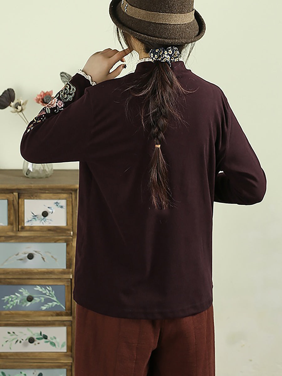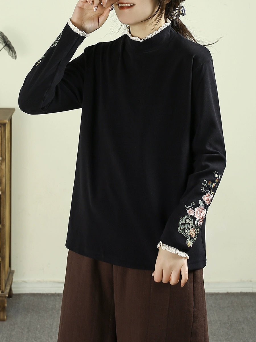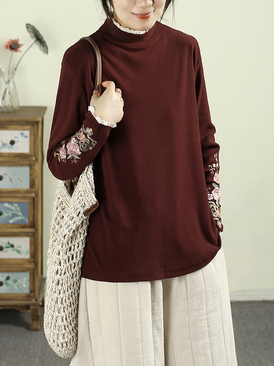 Women Winter Artsy Embroidery Half-Turtleneck Blouse