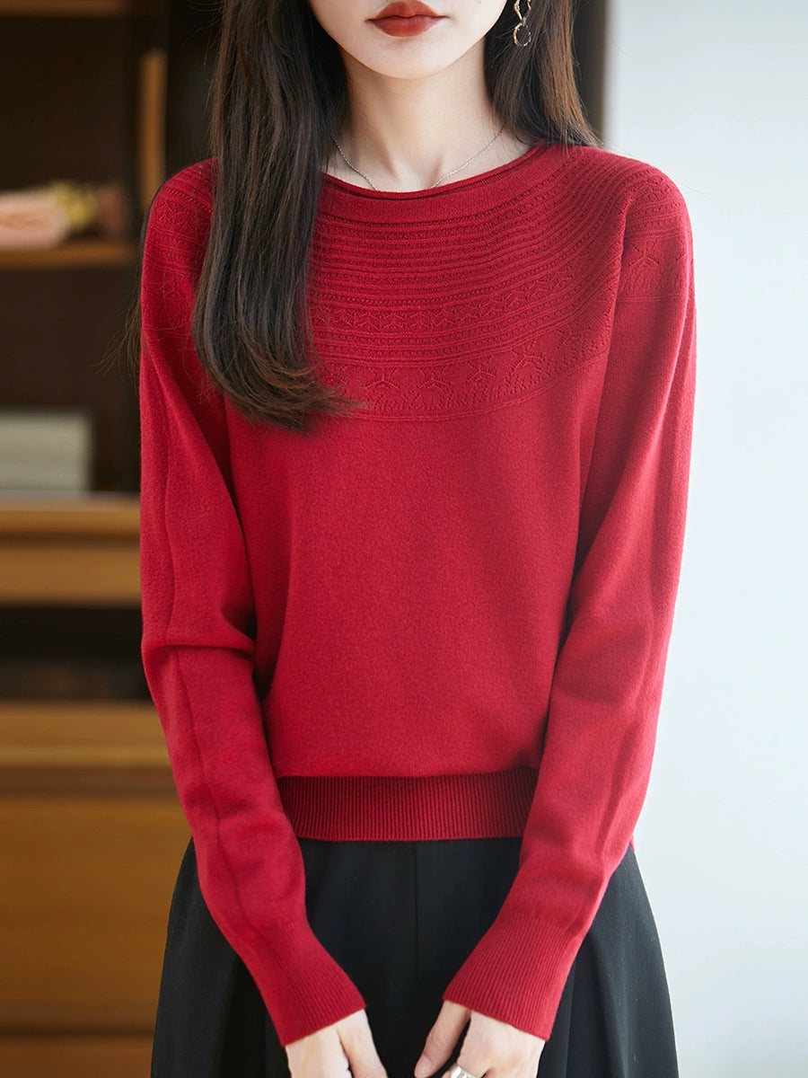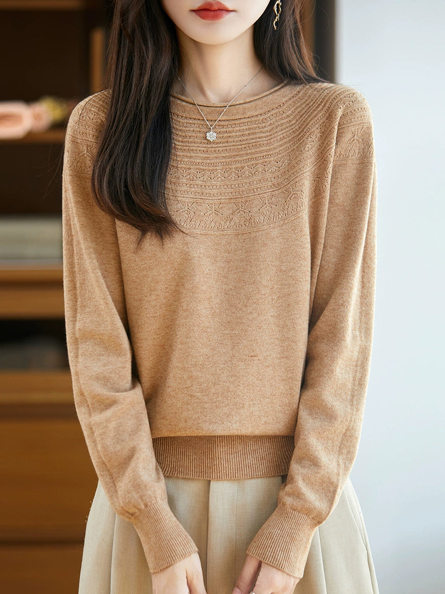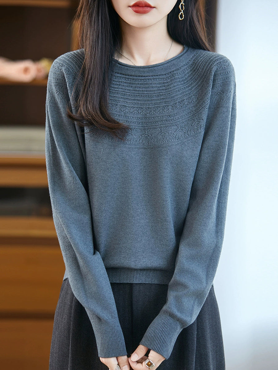 Women Spring Artsy Knit O-Neck O-Neck Sweater