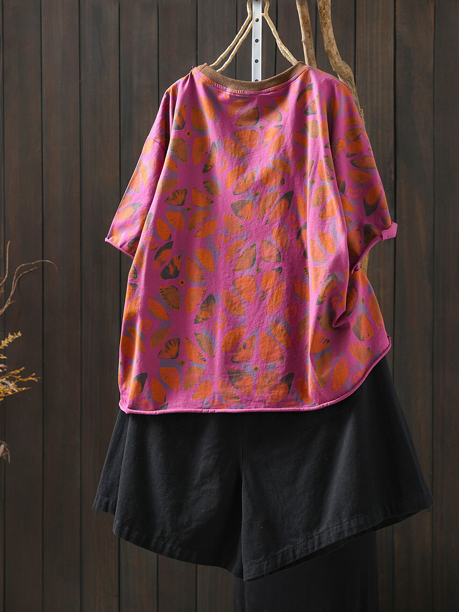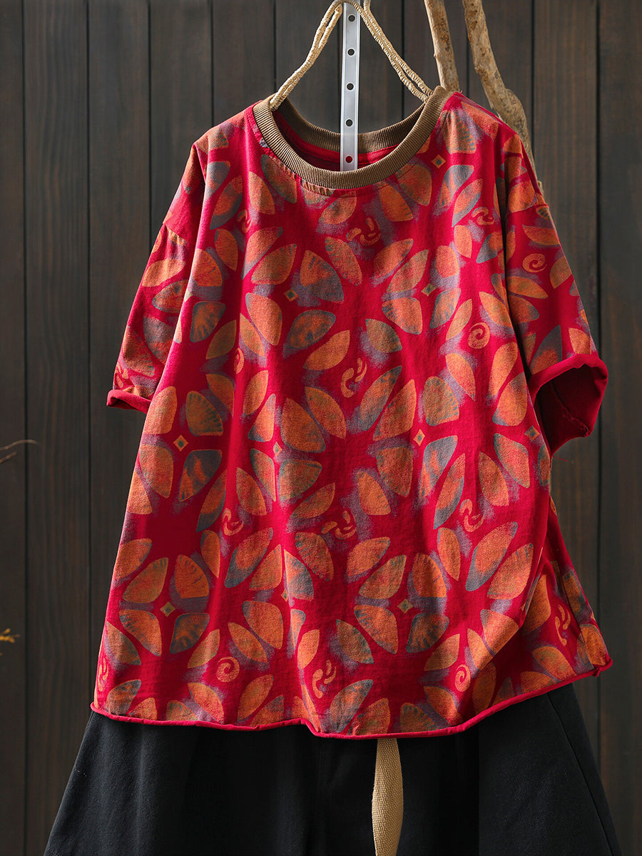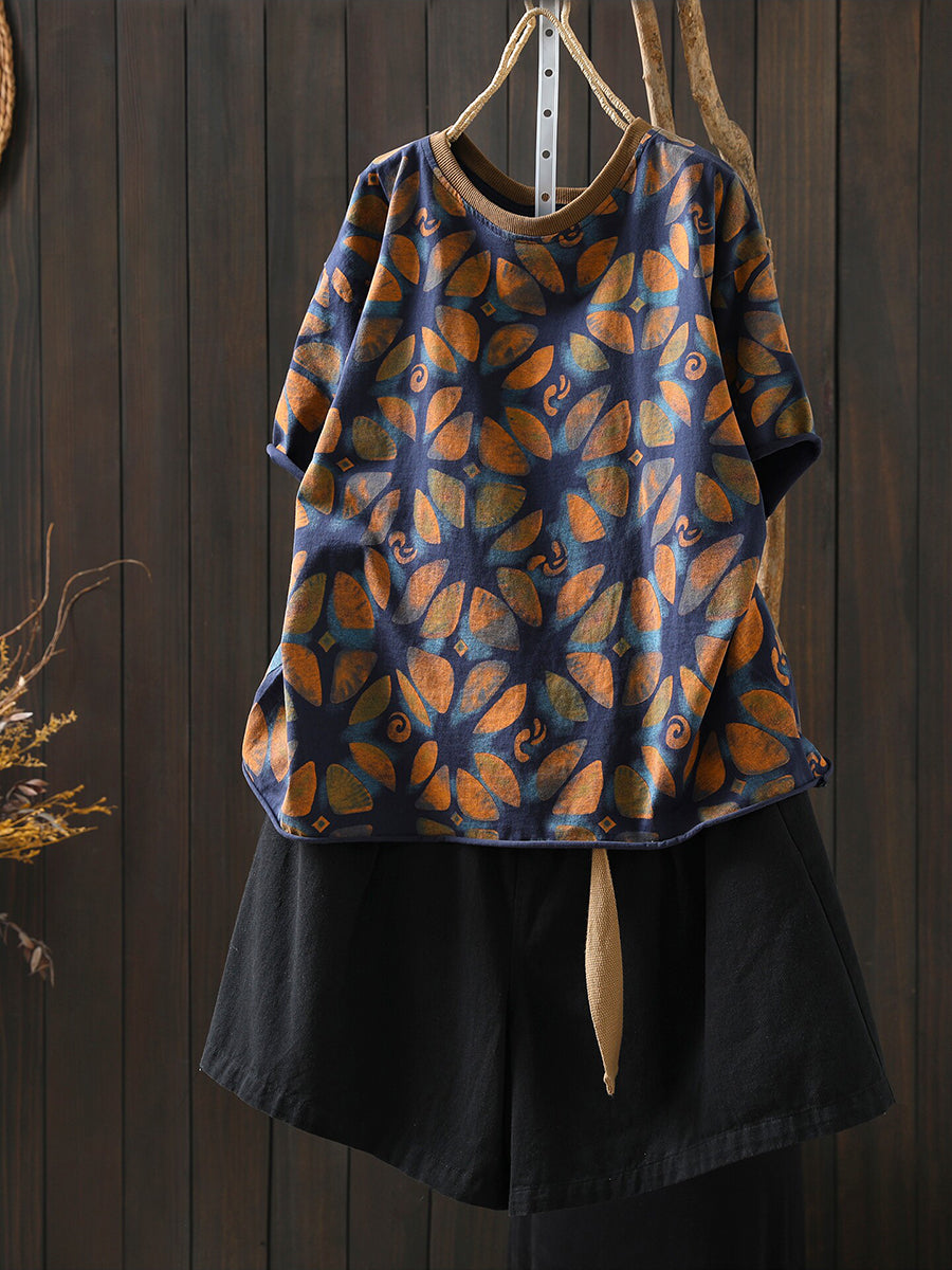Women Summer Artsy Flower Cotton Shirt