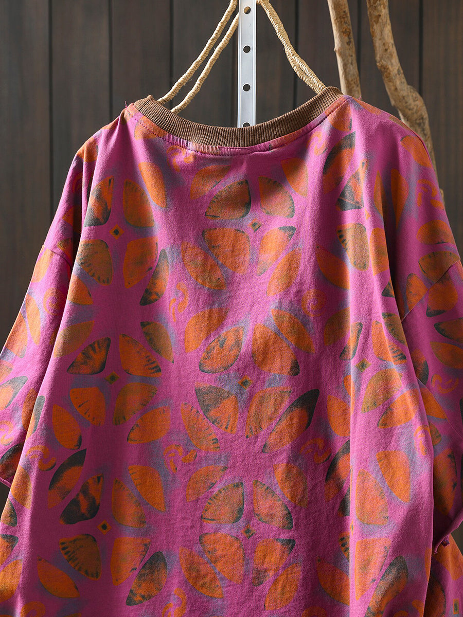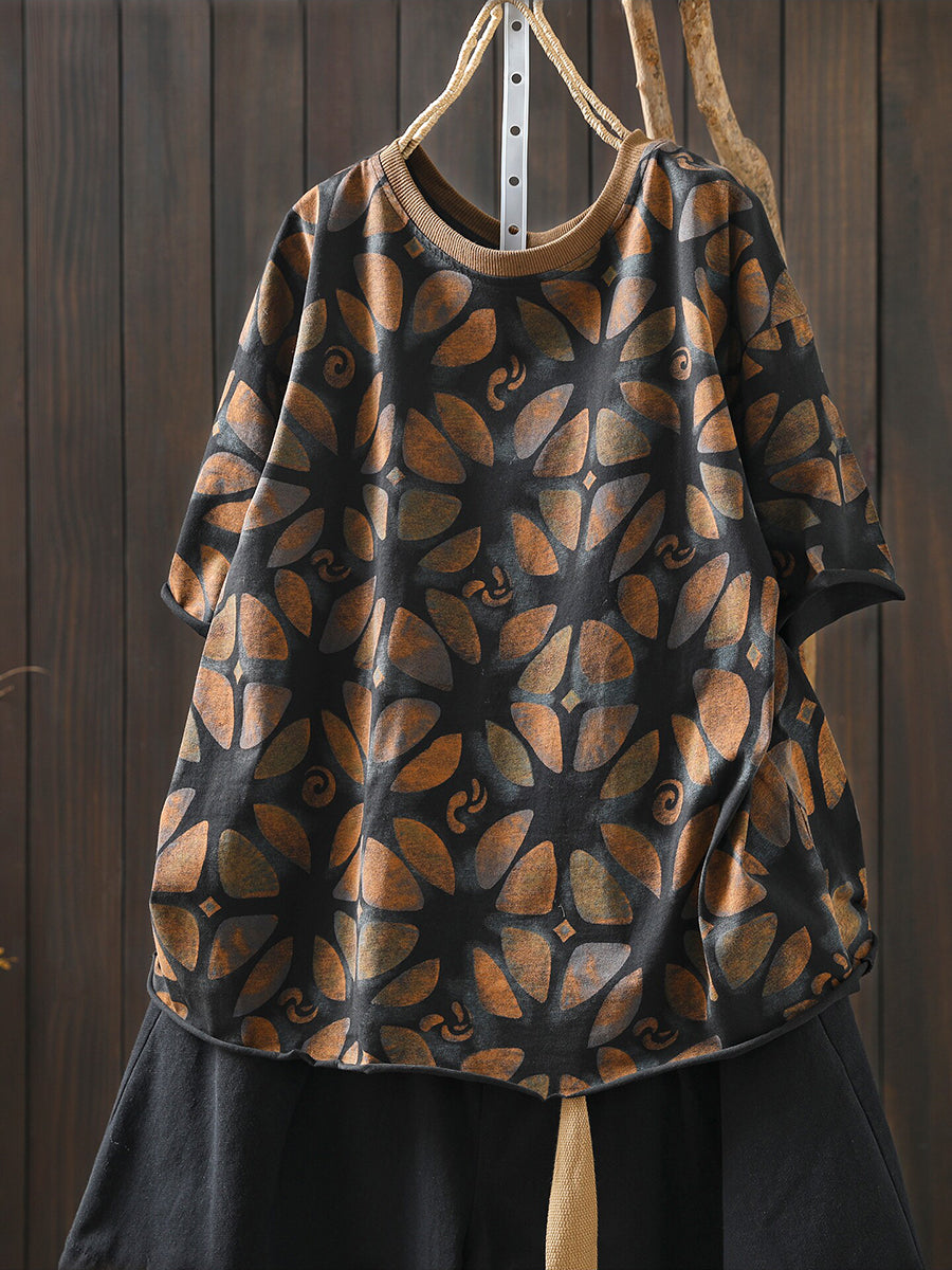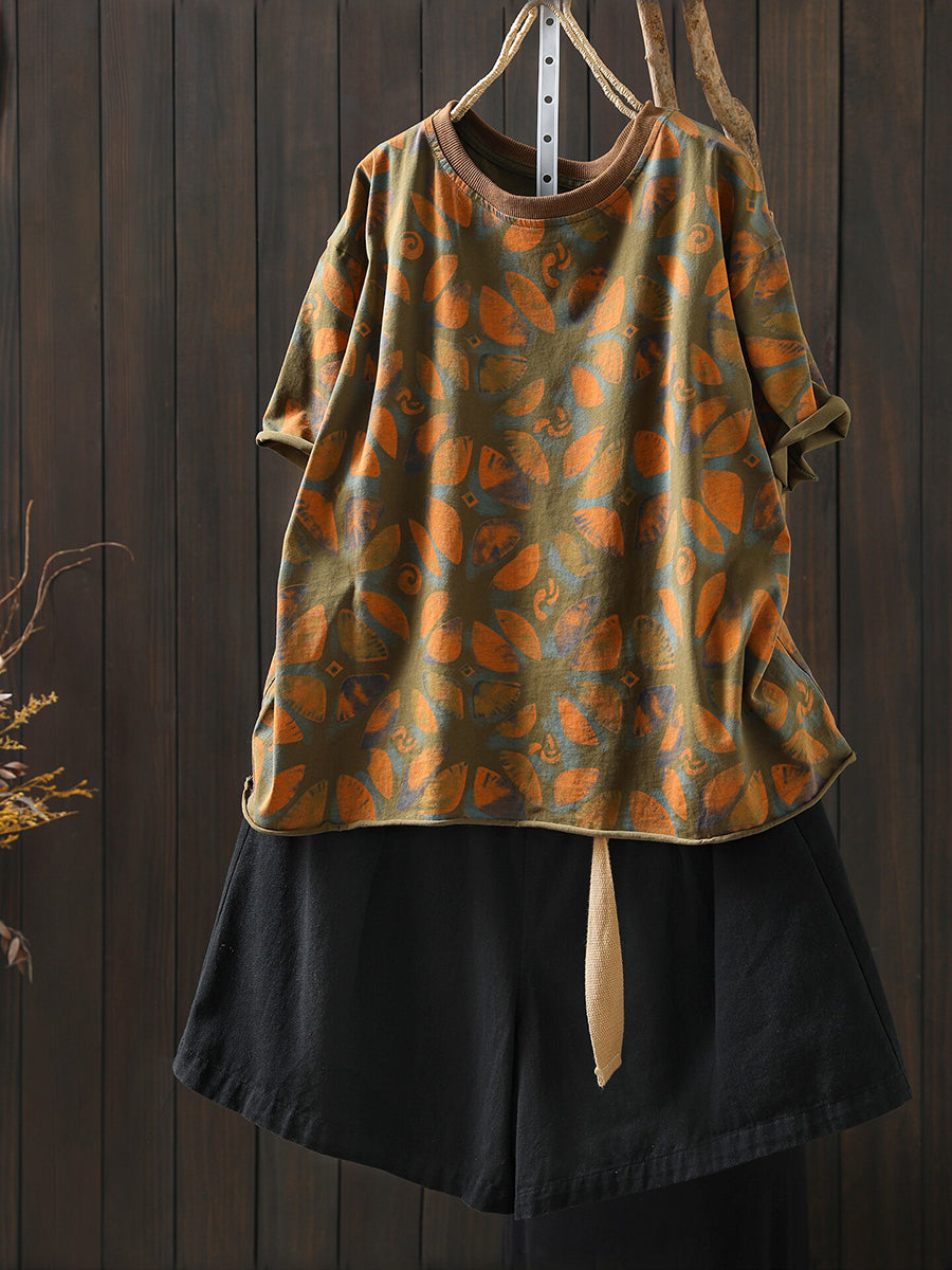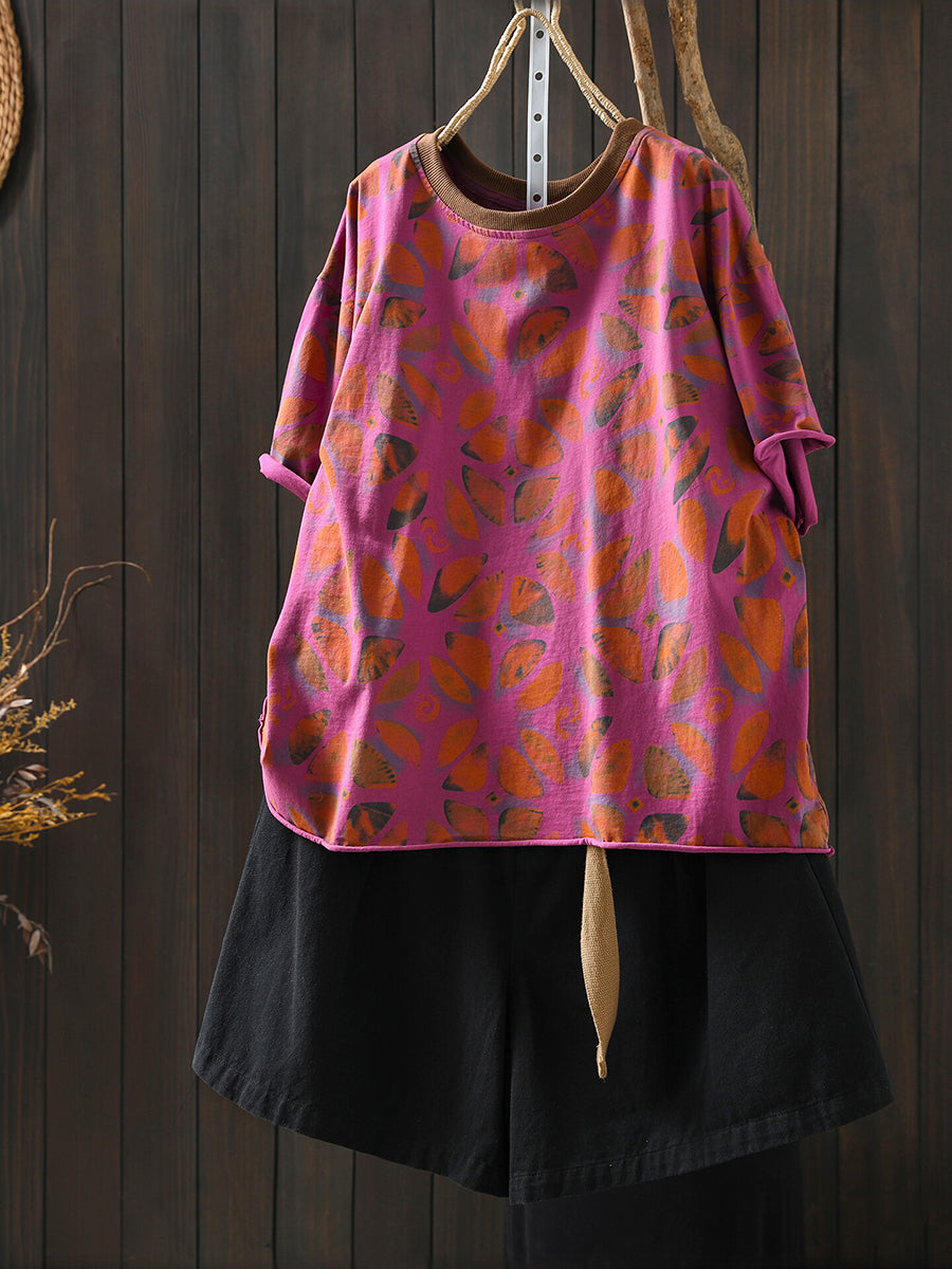 Women Summer Artsy Flower Cotton Shirt
