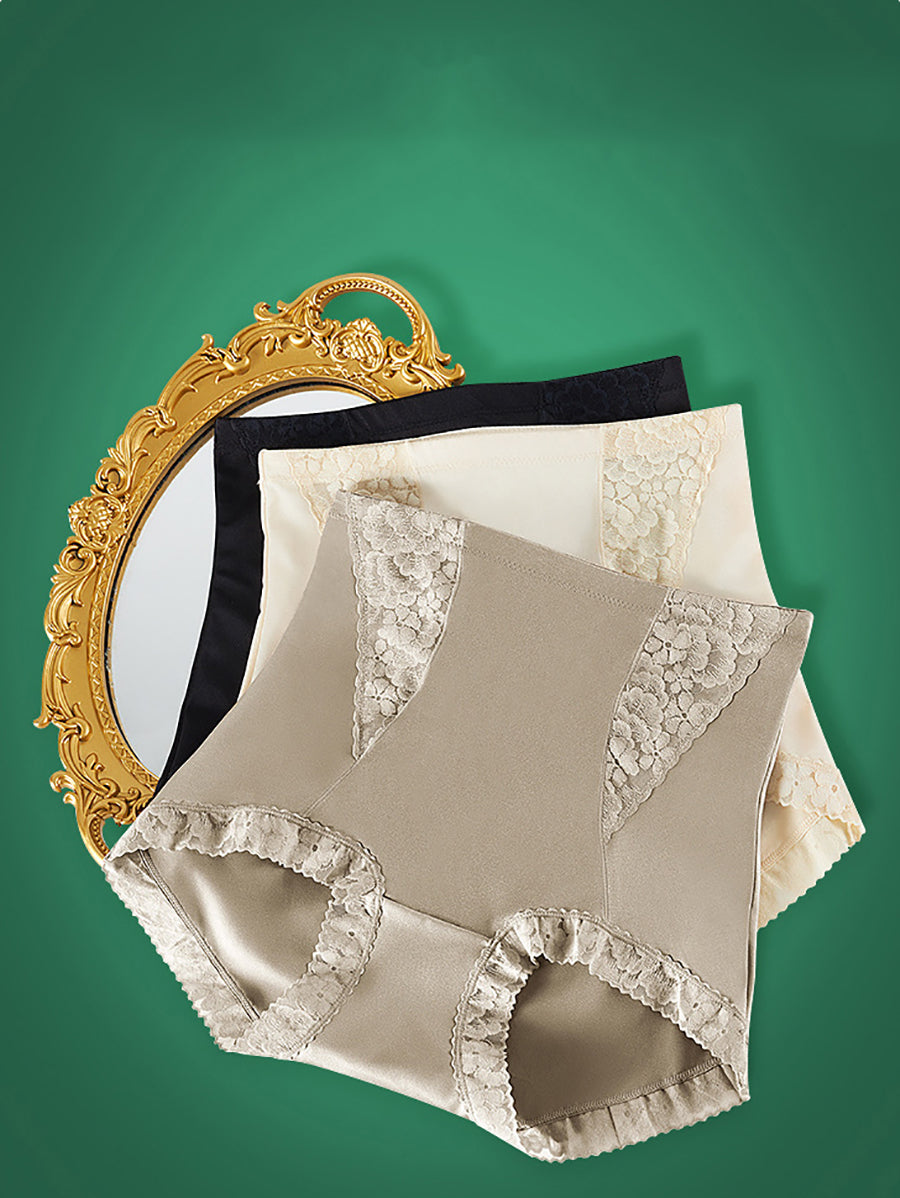 3 Pieces Women Artsy Pure Color Lace High Waist Underwear