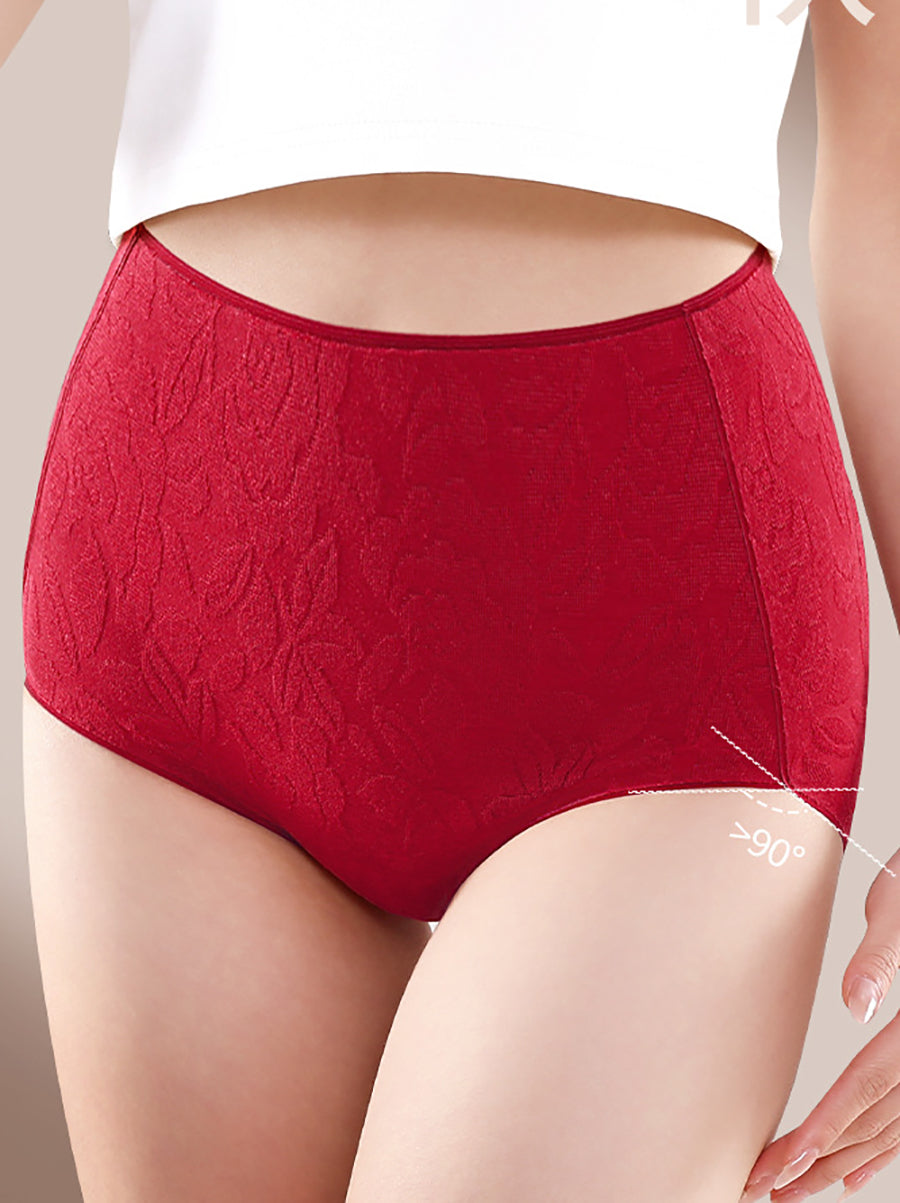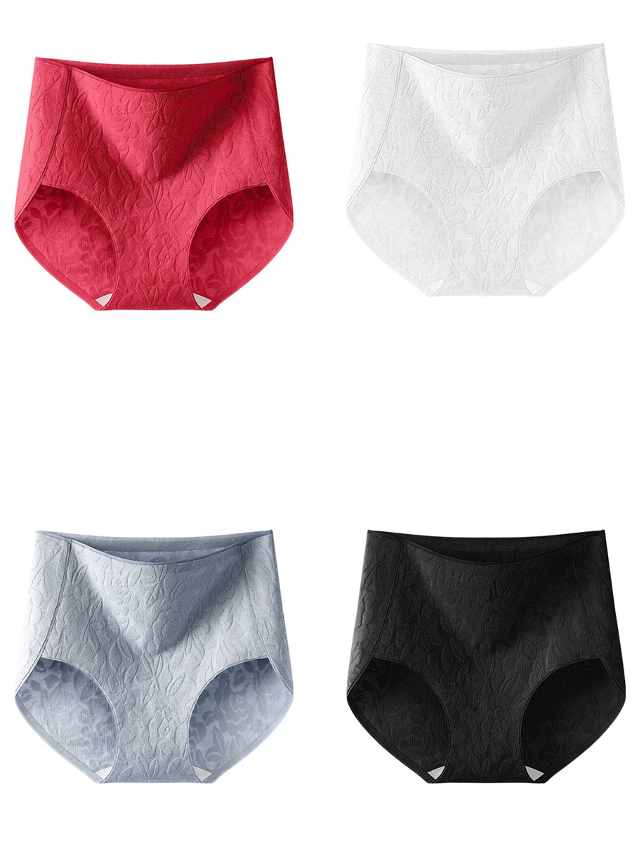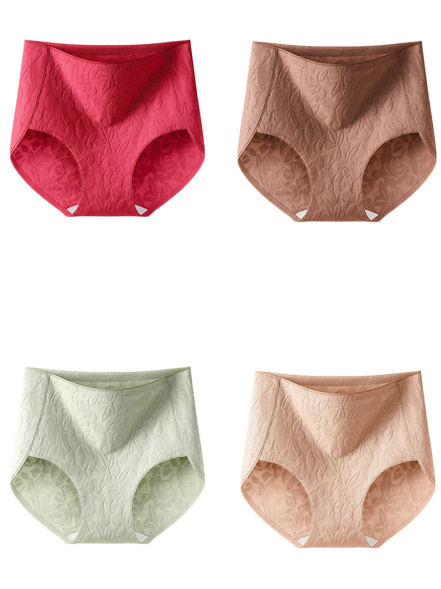 4 Pieces Women Artsy Flower Jacquard High Waist Underwear