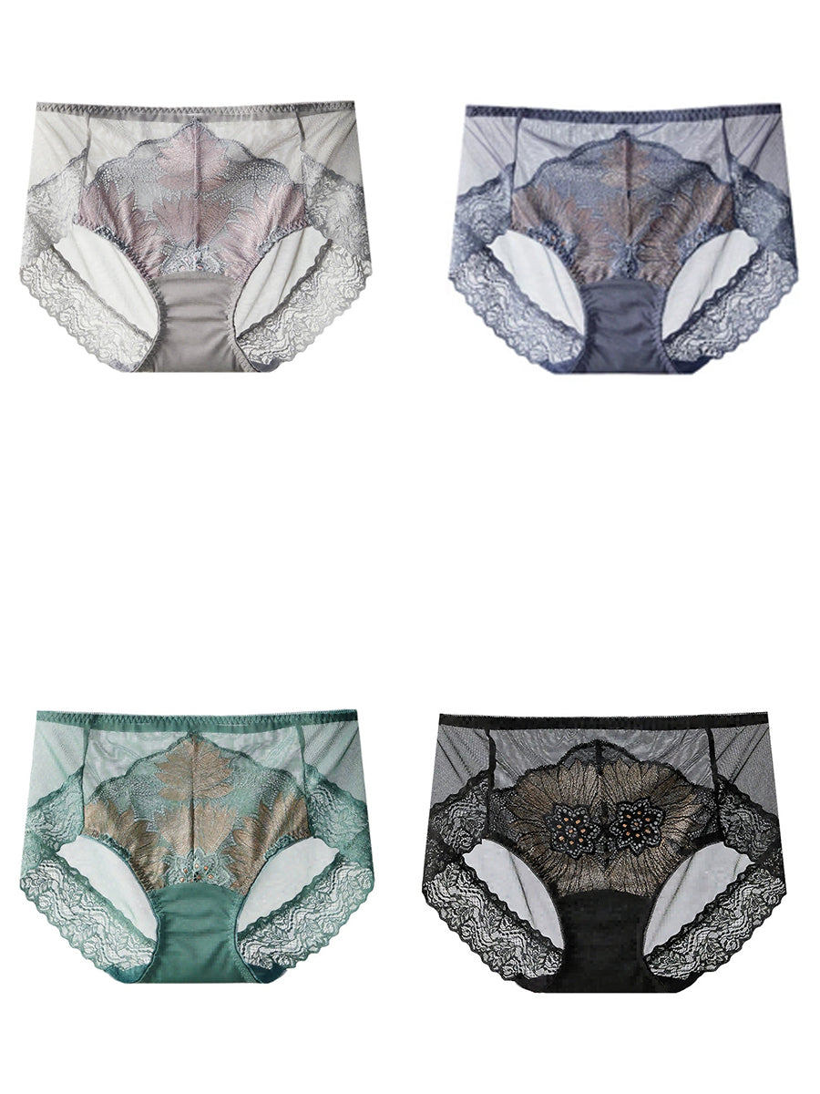 4 Pieces Women Artsy High Waist Lace Underwear