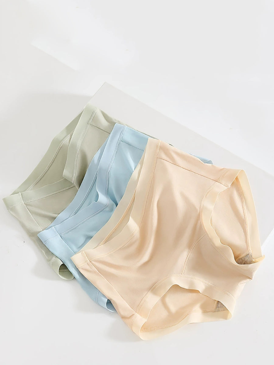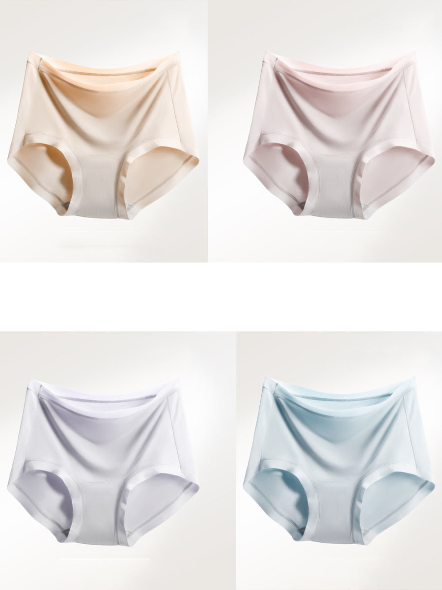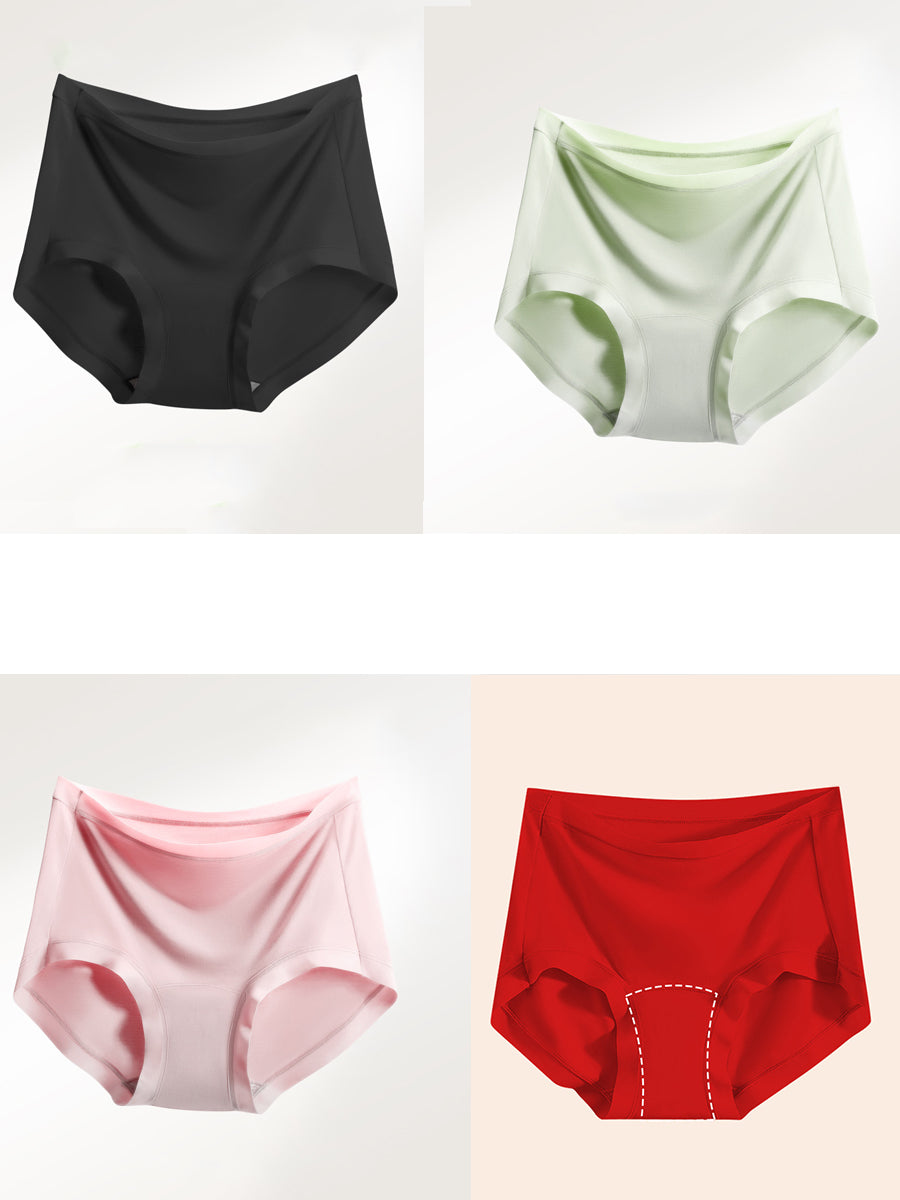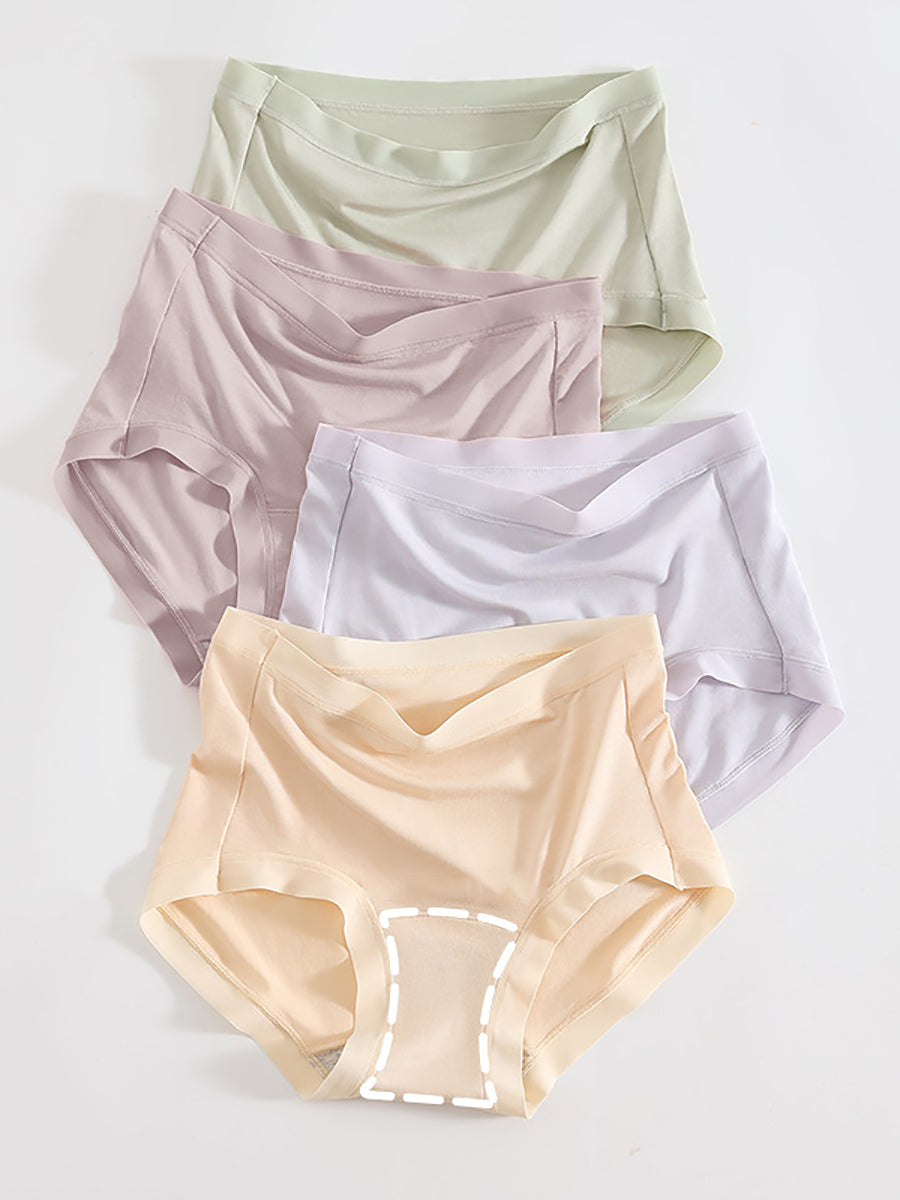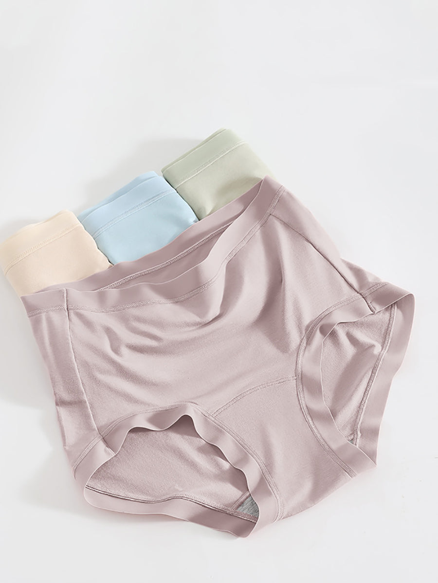 4 Pieces Women Artsy Pure Color High Waist Underwear