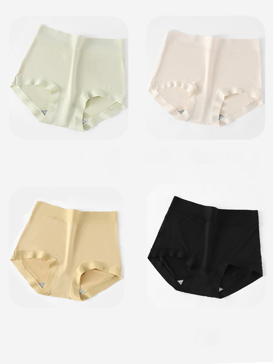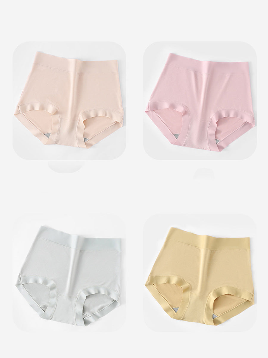 4 Pieces Women Artsy Pure Color High Waist Underwear