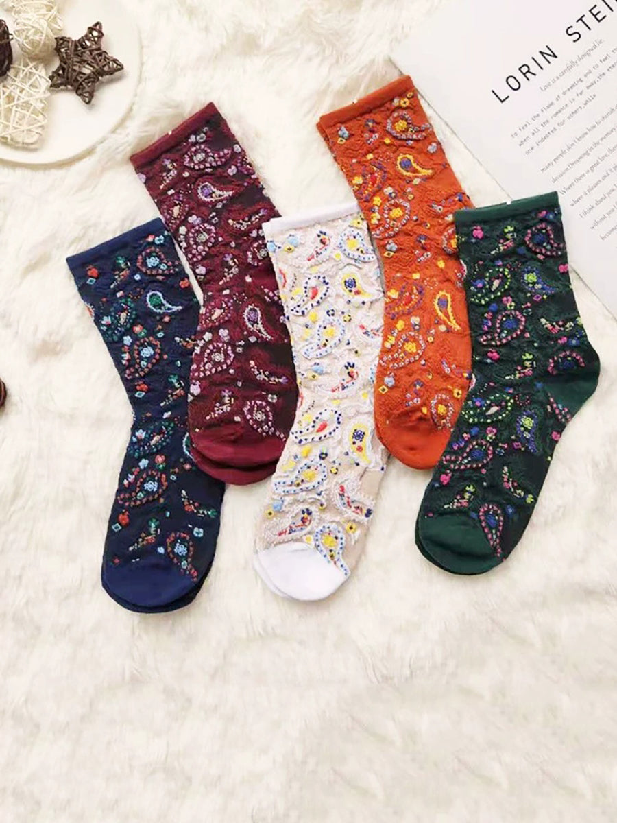 5 Pairs Women Artsy Floral Jacquard Socks