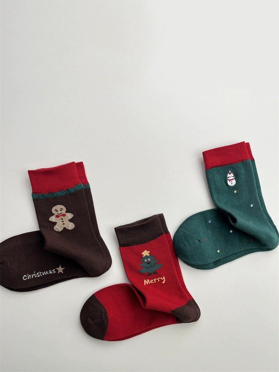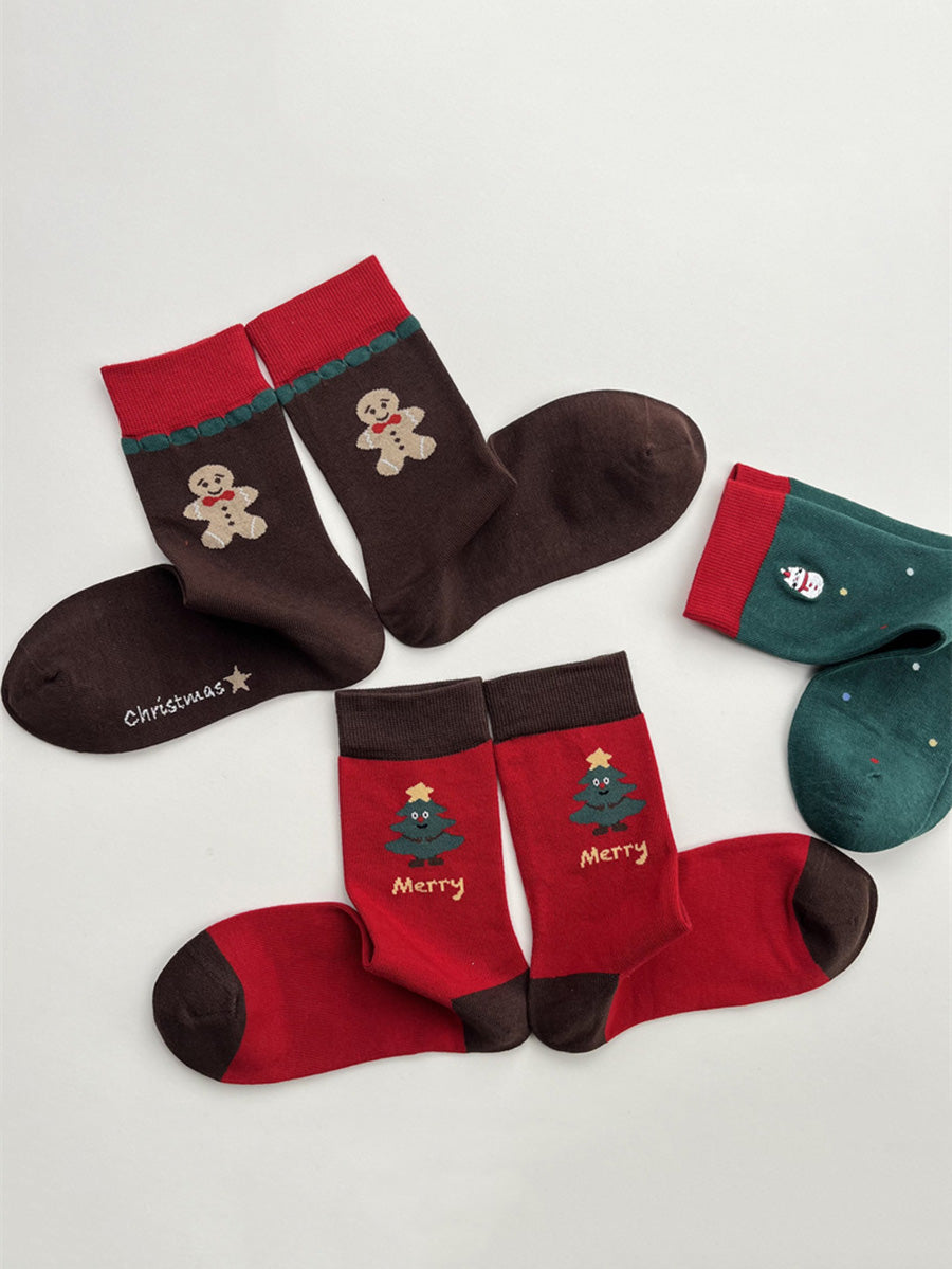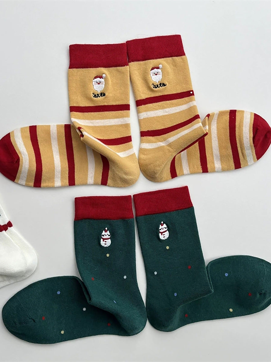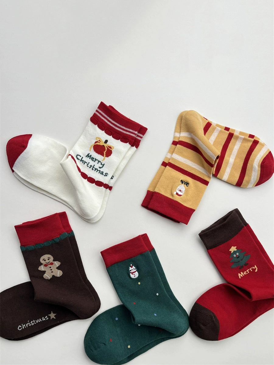 5 Pairs Women Chirstmas Sytle Colorblock Cotton Socks