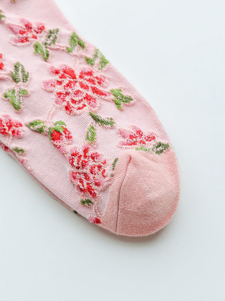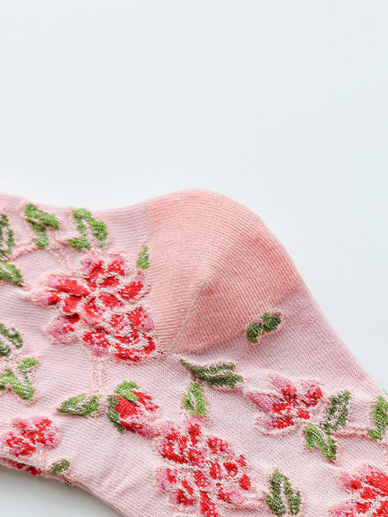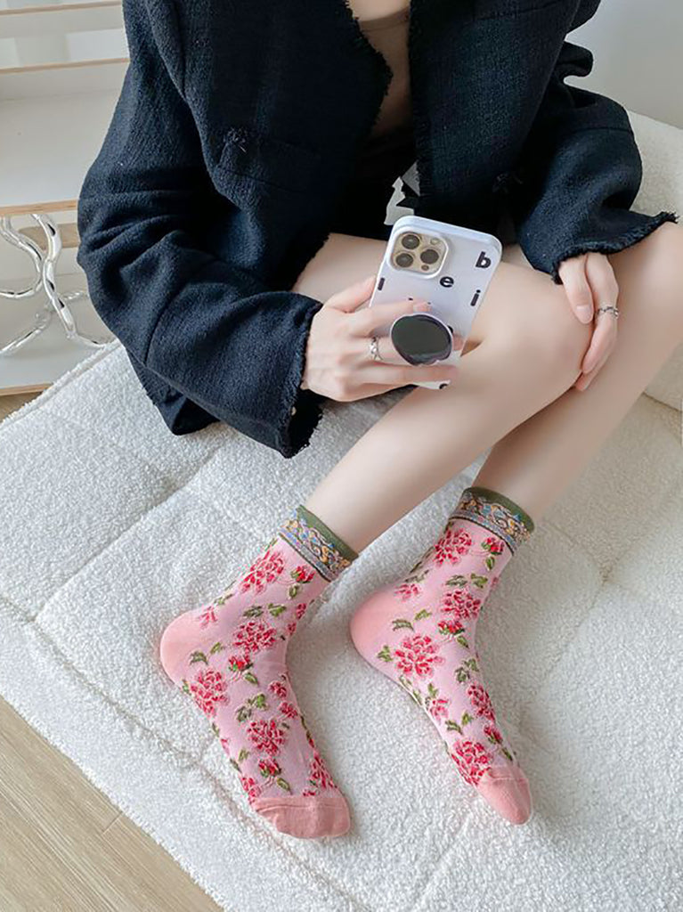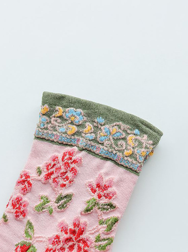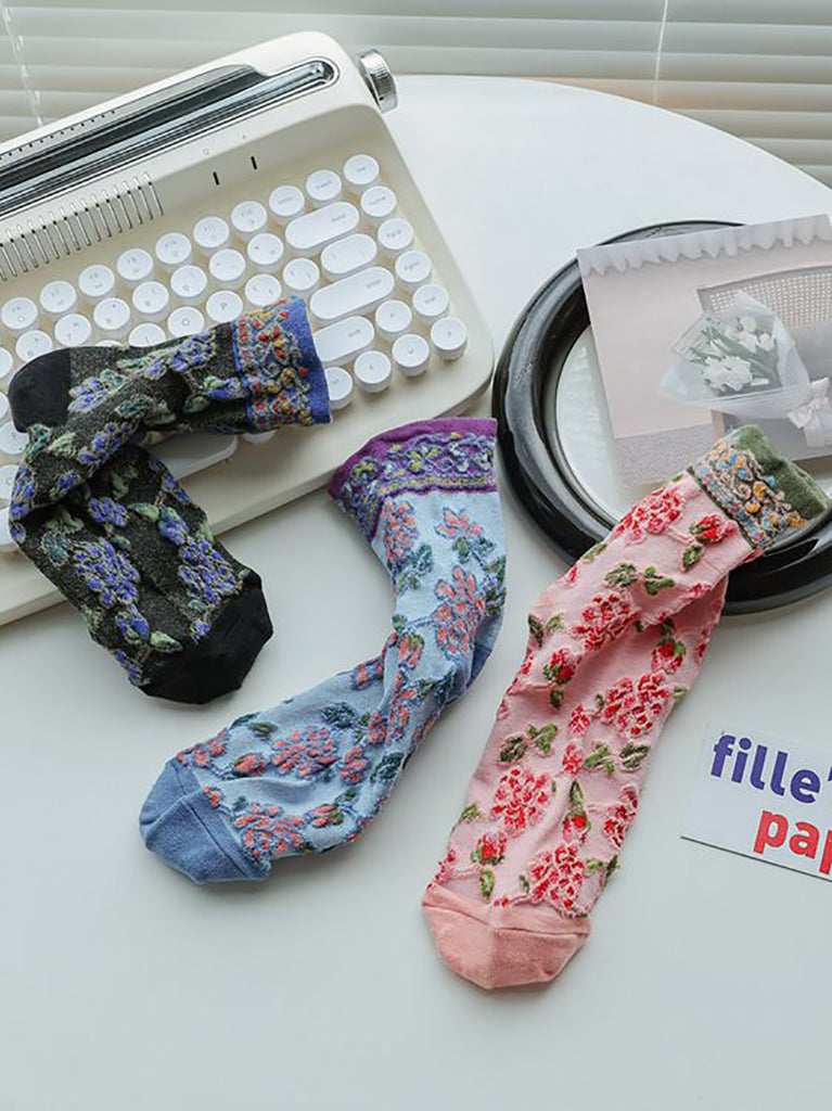 5 Pairs Women Vintage Floral Jacquard Cotton Socks