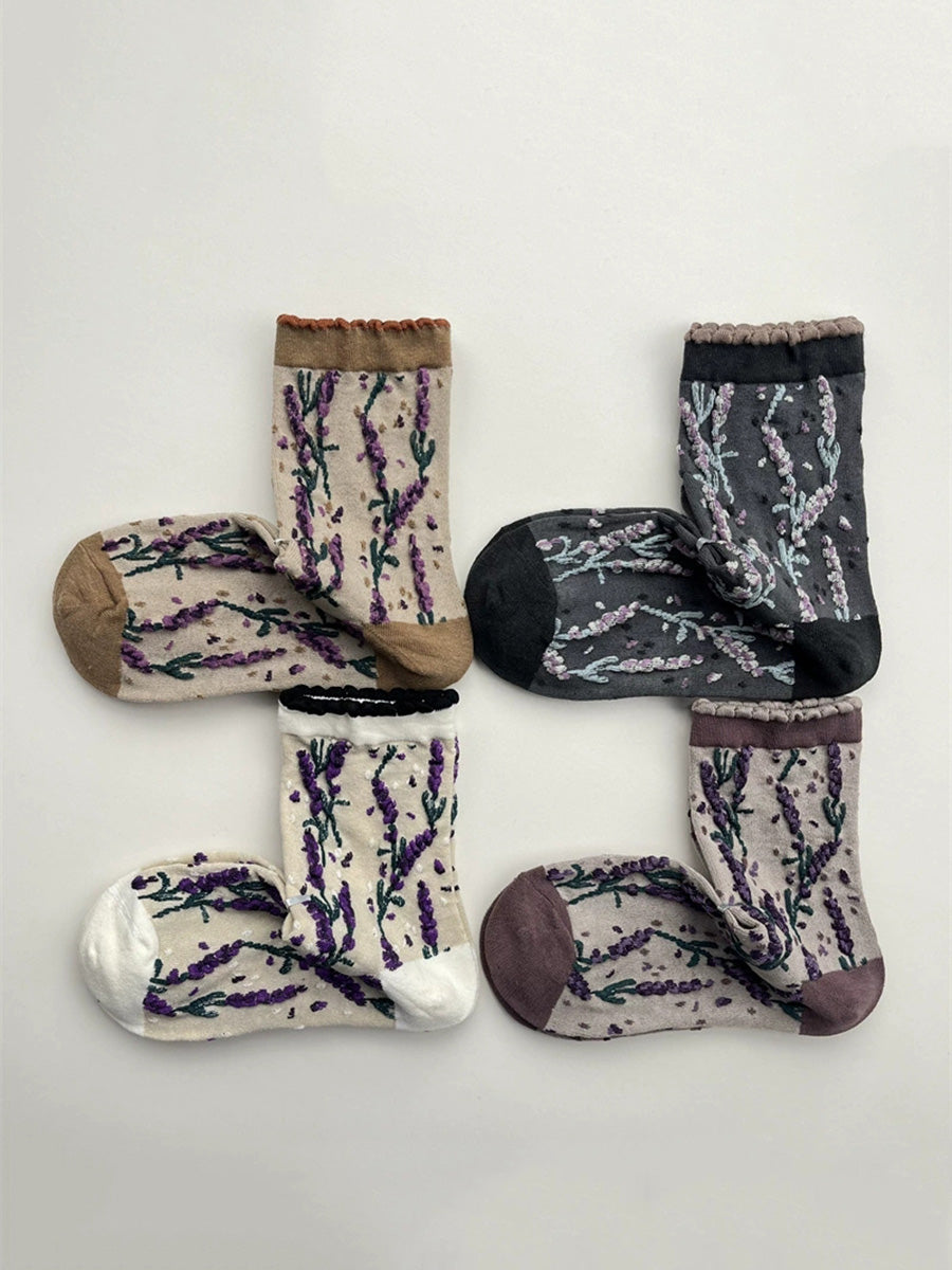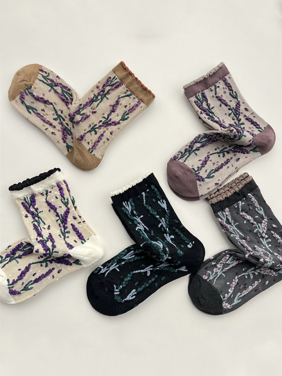 5 Pairs Women Winter Flower Jacquard Cotton Socks