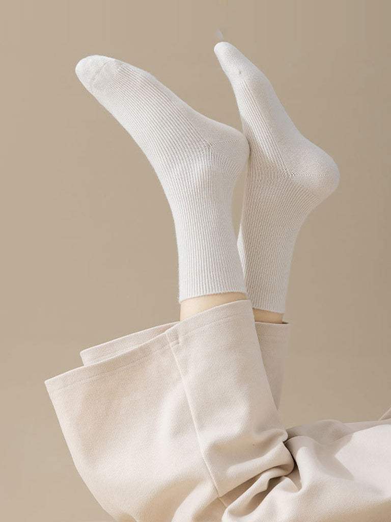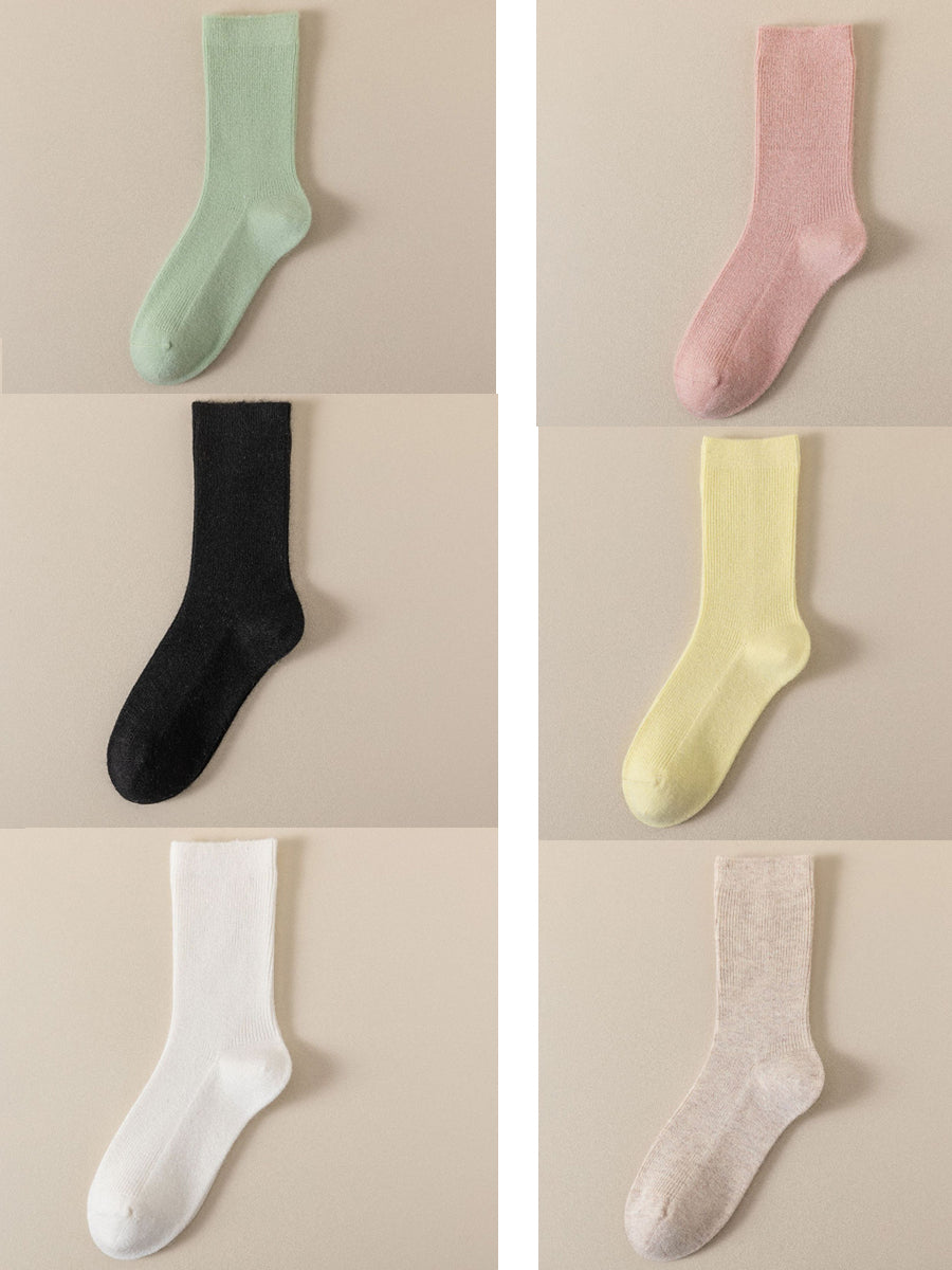 6 Pairs Women Winter Casual Pure Color Socks