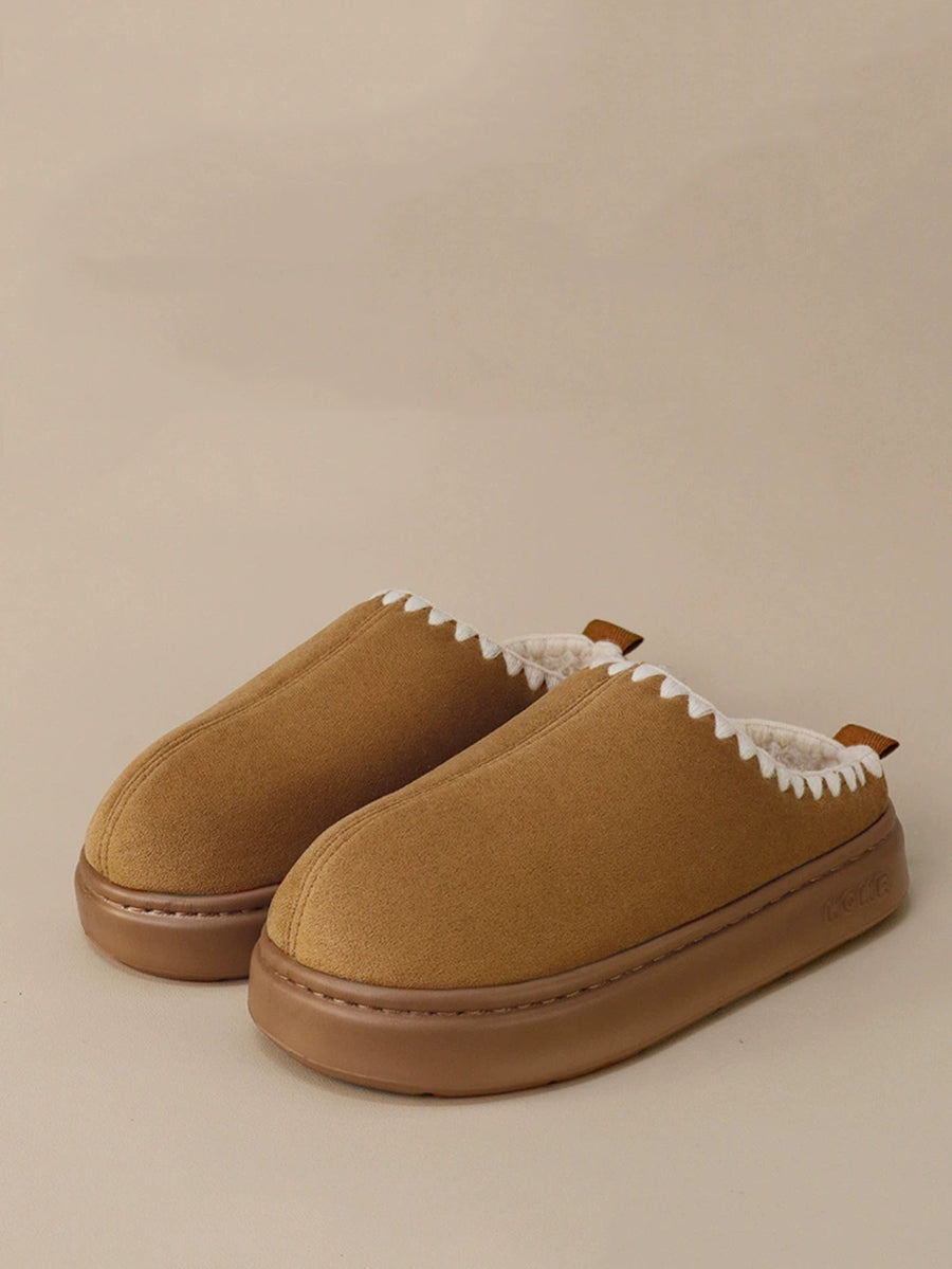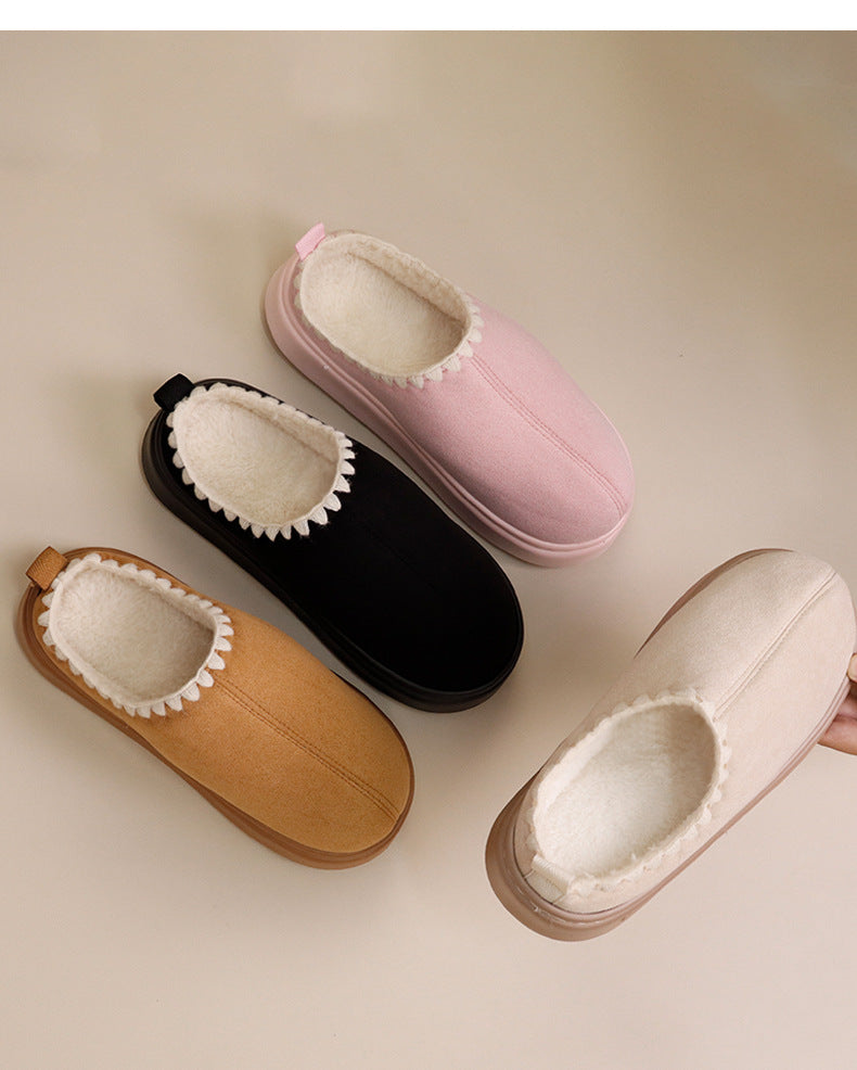 Couple Winter Casual Pure Color Fleece-lined Indoor Slippers