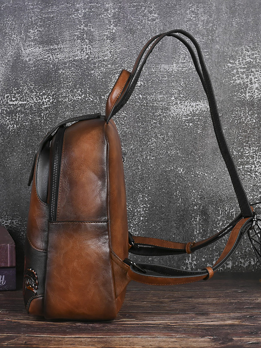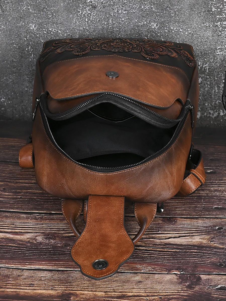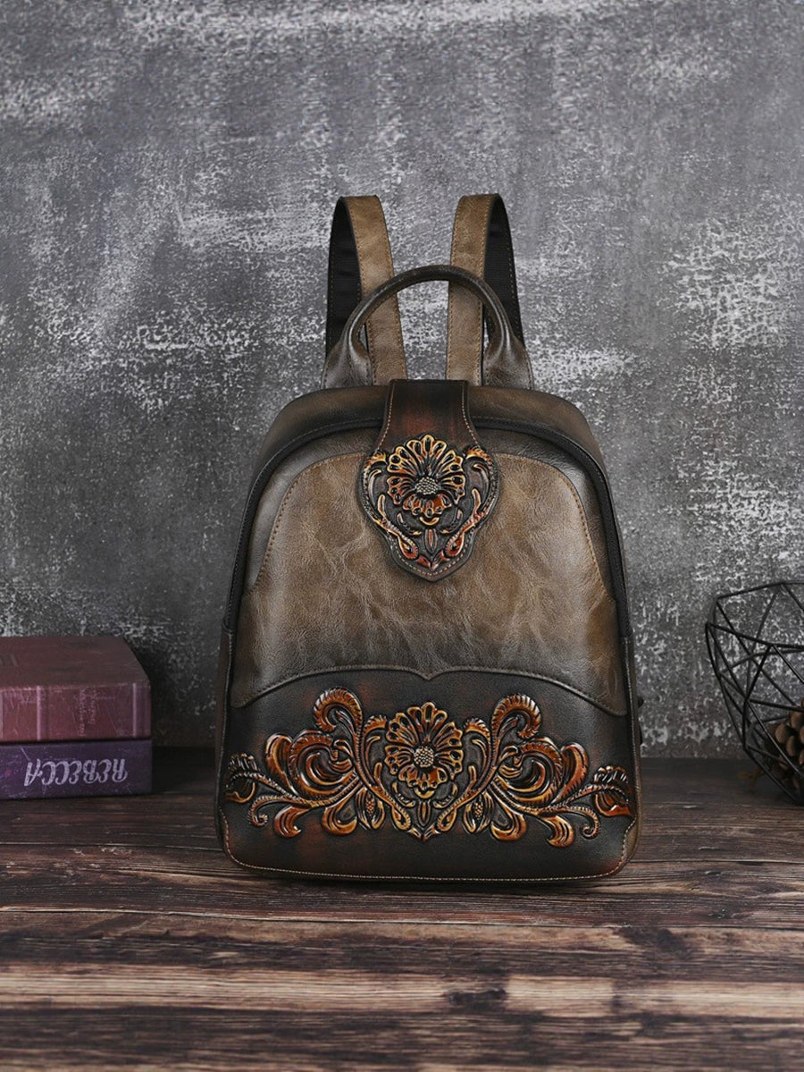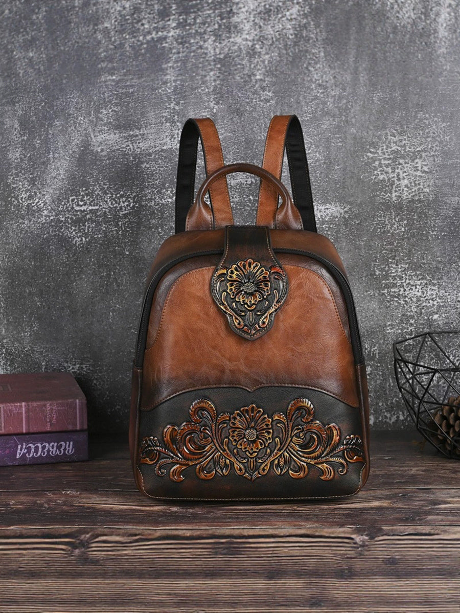 Vintage Leather Embossed Splicing Backpack