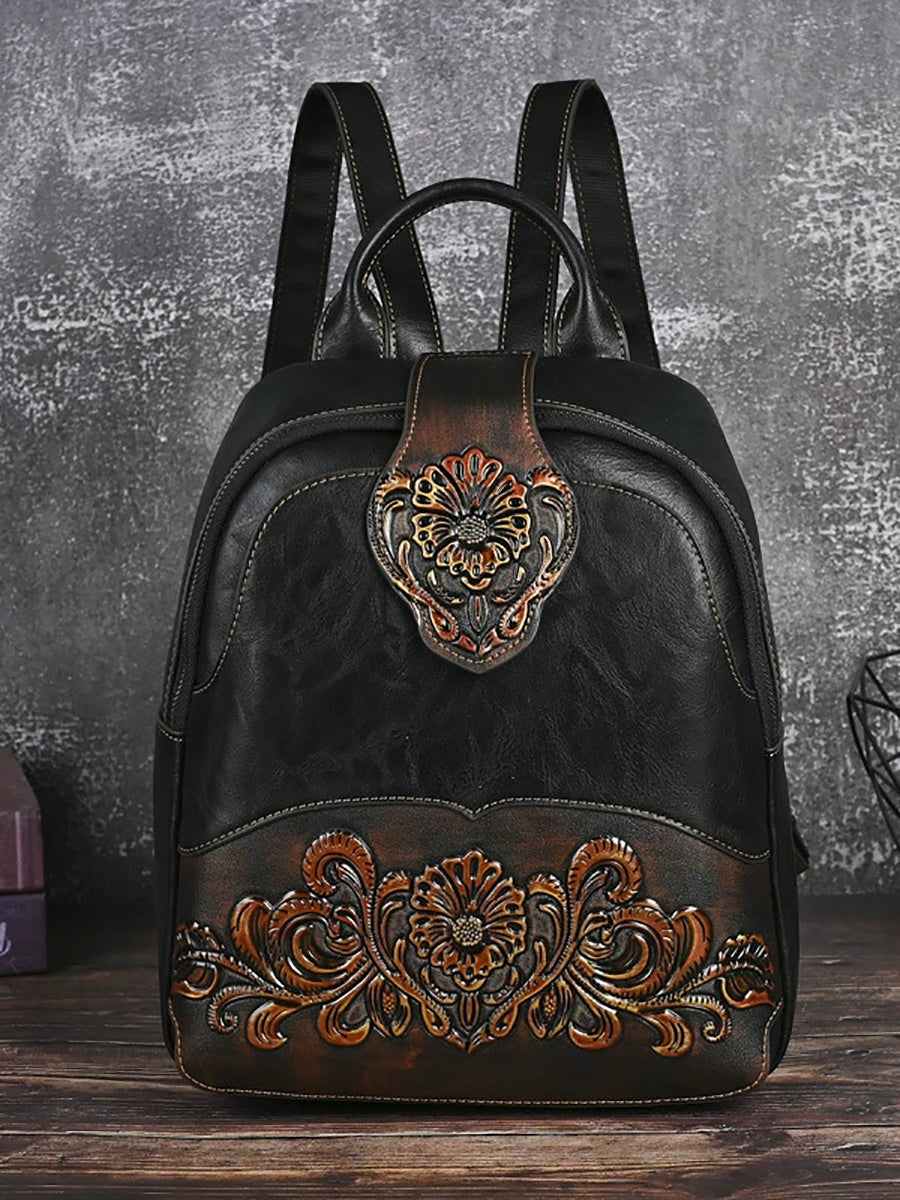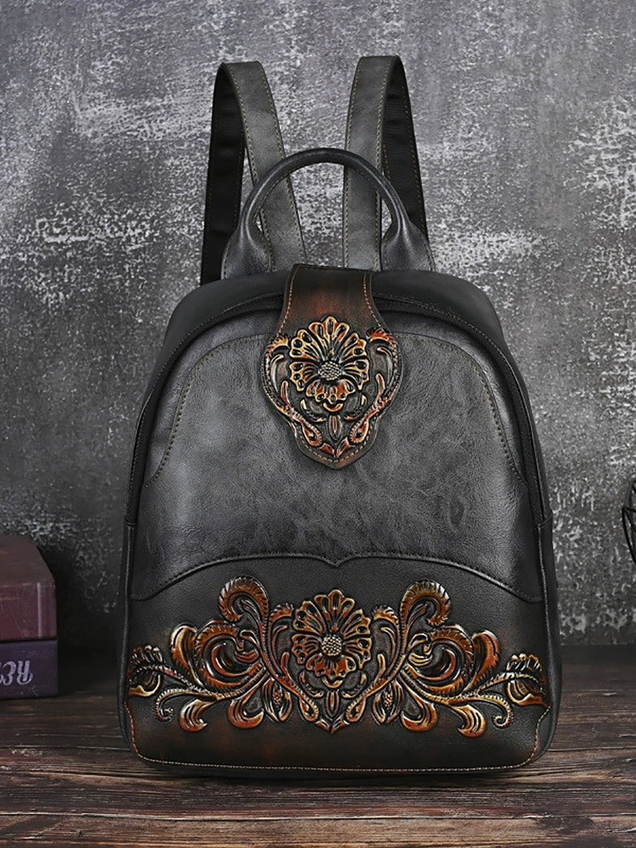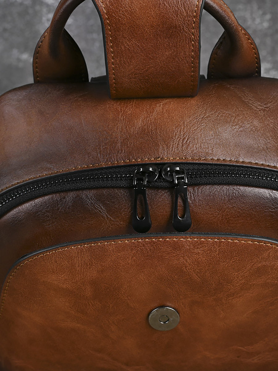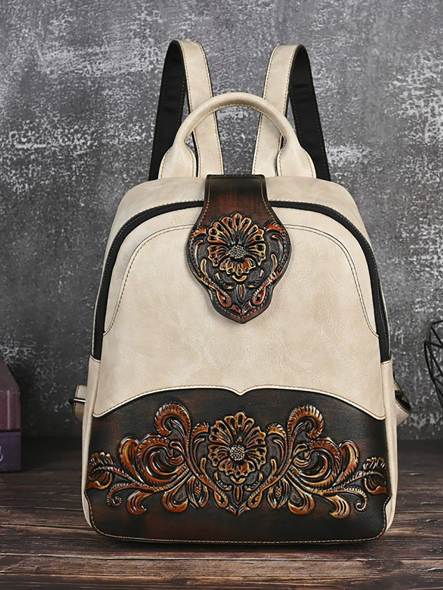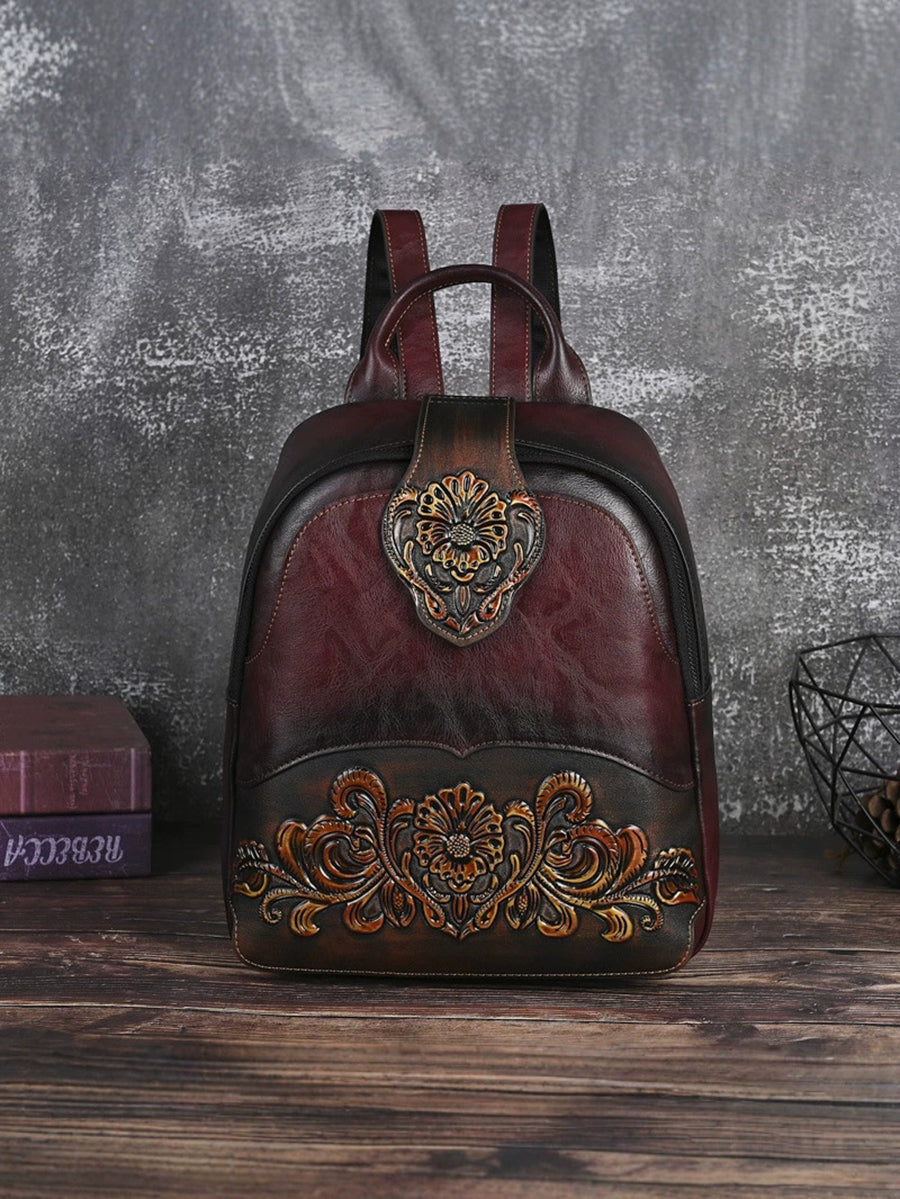 Vintage Leather Embossed Splicing Backpack
