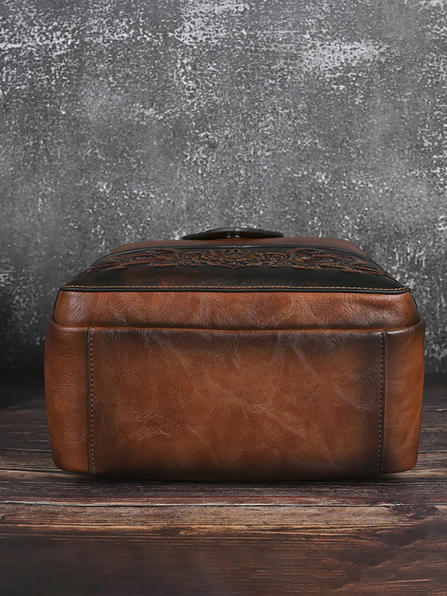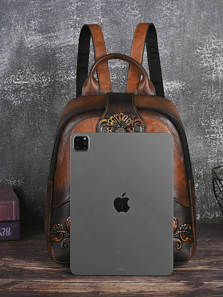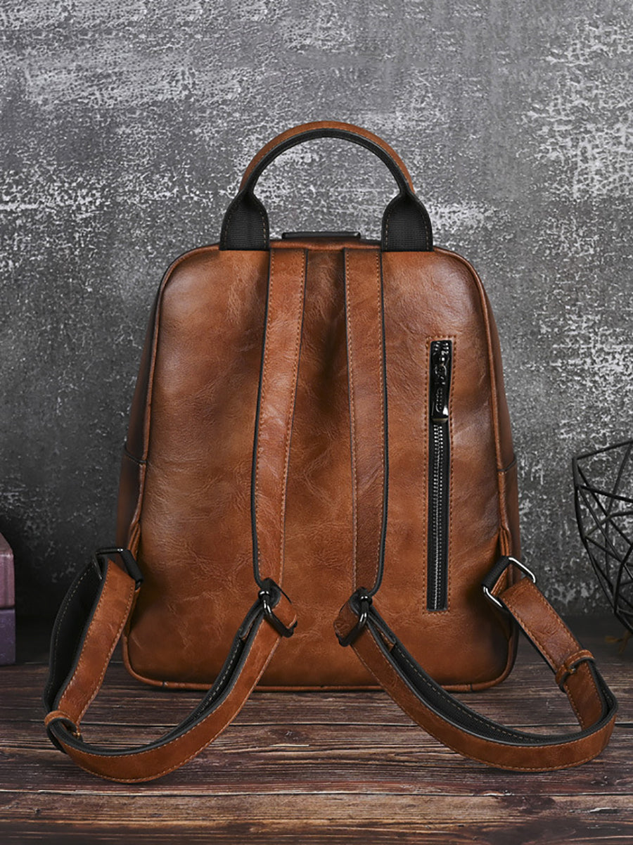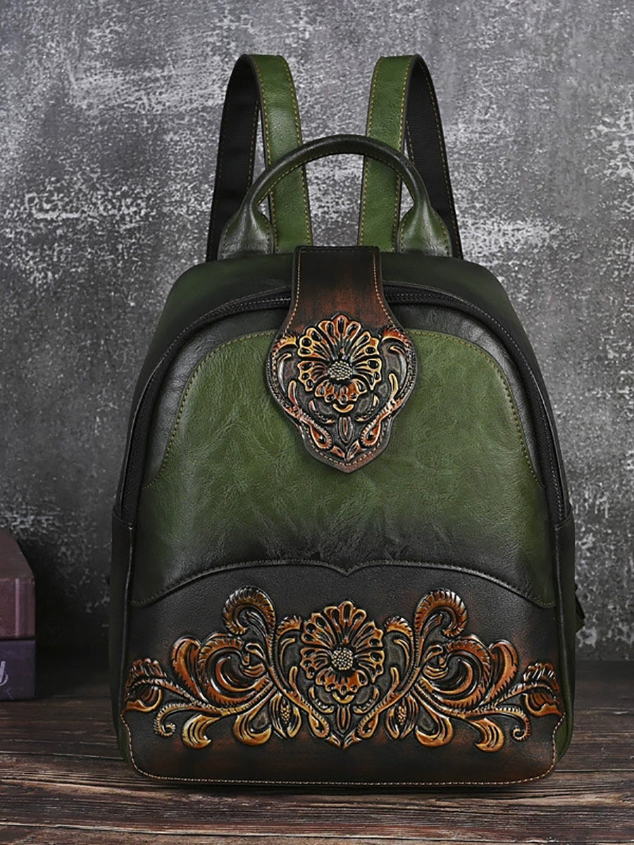 Vintage Leather Embossed Splicing Backpack