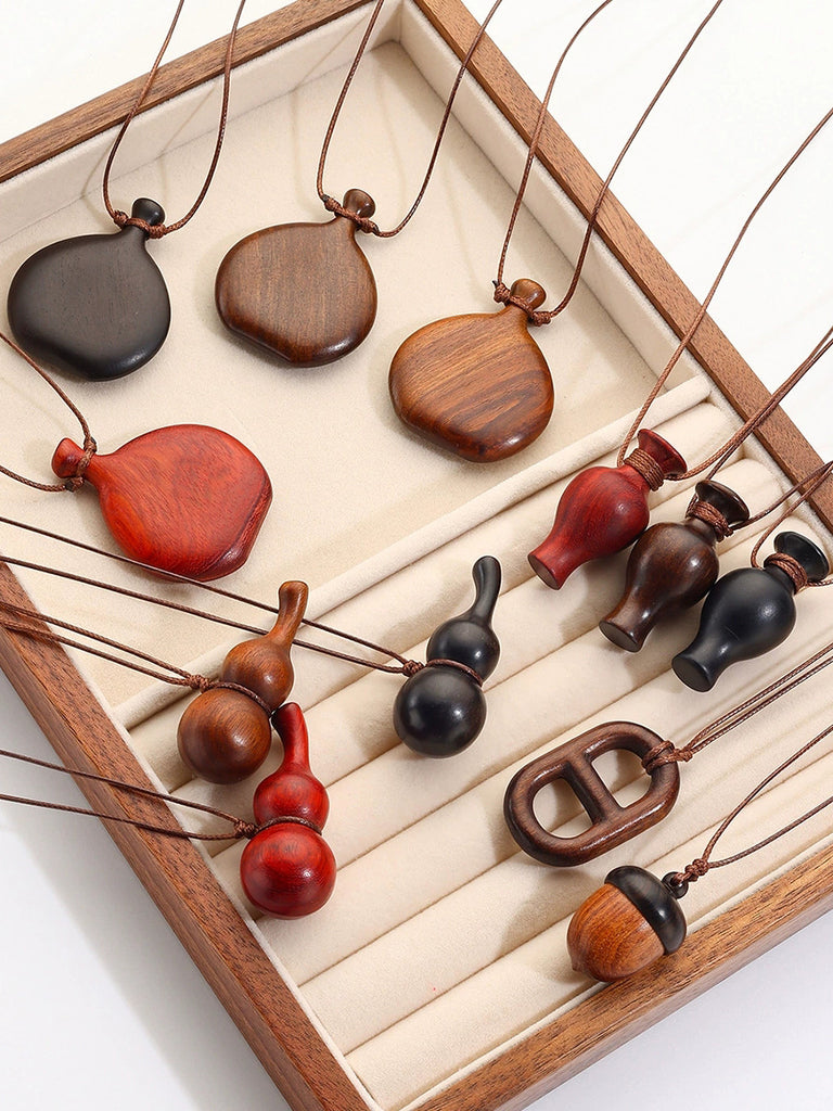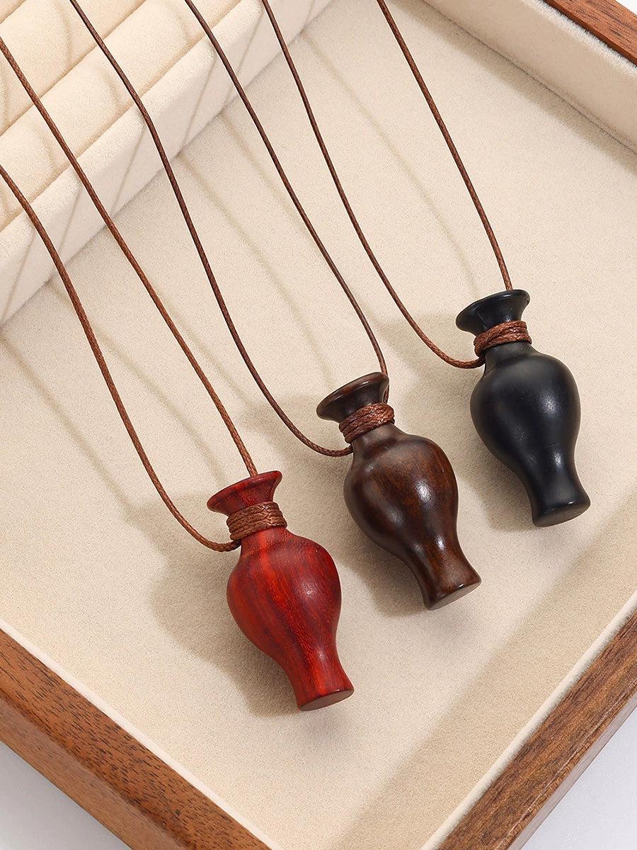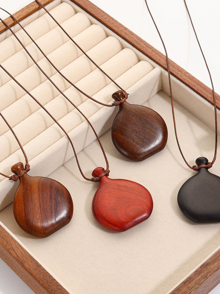 Vintage Wooden Pendant Sweater Necklace
