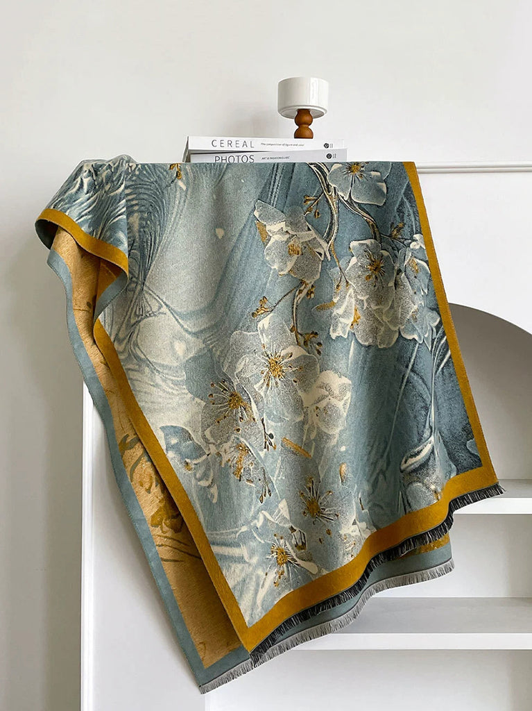 Winter Vintage Oil Painting Tassel Warm Shawl Scarf