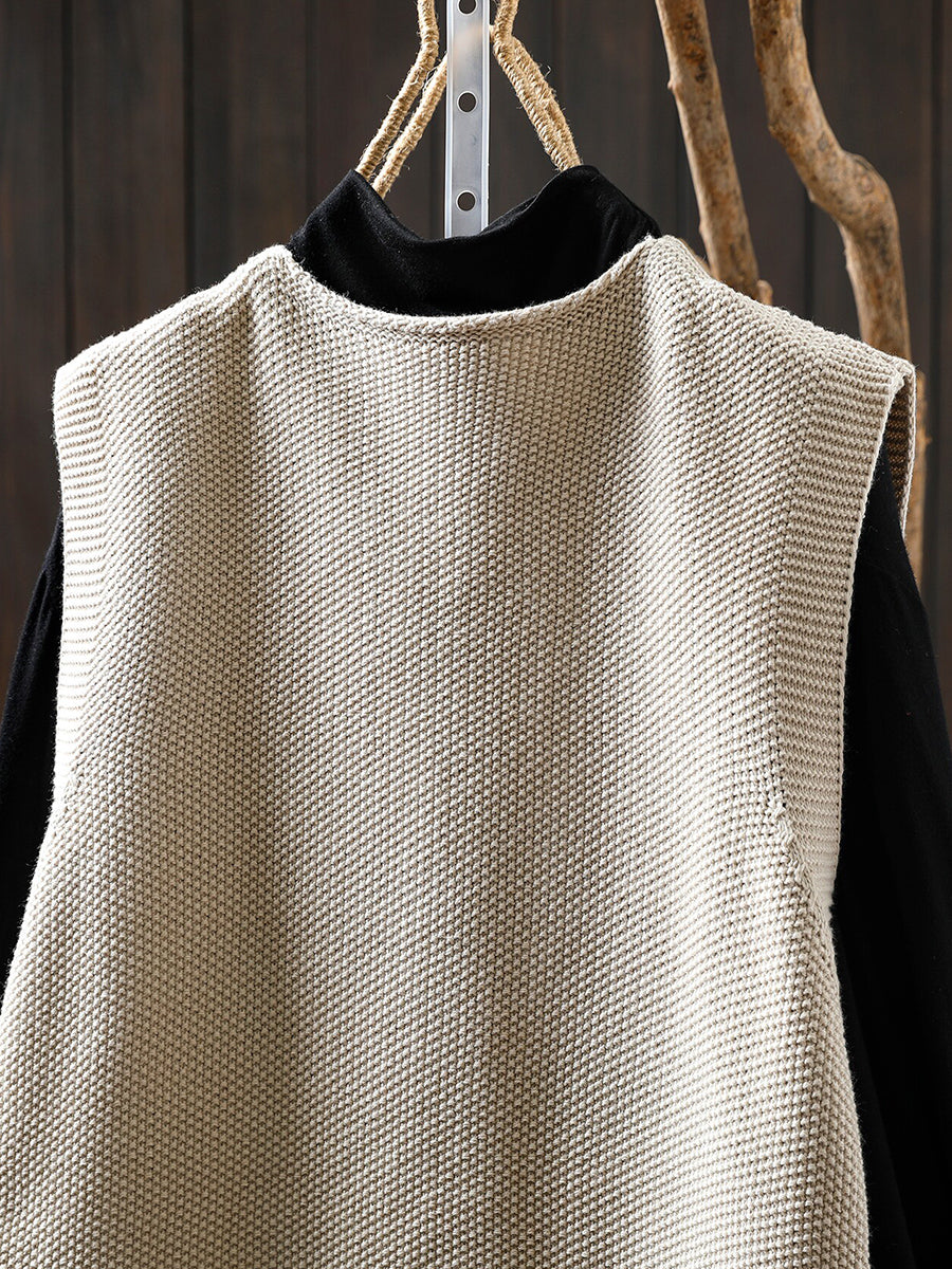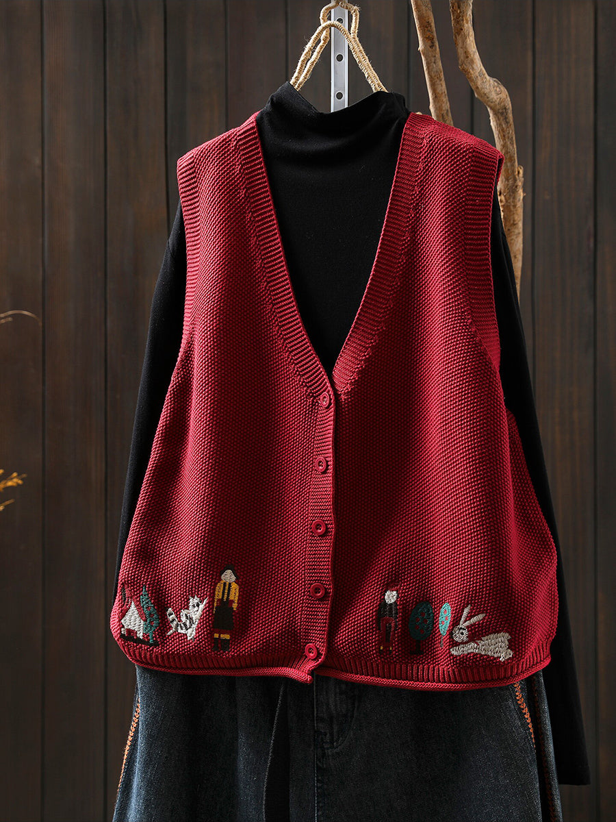 Women Artsy Autumn Embroidery V-Neck Knitted Vest