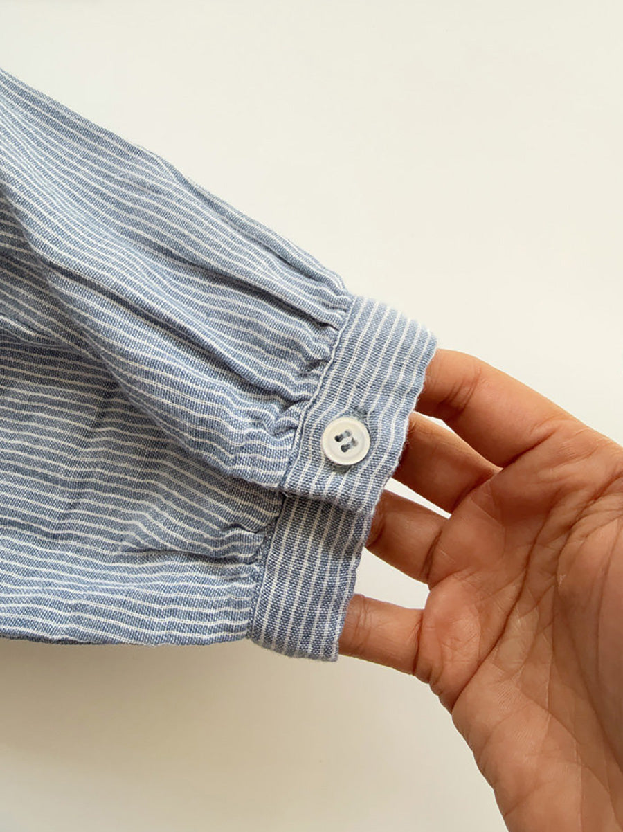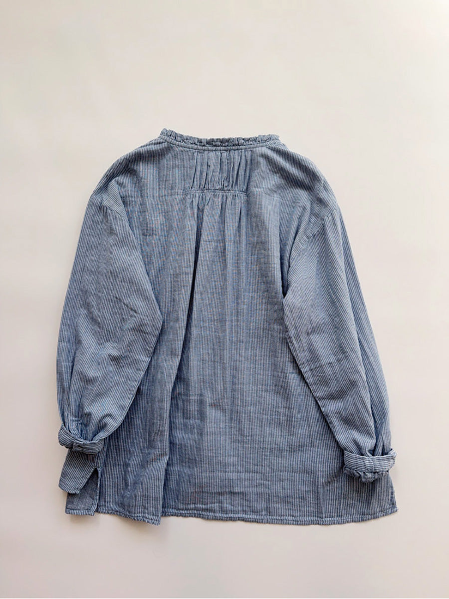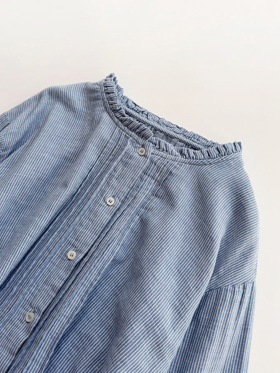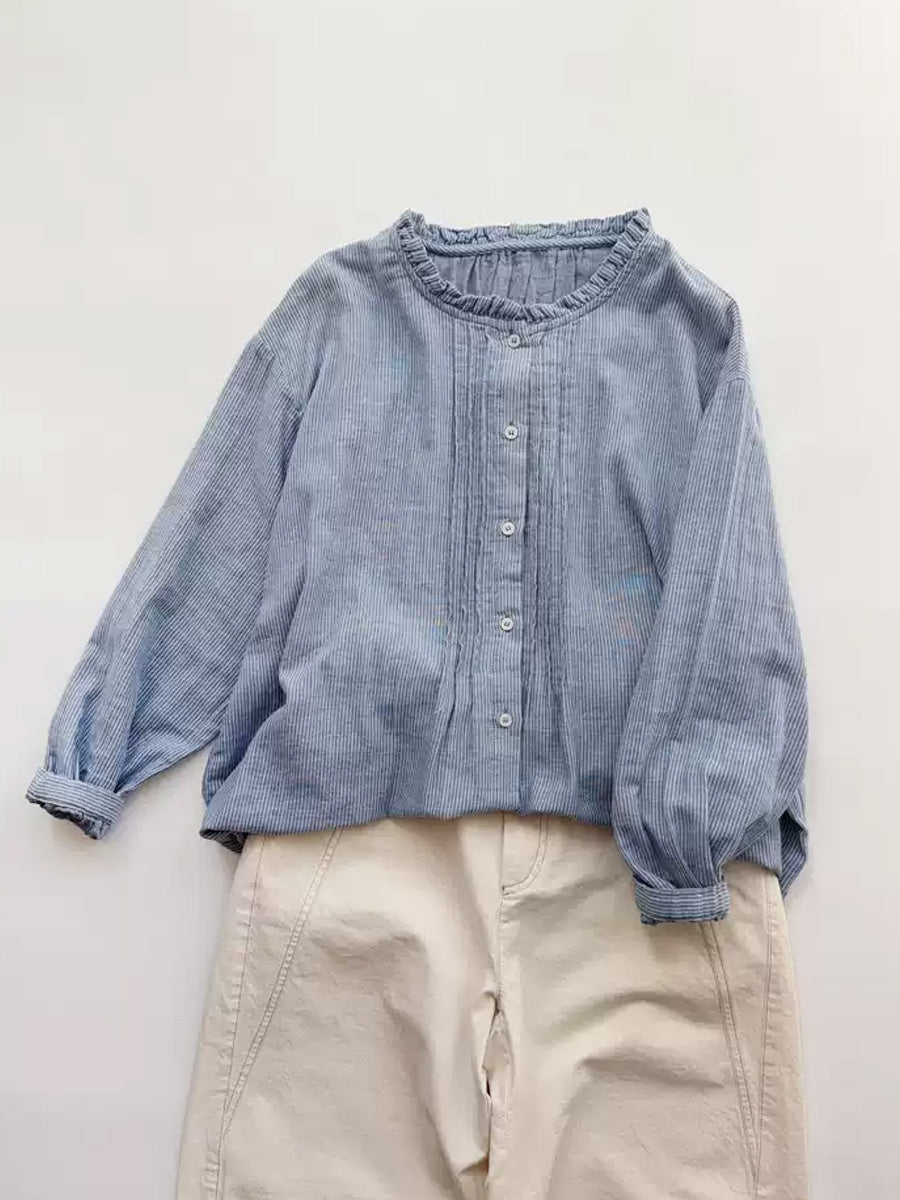 Women Artsy Autumn Stripe Lace Collar 100%Cotton Shirt