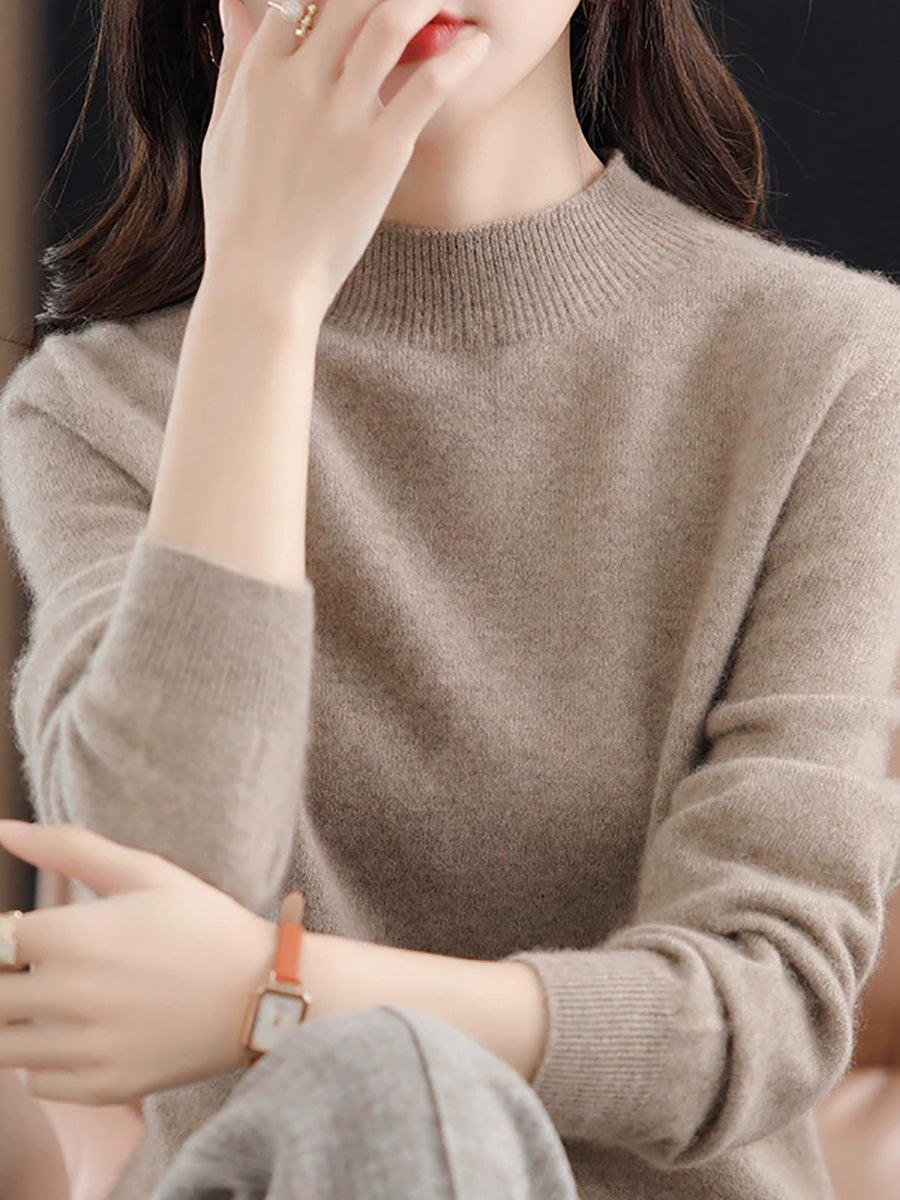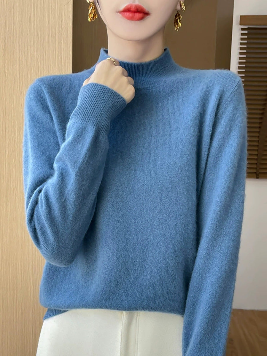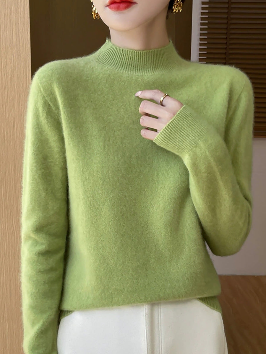 Women Artsy Spring Pure Color Half-turtleneck Sweater