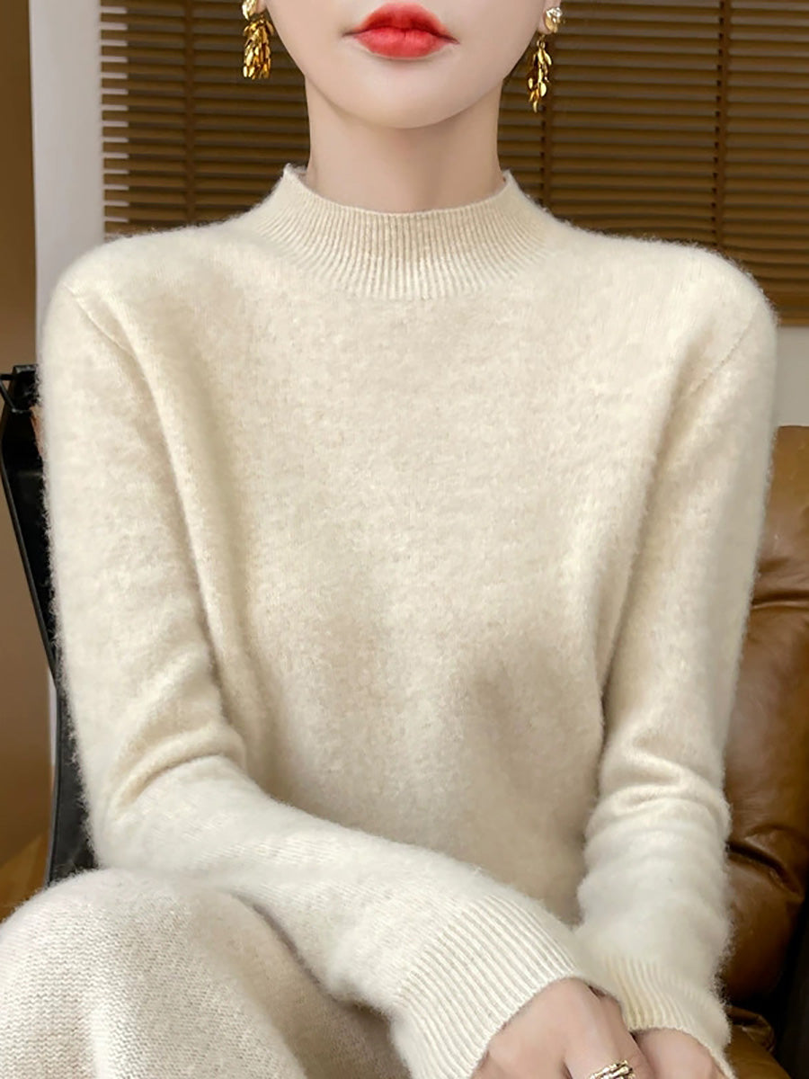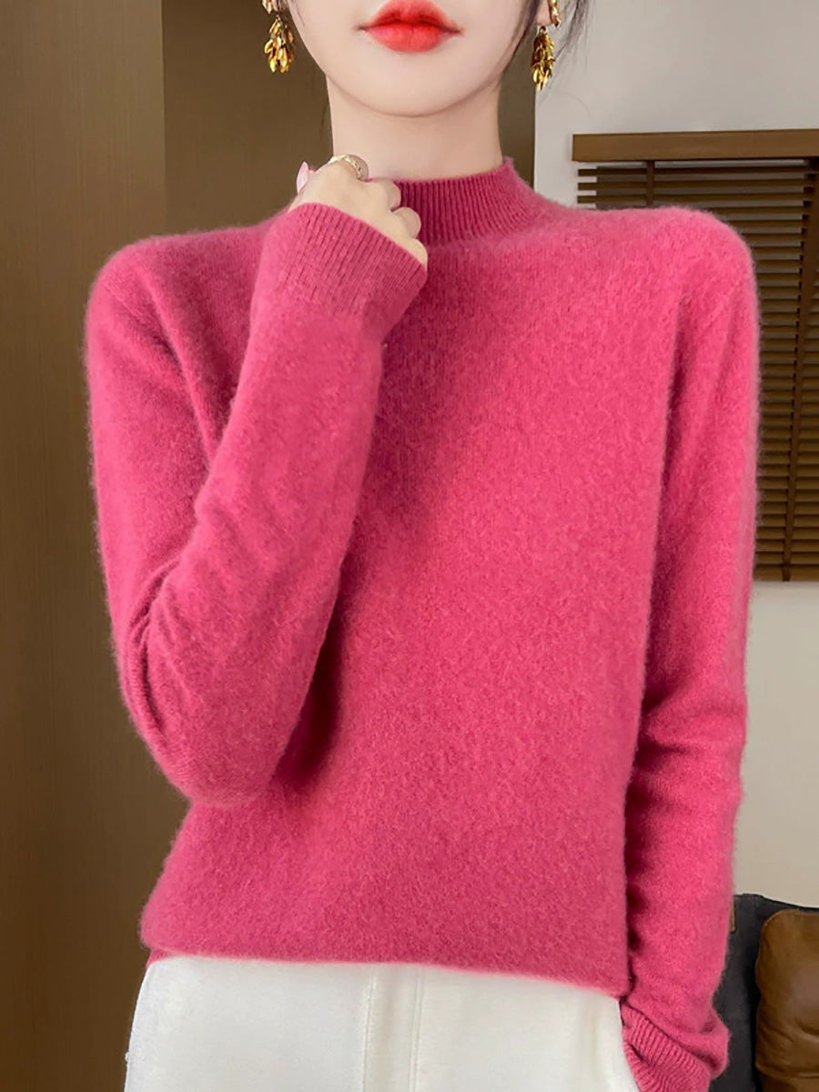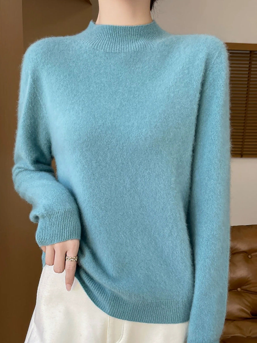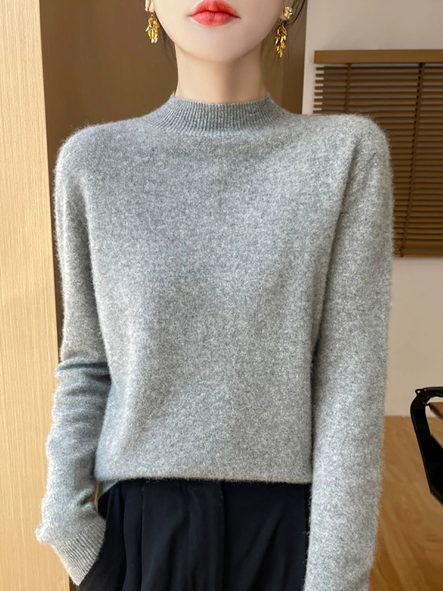 Women Artsy Spring Pure Color Half-turtleneck Sweater