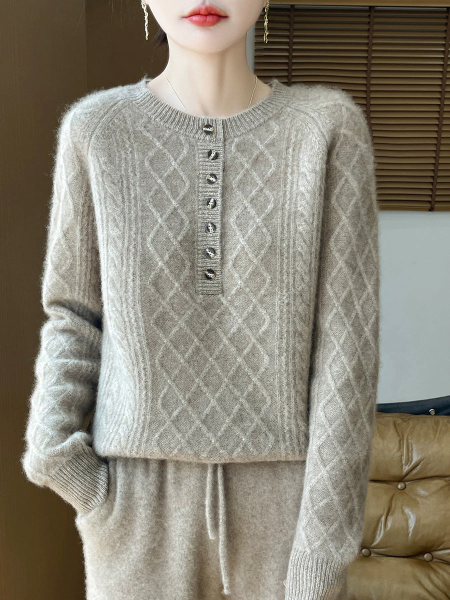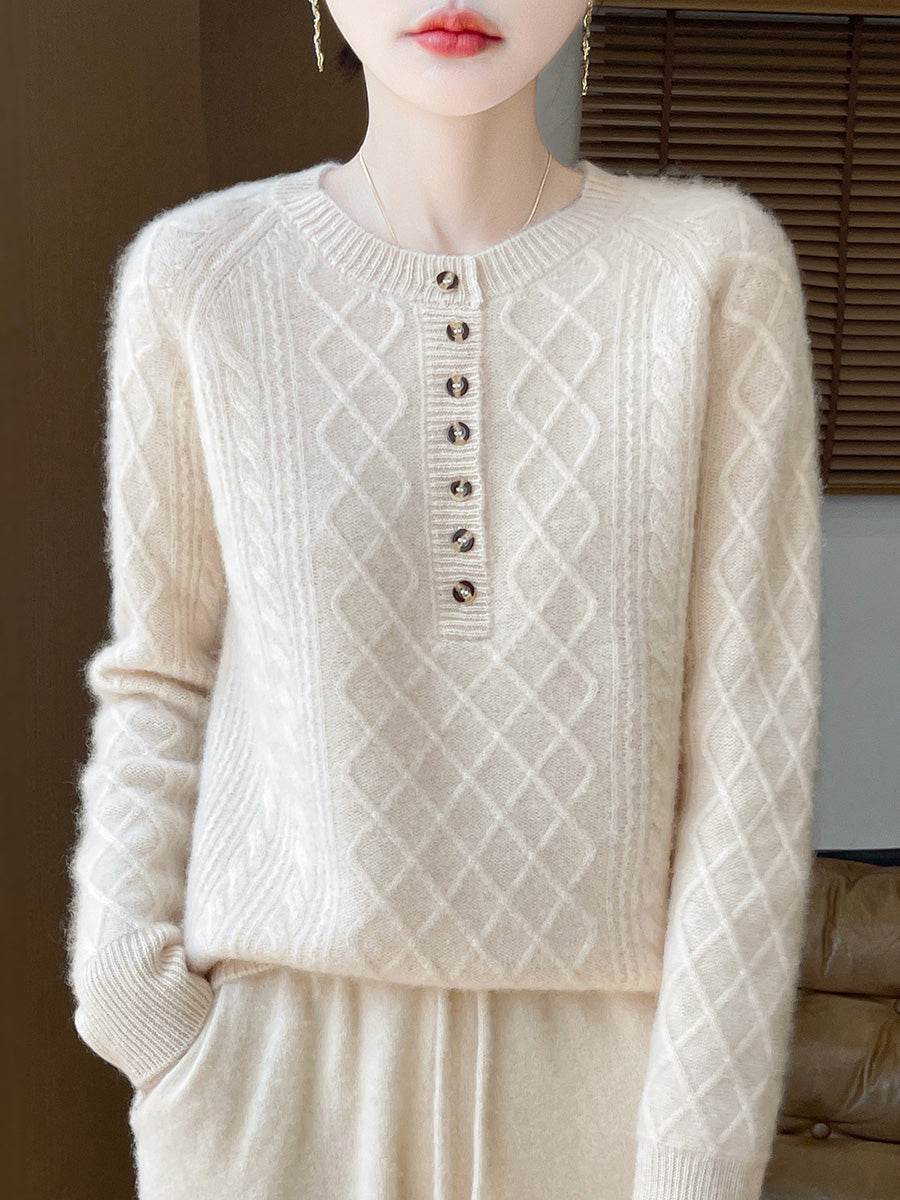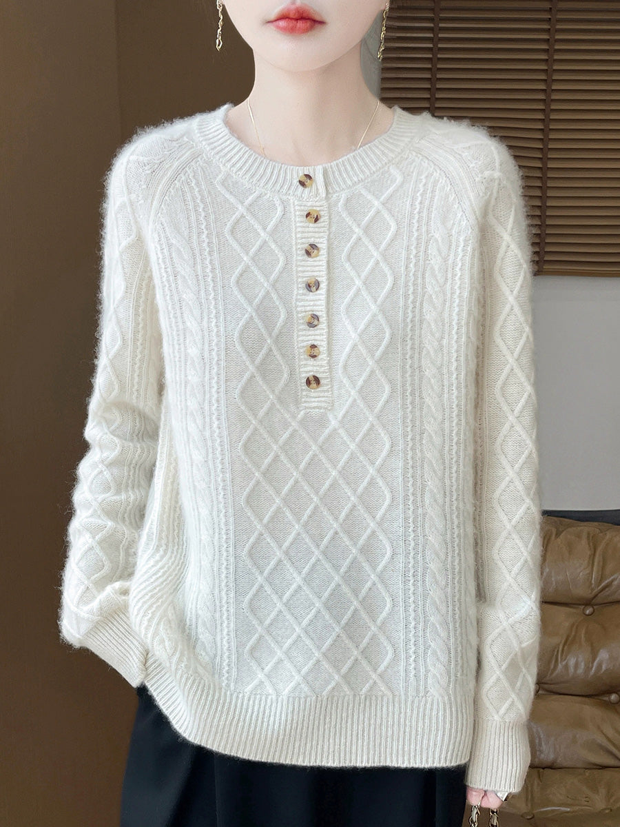 Women Autumn Artsy Cable Knitted Wool O-Neck Sweater