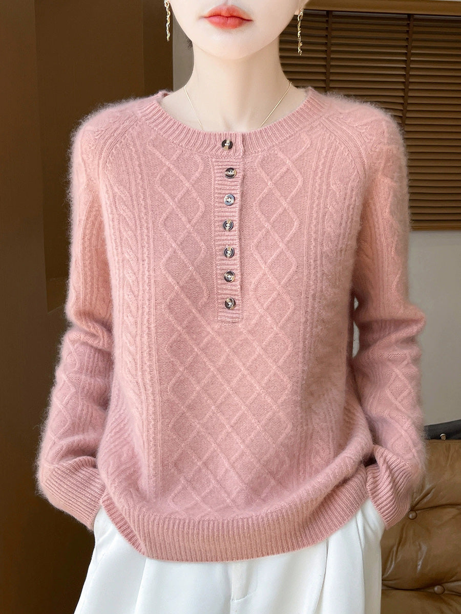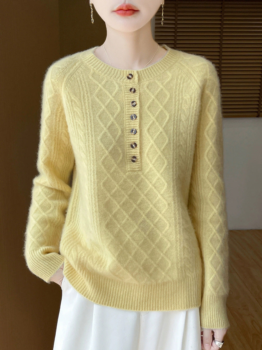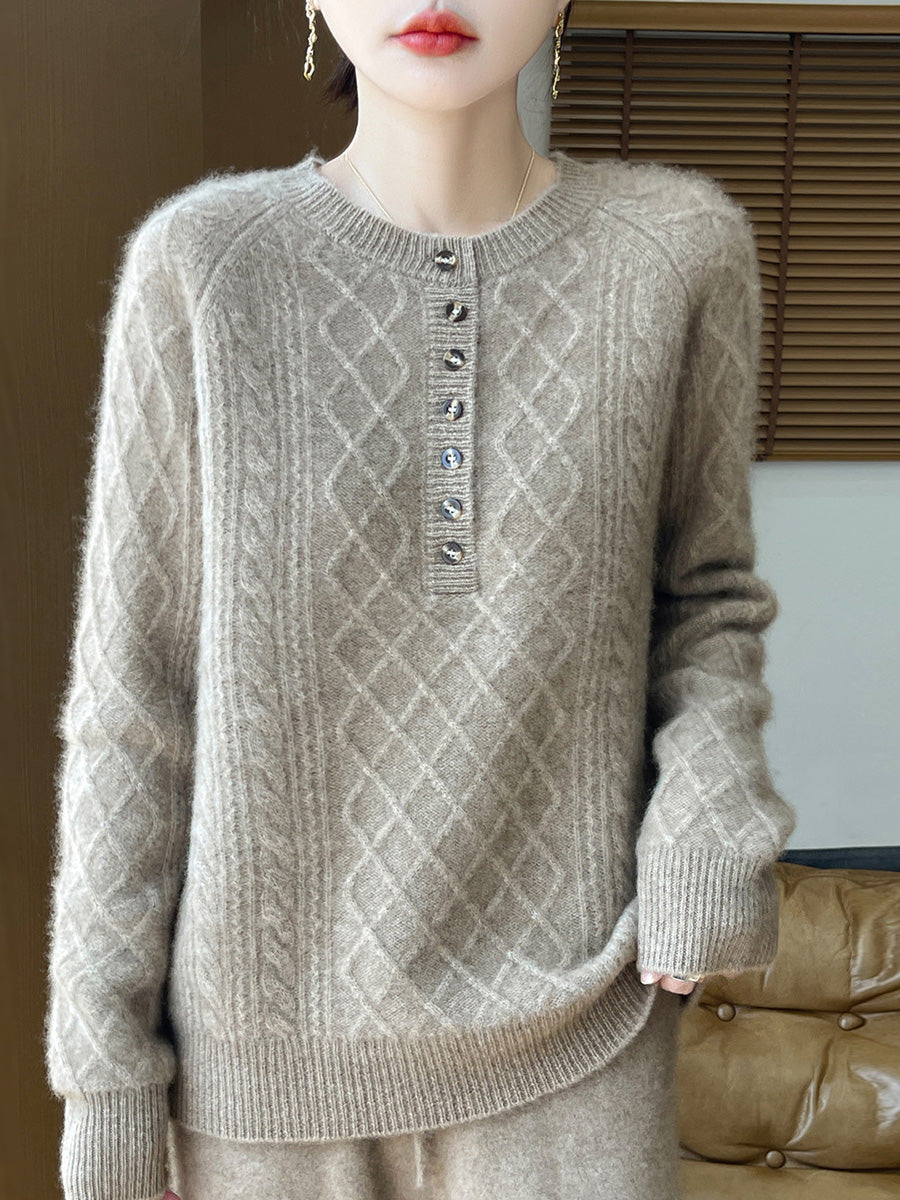 Women Autumn Artsy Cable Knitted Wool O-Neck Sweater