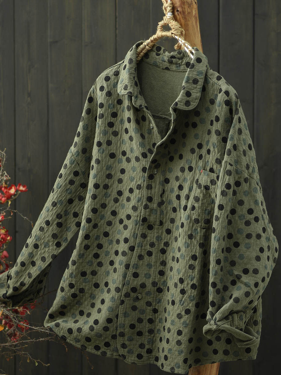 Women Autumn Artsy Dot Turn-down Collar Cotton Shirt