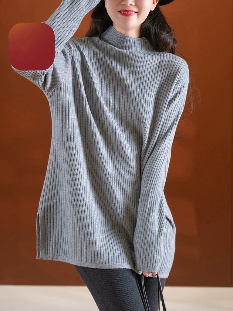 Women Autumn Artsy Pure Color Half-Turtleneck Sweater