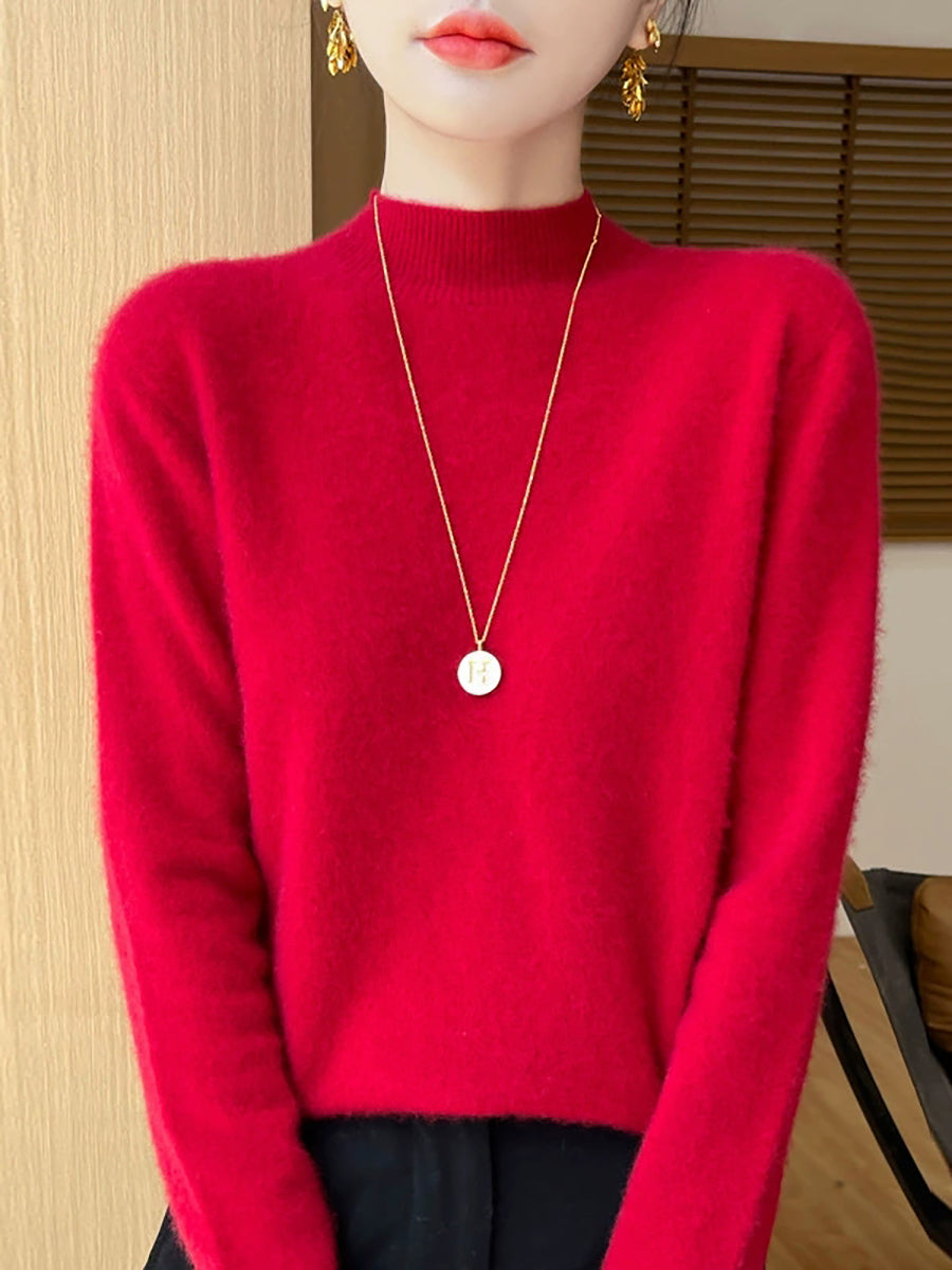 Women Autumn Casual Pure Color Half-Turtleneck Sweater