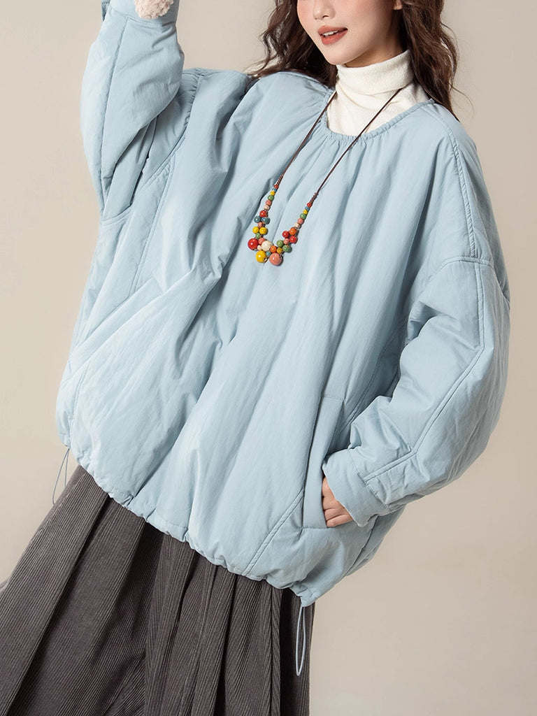 Women Autumn Casual Pure Color O-Neck Padded Blouse