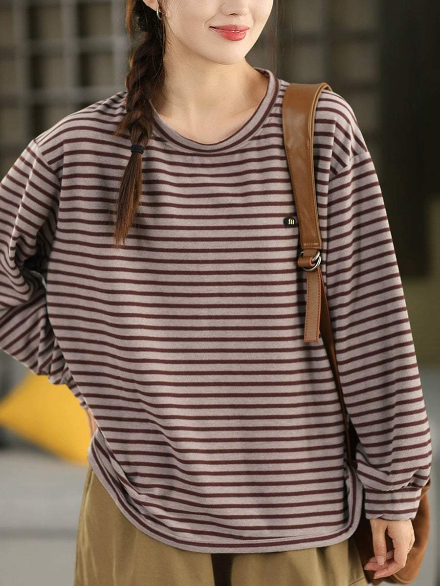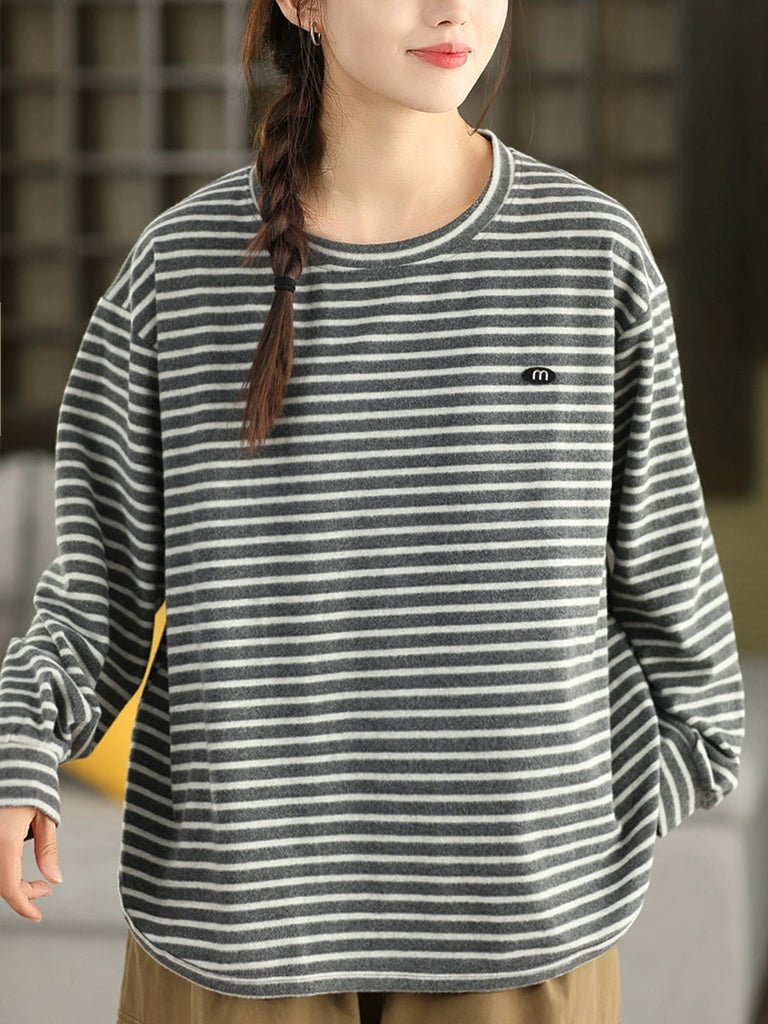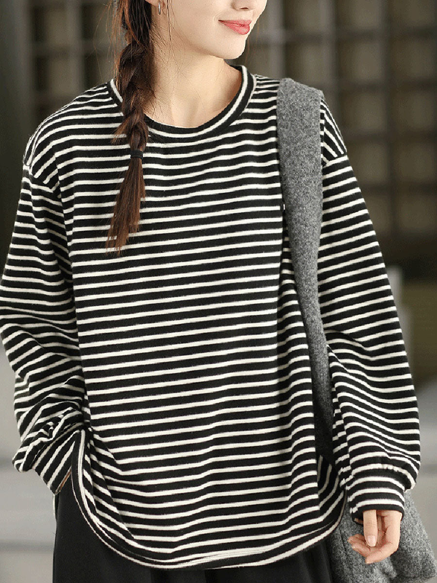 Crafted from denim, this blouse features a striped pattern and an O-neck design. It offers full raglan sleeves with a casual cut, making it suitable for spring, autumn, and winter wear.