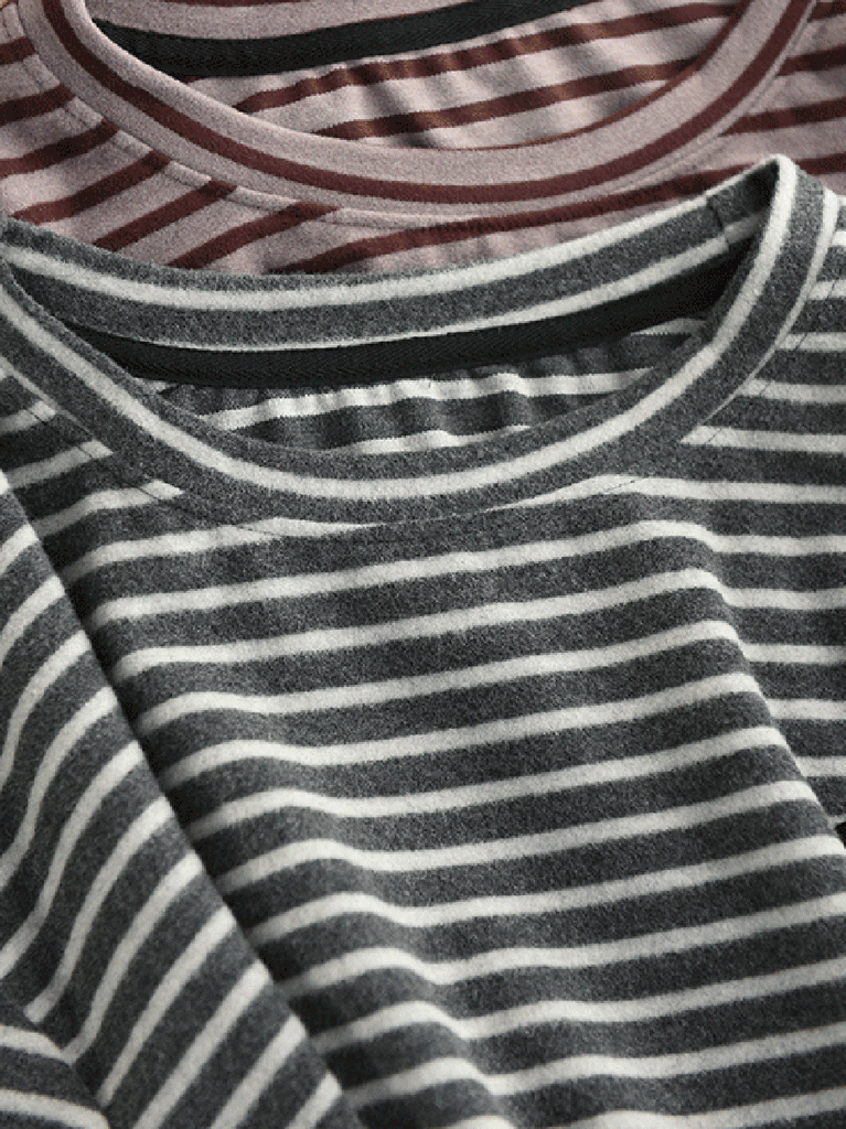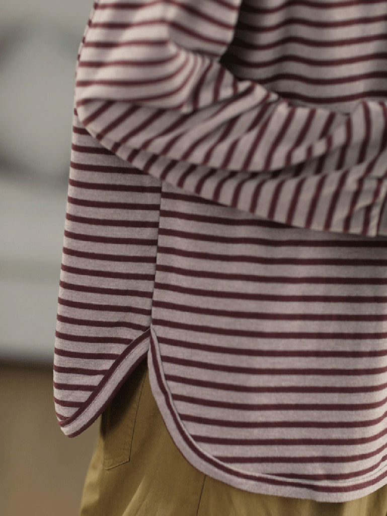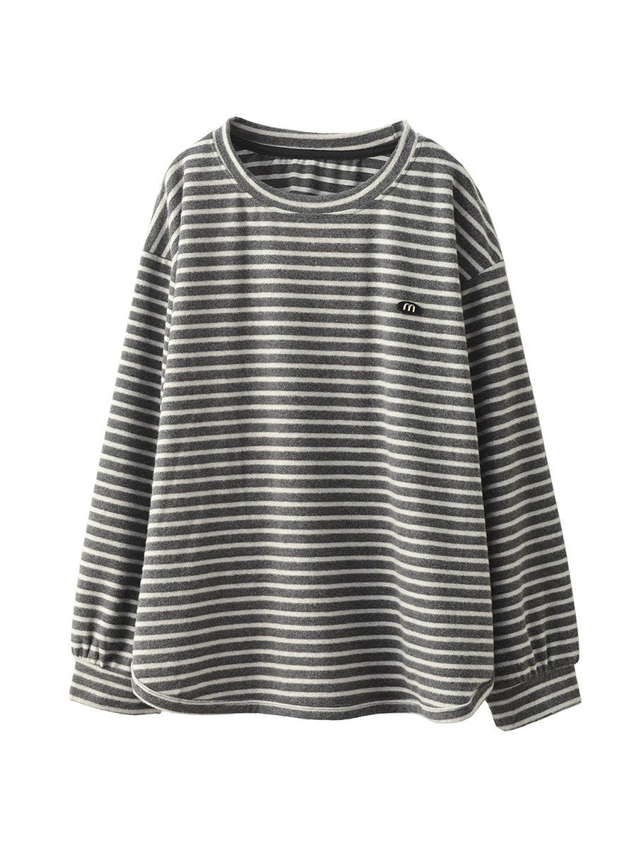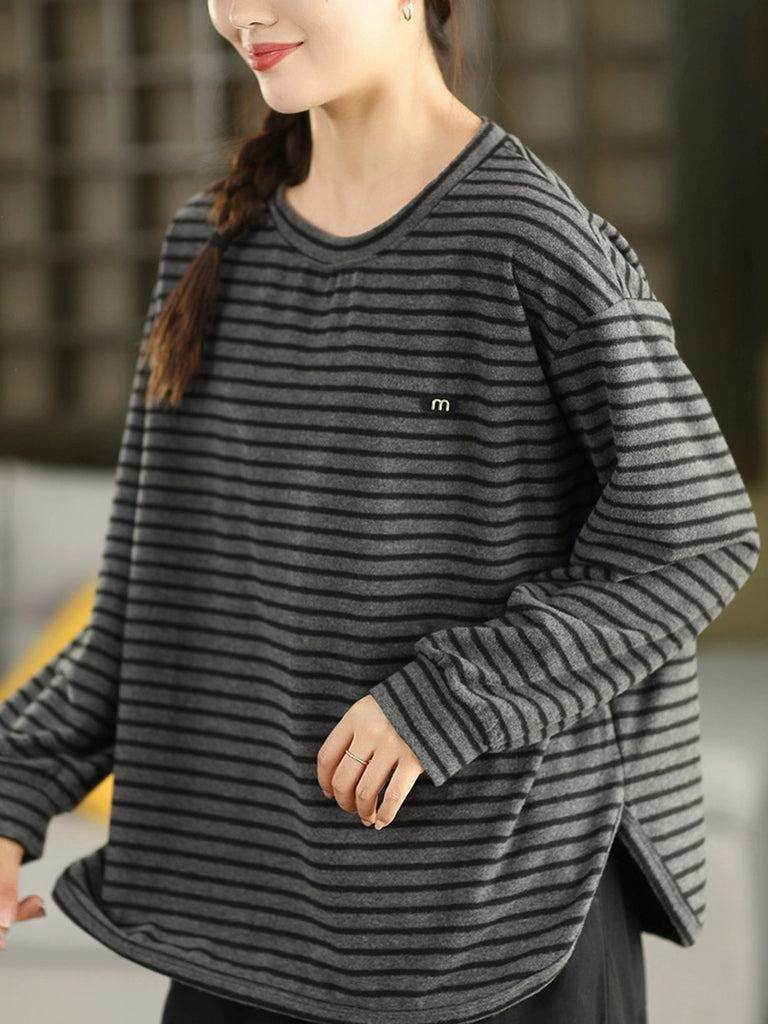 Crafted from denim, this blouse features a striped pattern and an O-neck design. It offers full raglan sleeves with a casual cut, making it suitable for spring, autumn, and winter wear.