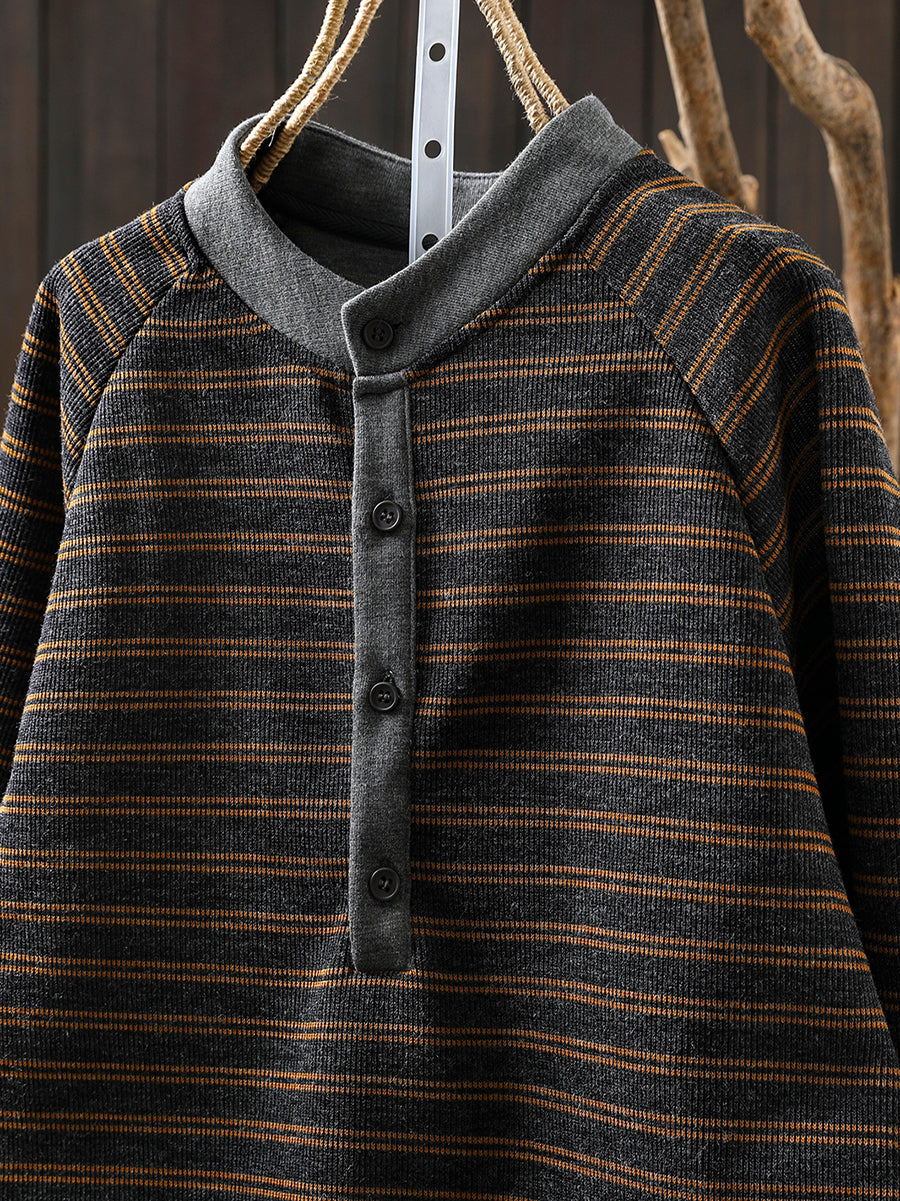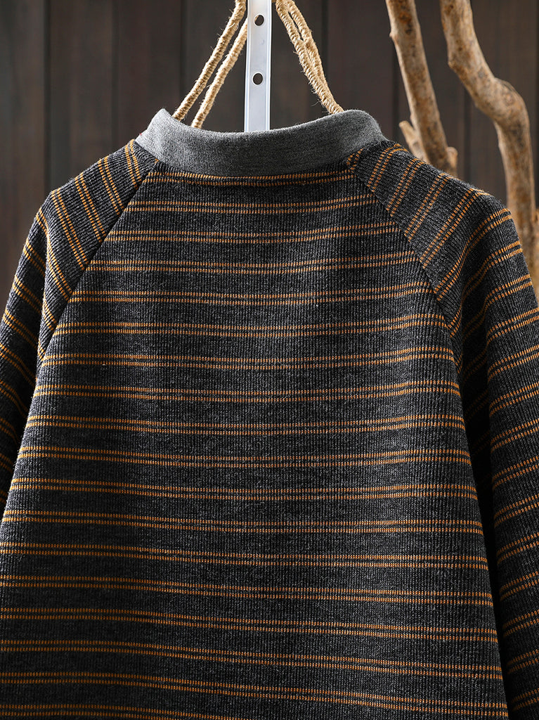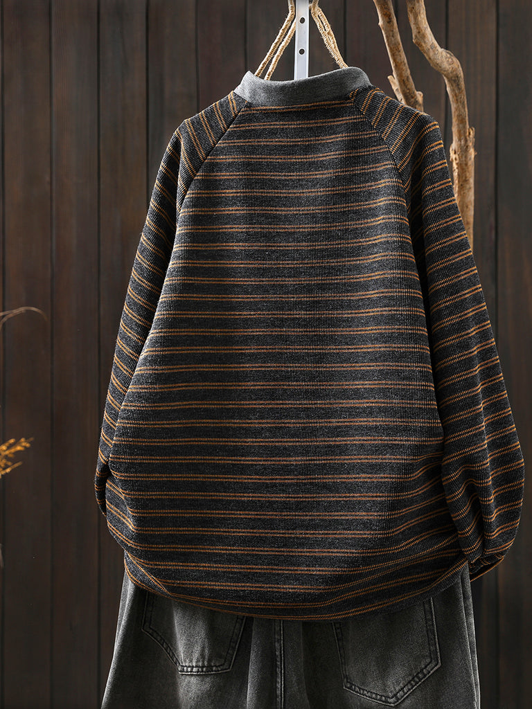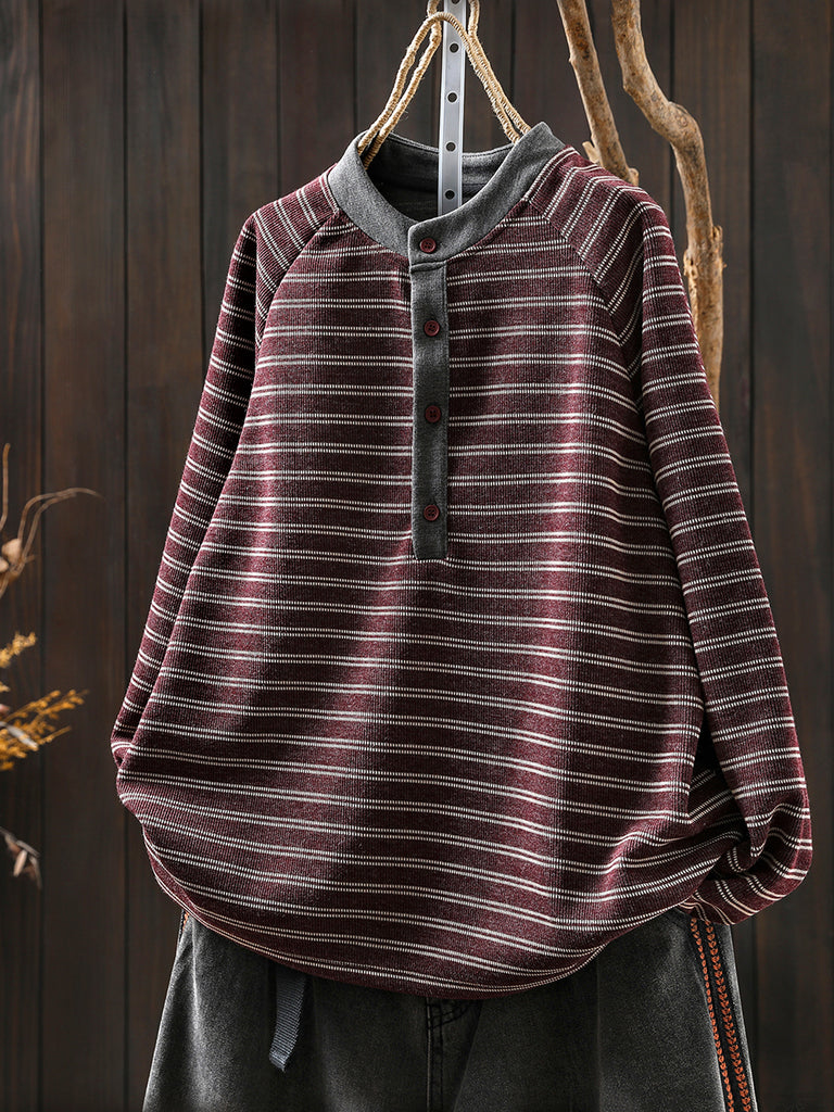 Women Autumn Retro Stripe O-Neck Blouse