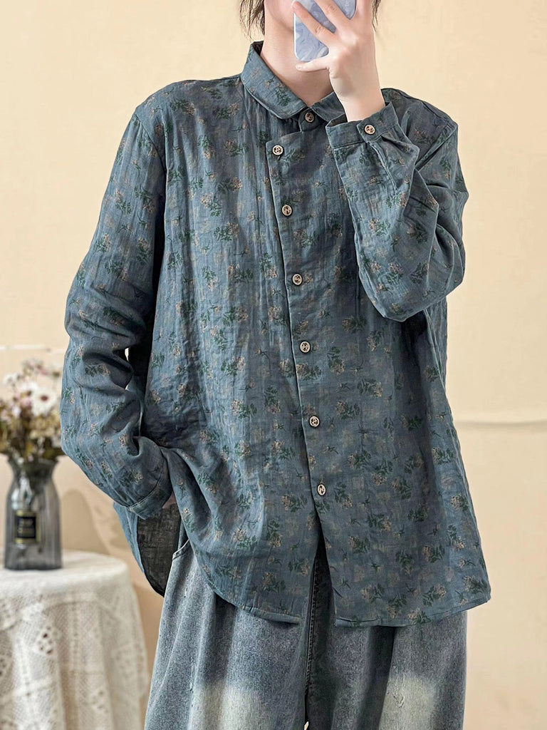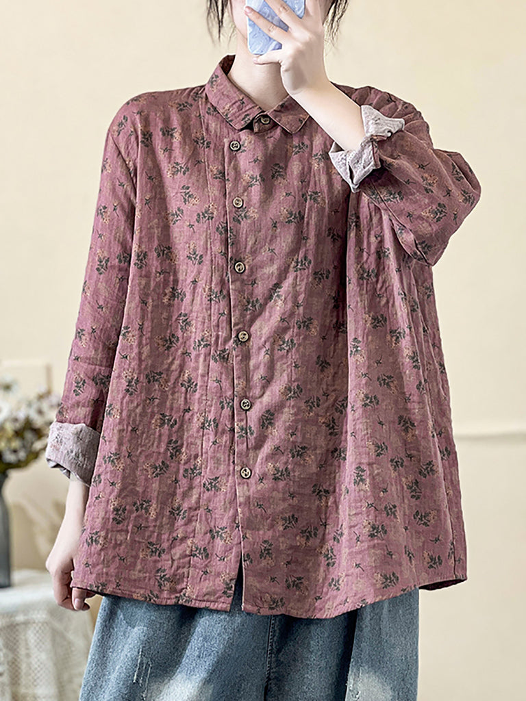 Plus Size Women Autumn Vintage Floral Long Sleeve Shirt