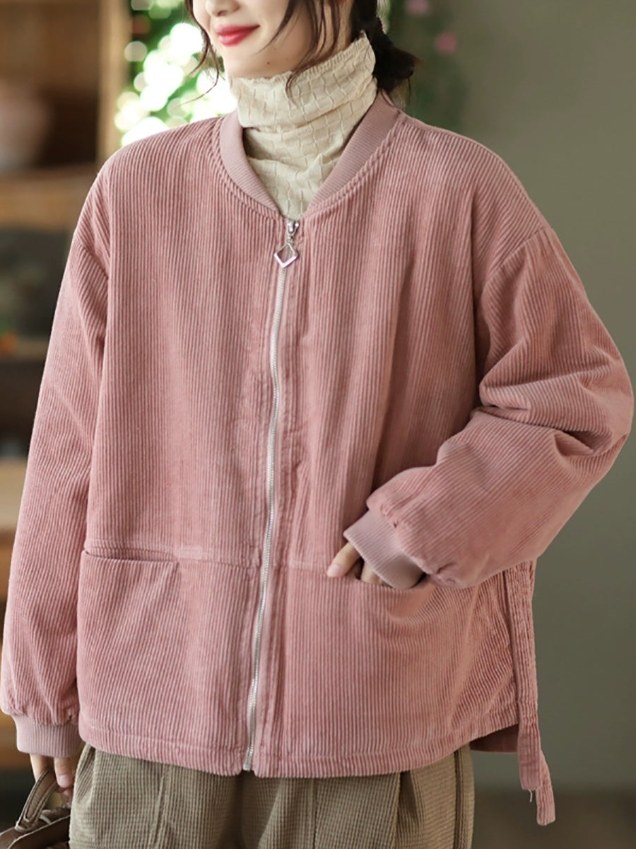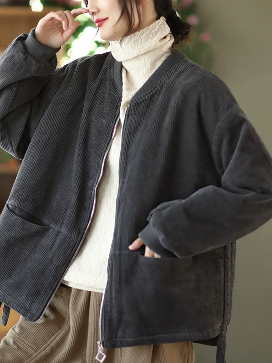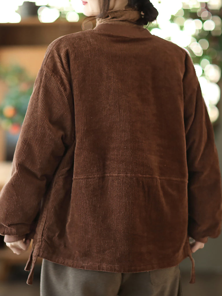 Women Autumn Vintage Pure Color Corduroy Jacket