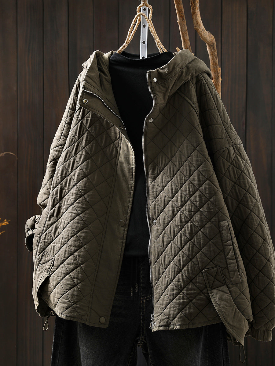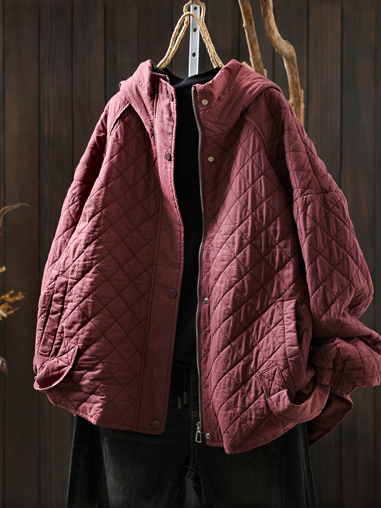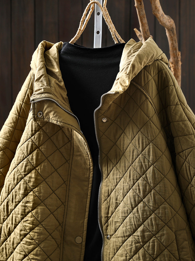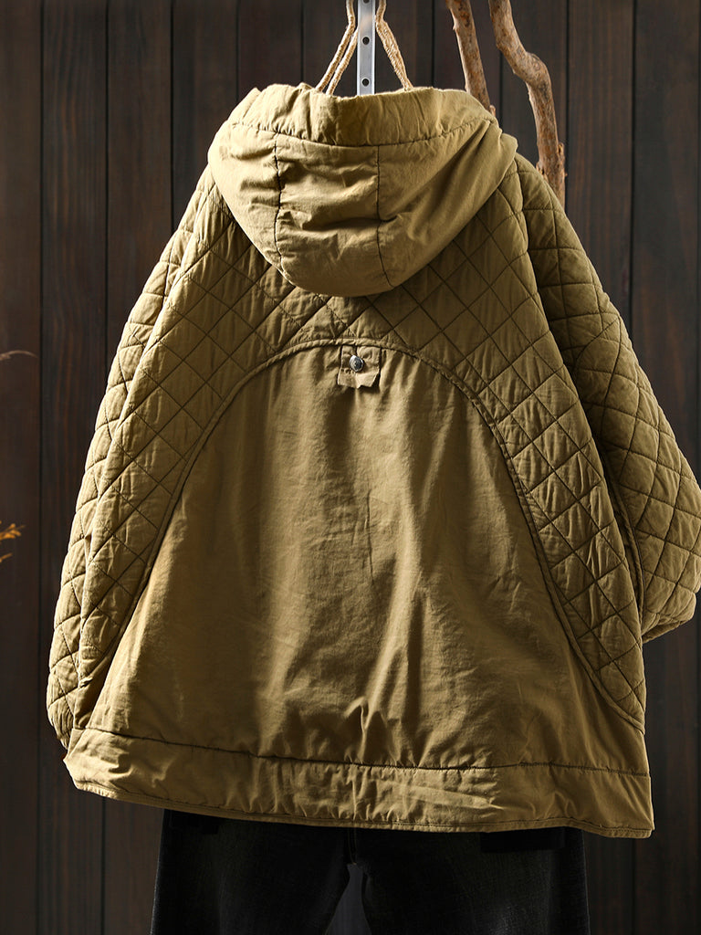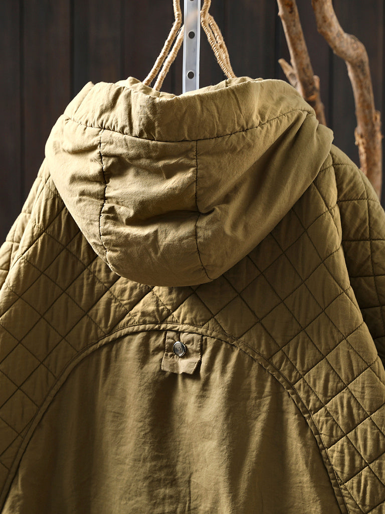 Women Autumn Vintage Pure Color Cotton Hooded Jacket