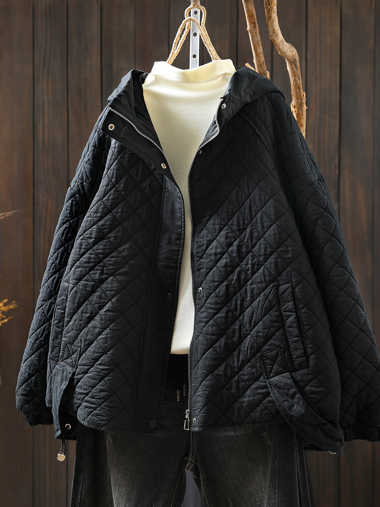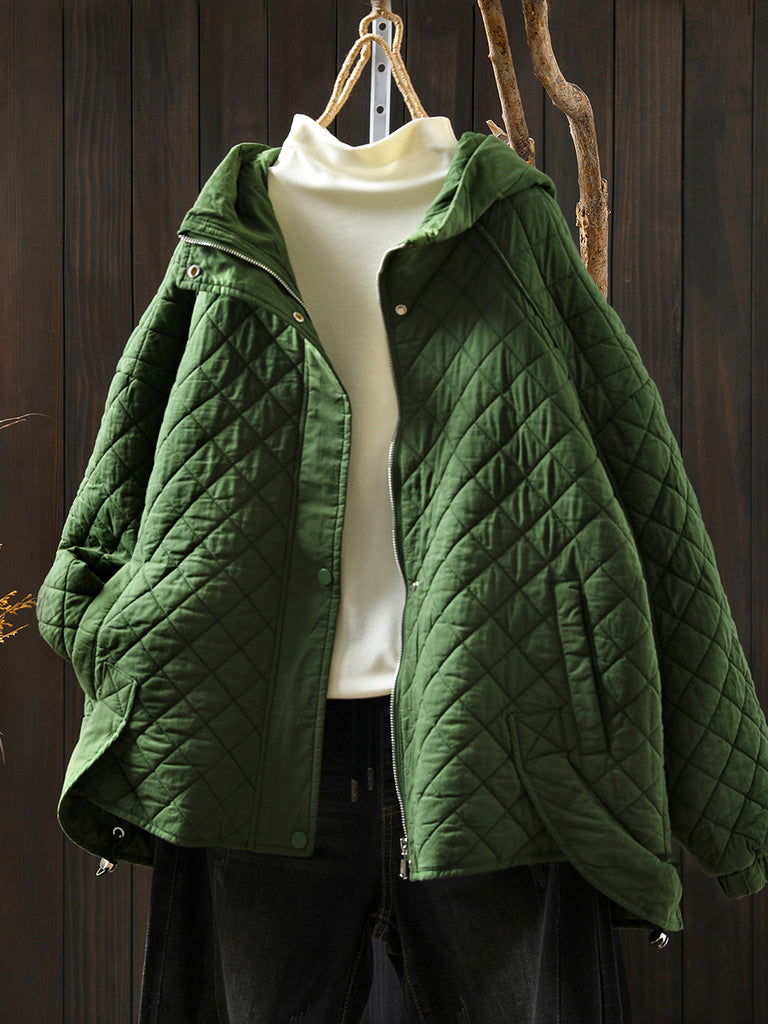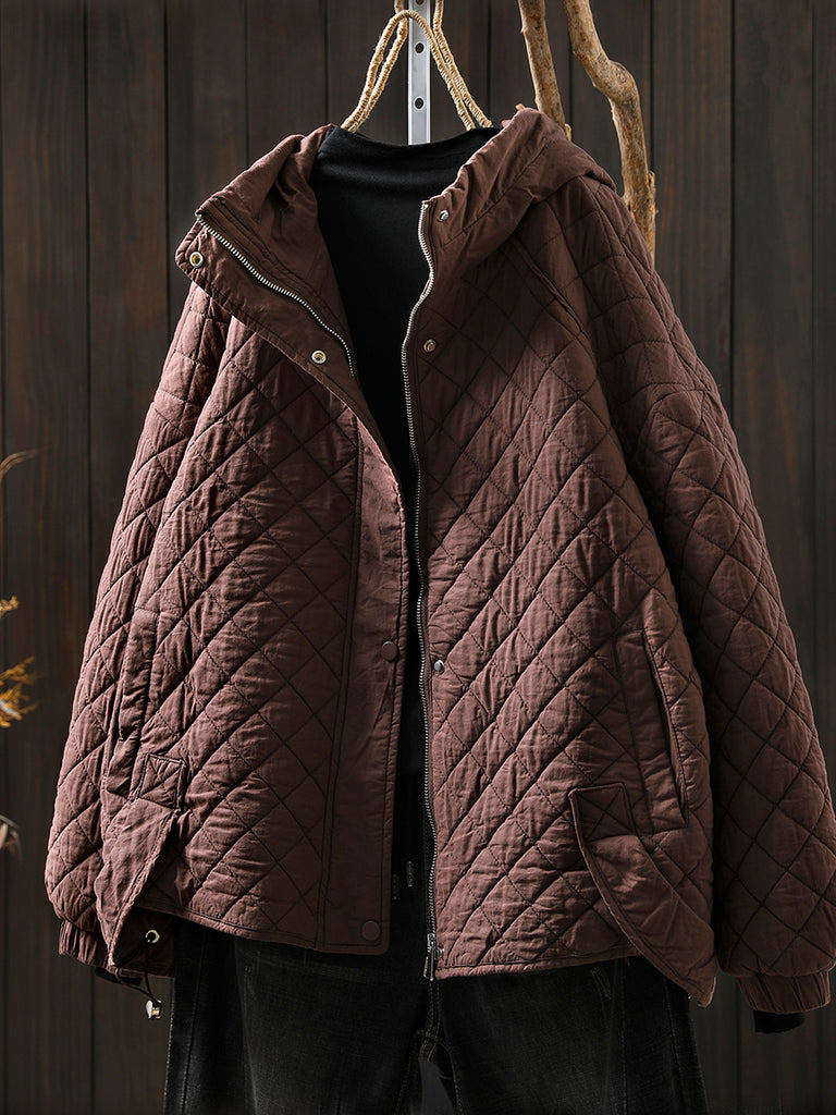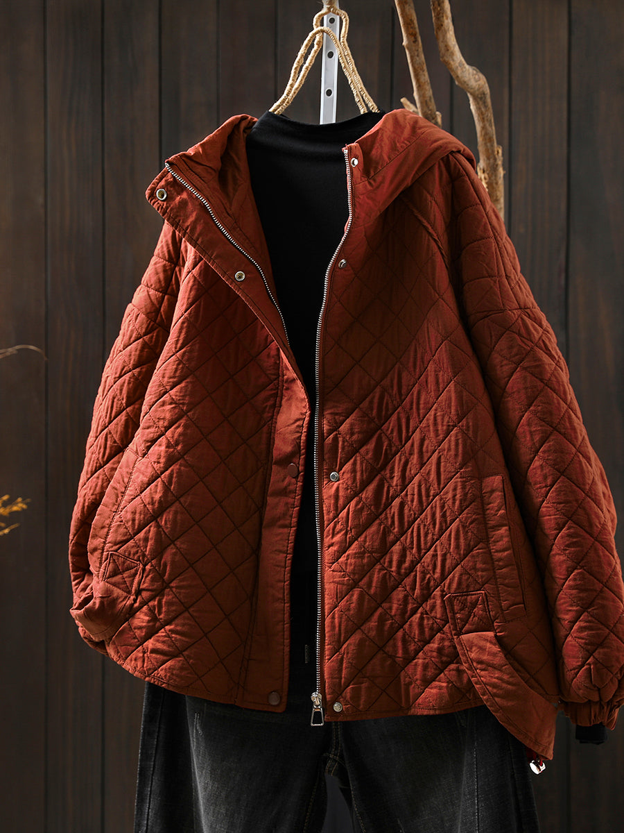 Women Autumn Vintage Pure Color Cotton Hooded Jacket