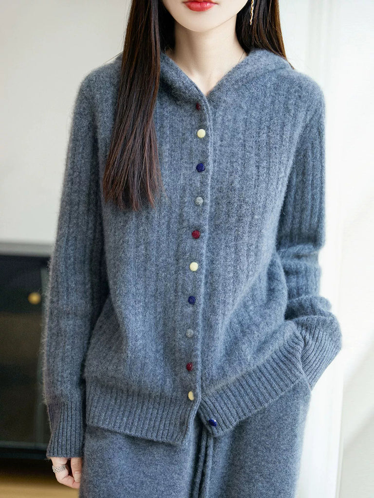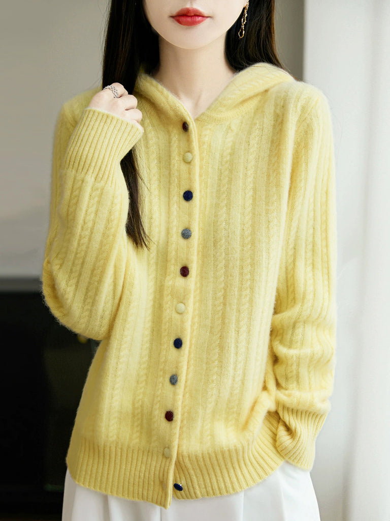 Women Autumn Casual Pure Color Wool Hooded Sweater