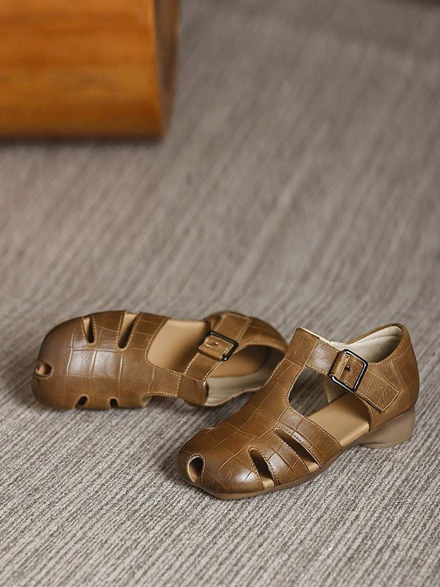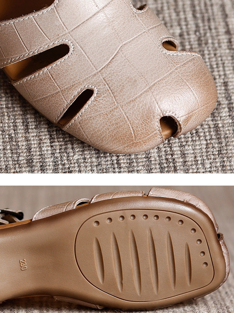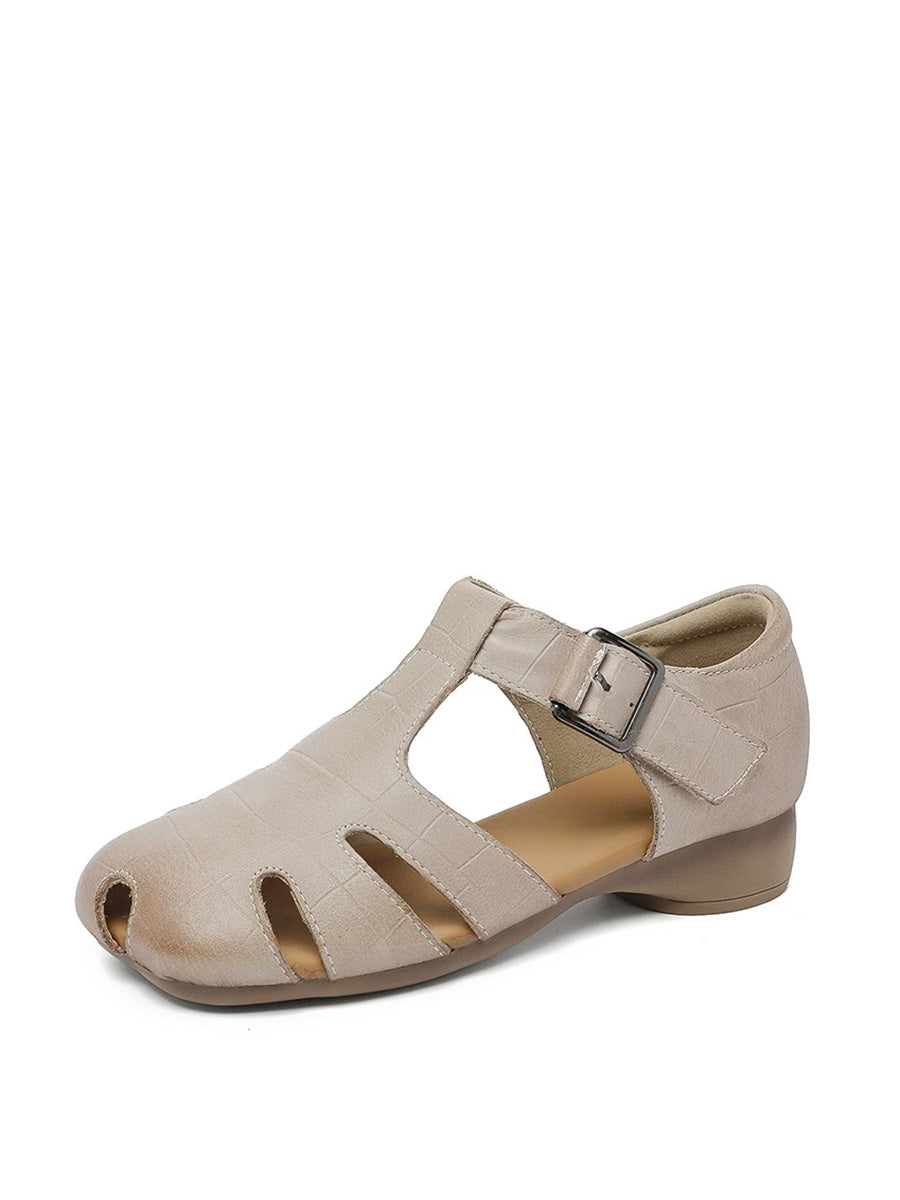 Women Casual Pure Color Genuine Leather Sandals