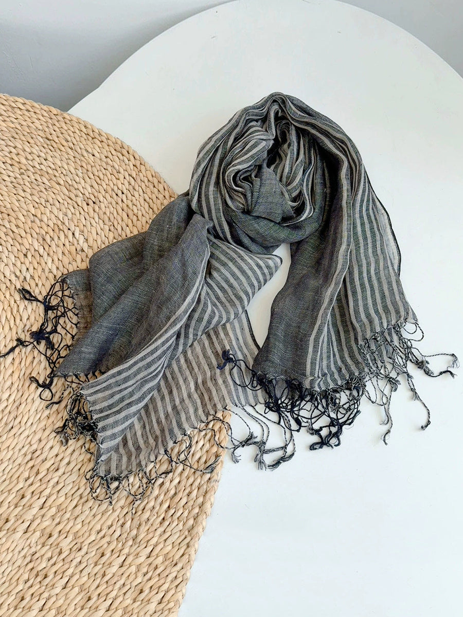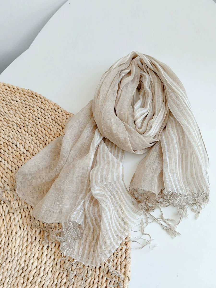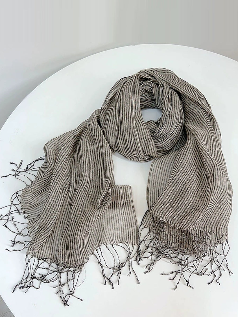 Women Casual Stripe Soft Tassel Shawl Scarf