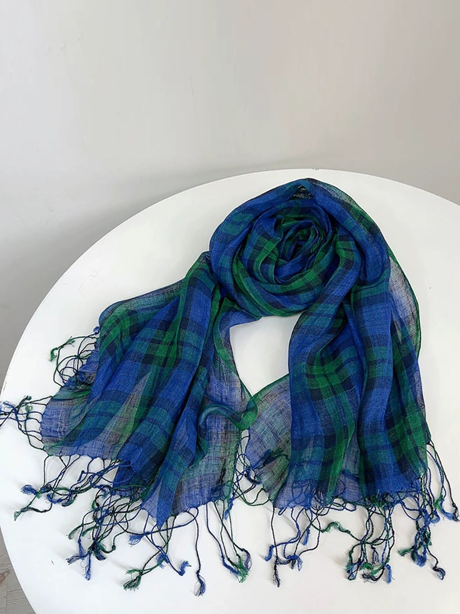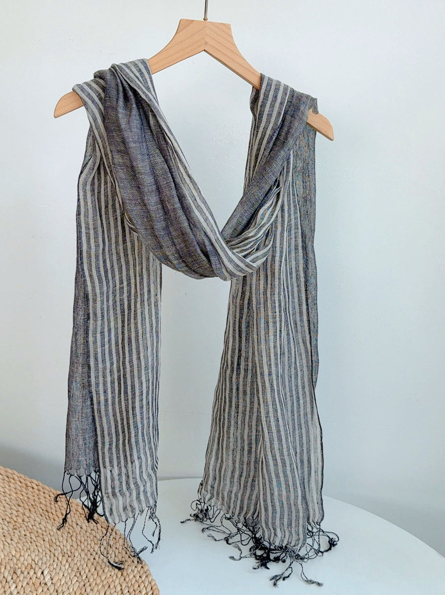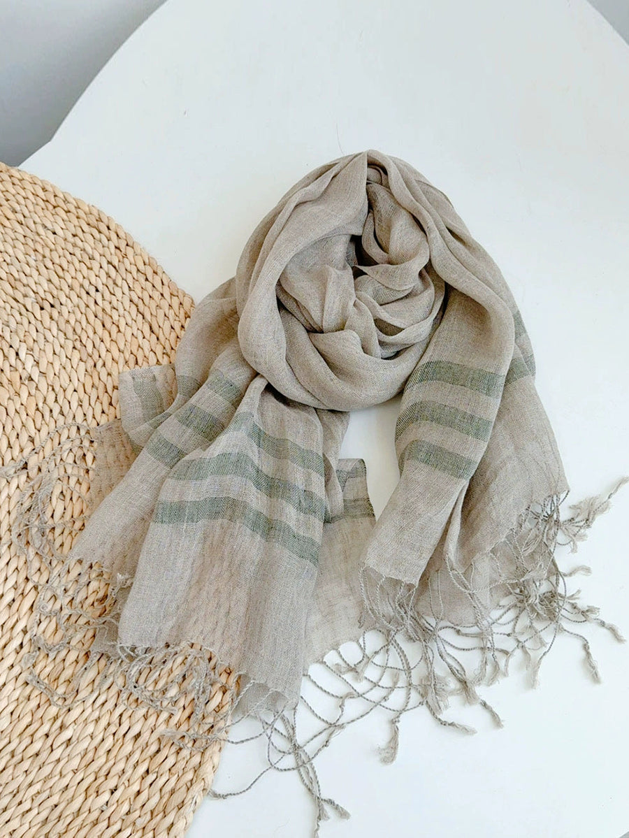 Women Casual Stripe Soft Tassel Shawl Scarf