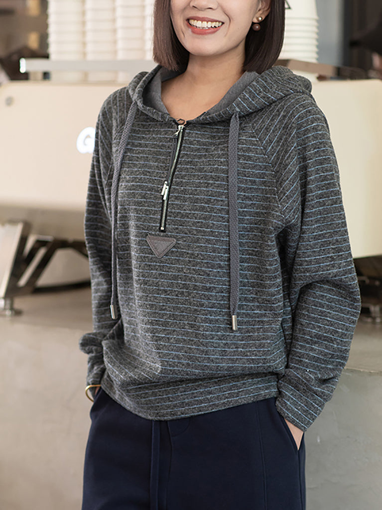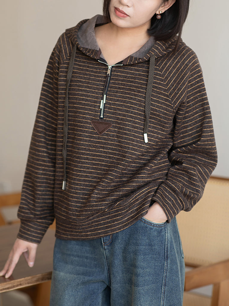 Women Casual Winter Warm Stripe Hoodie