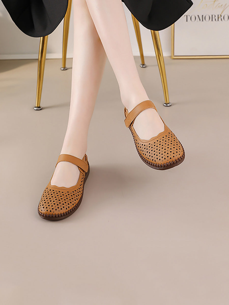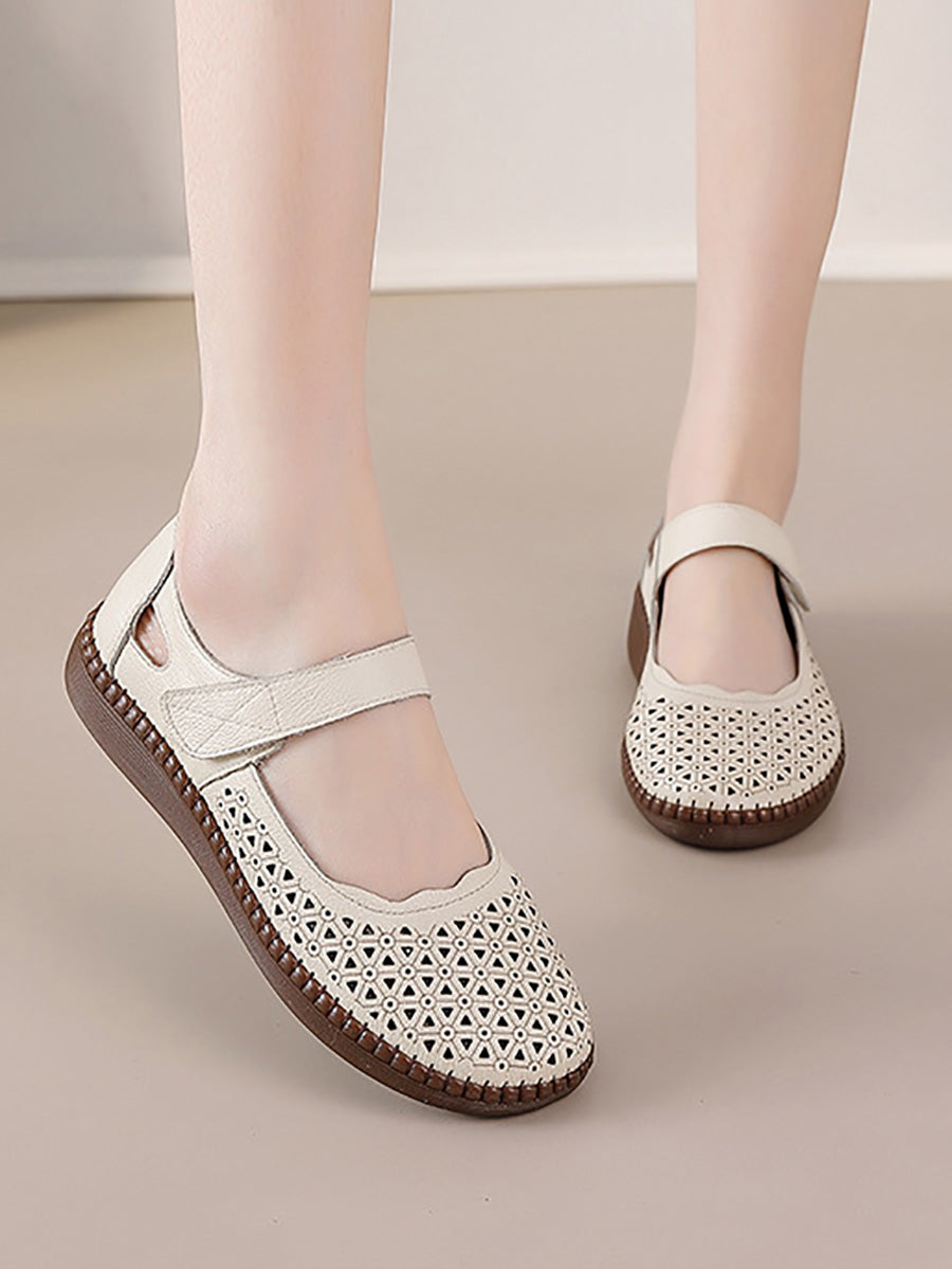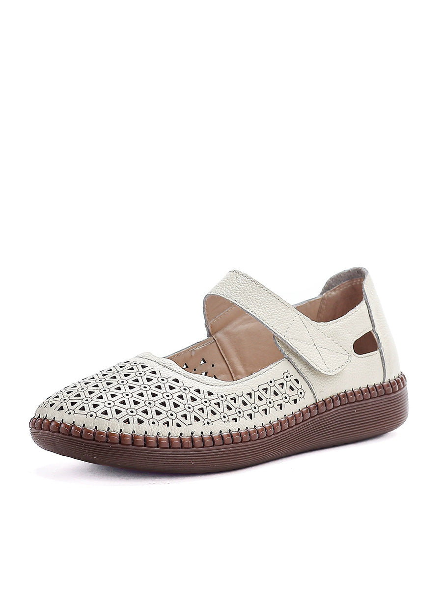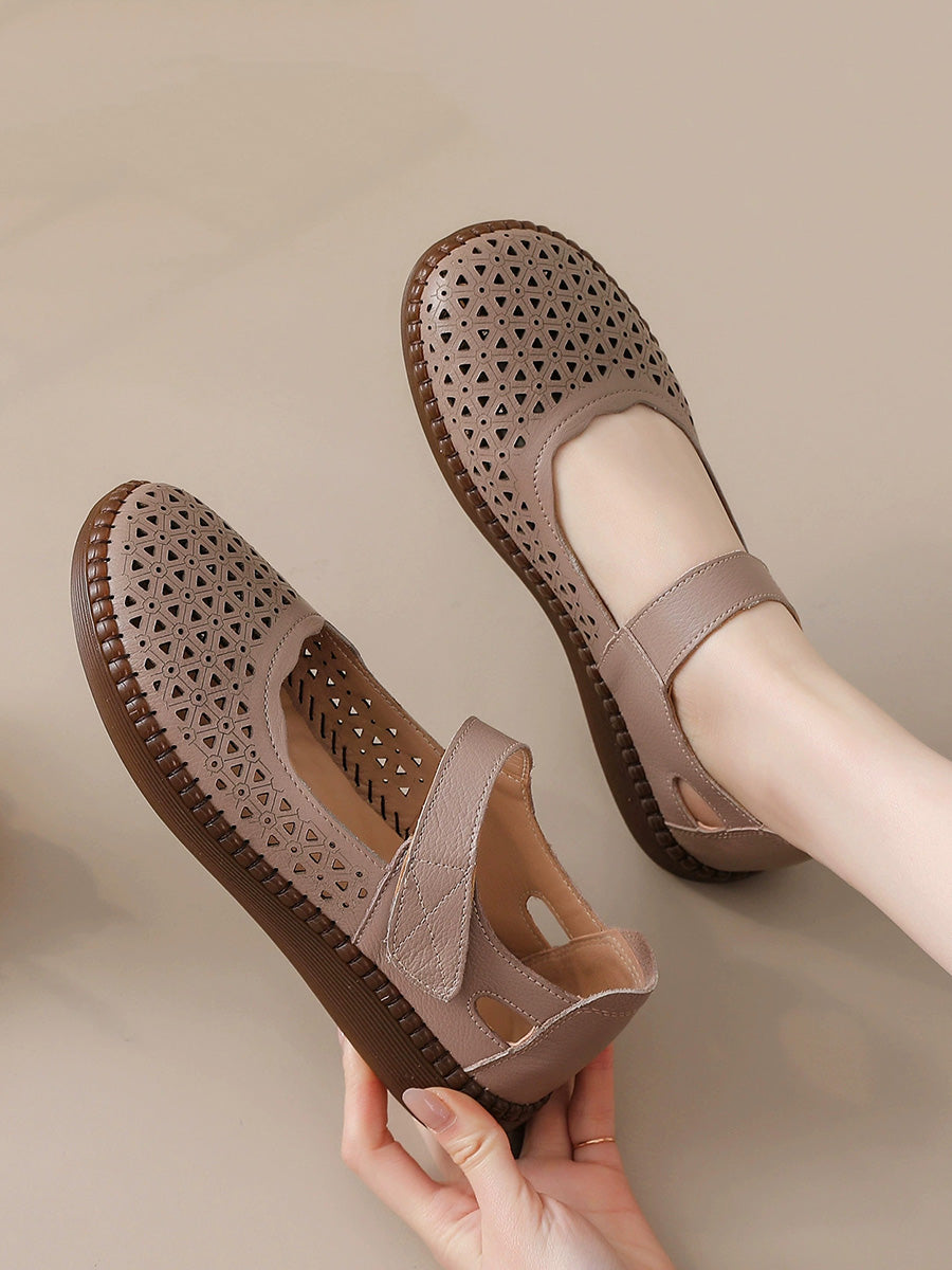 Women Genuine Leather Hollow Out Flat Shoes