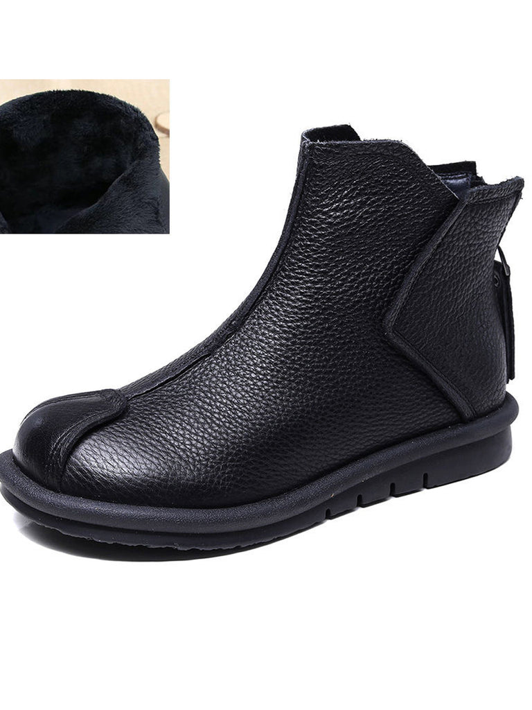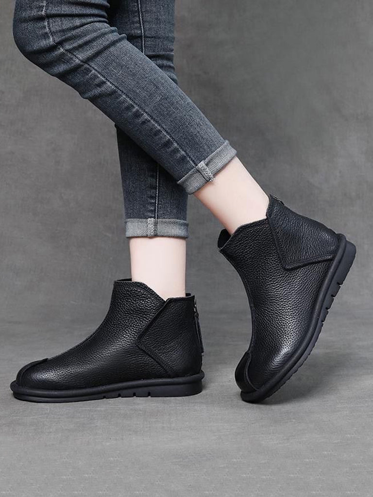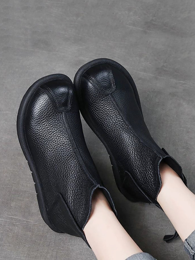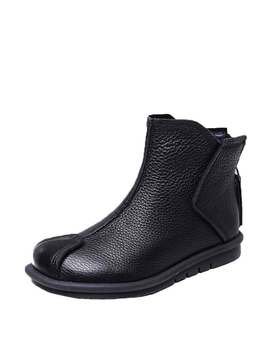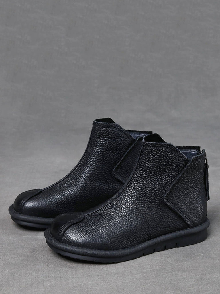 Women Retro Genuine Leather Spliced Ankle Boots