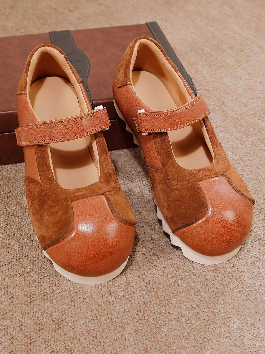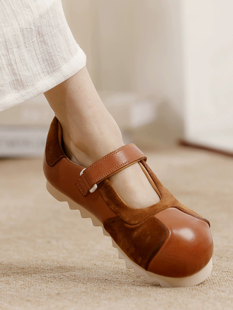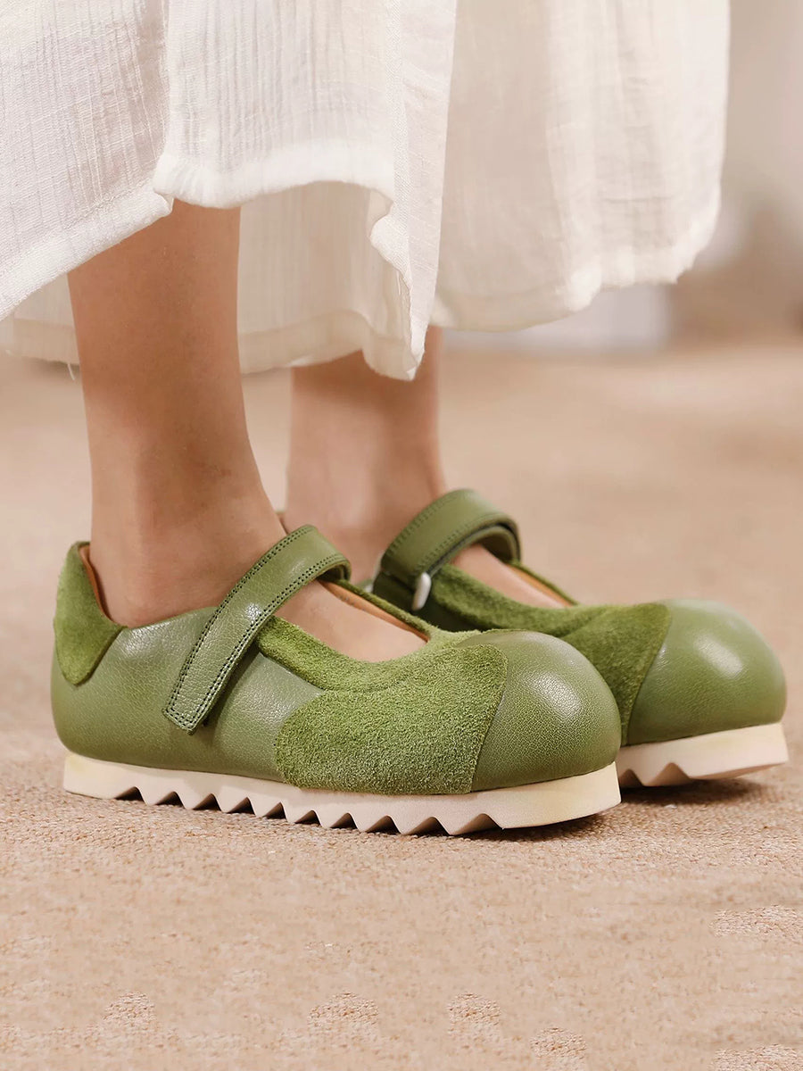 Women Retro Genuine Leather Spliced Flat Shoes